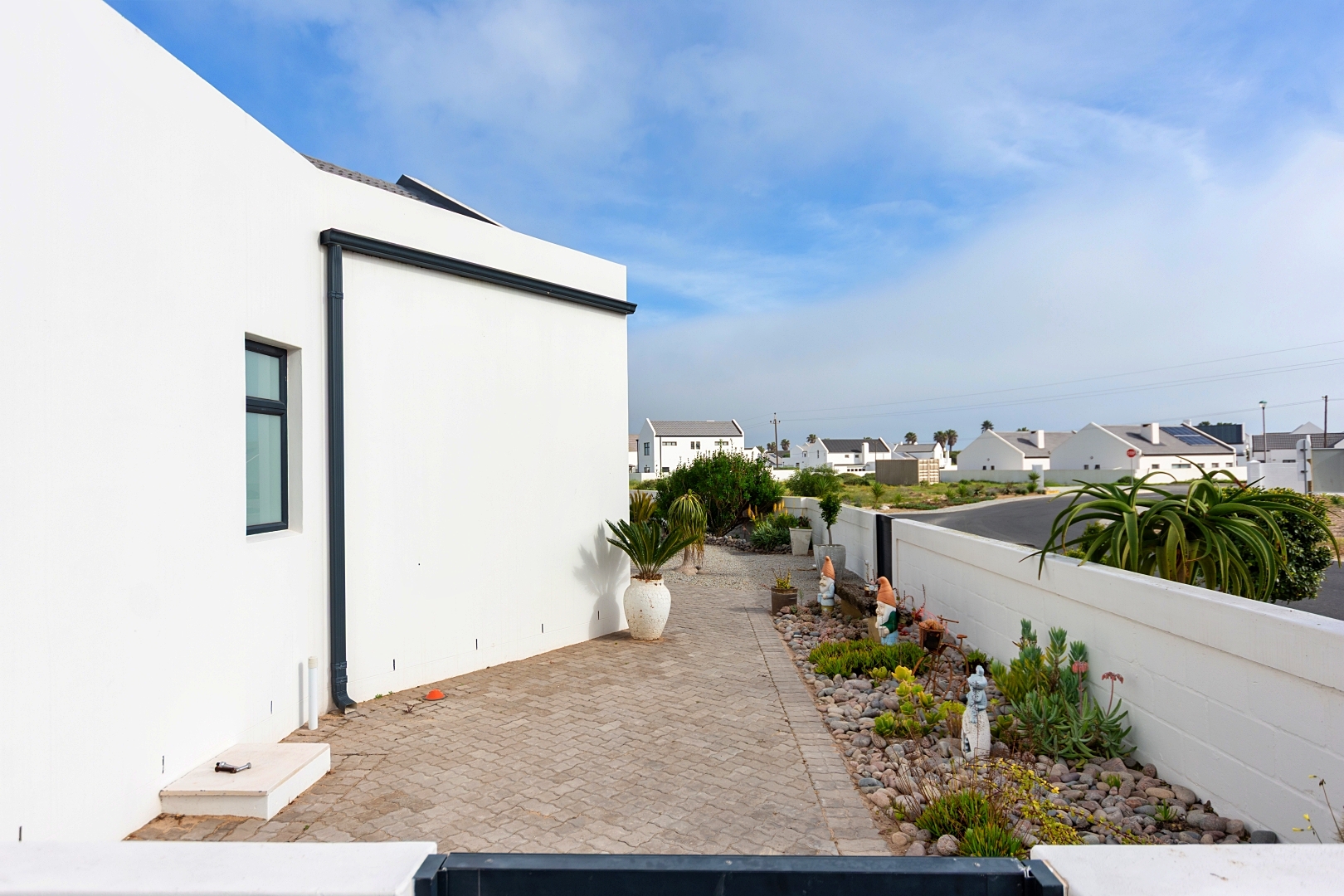 It begins with an enclosed front garden, double garage, four additional parking bays, and an extra carport for convenience.