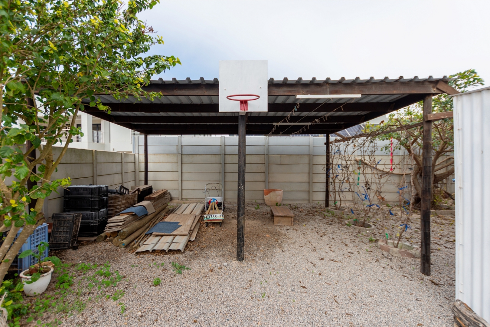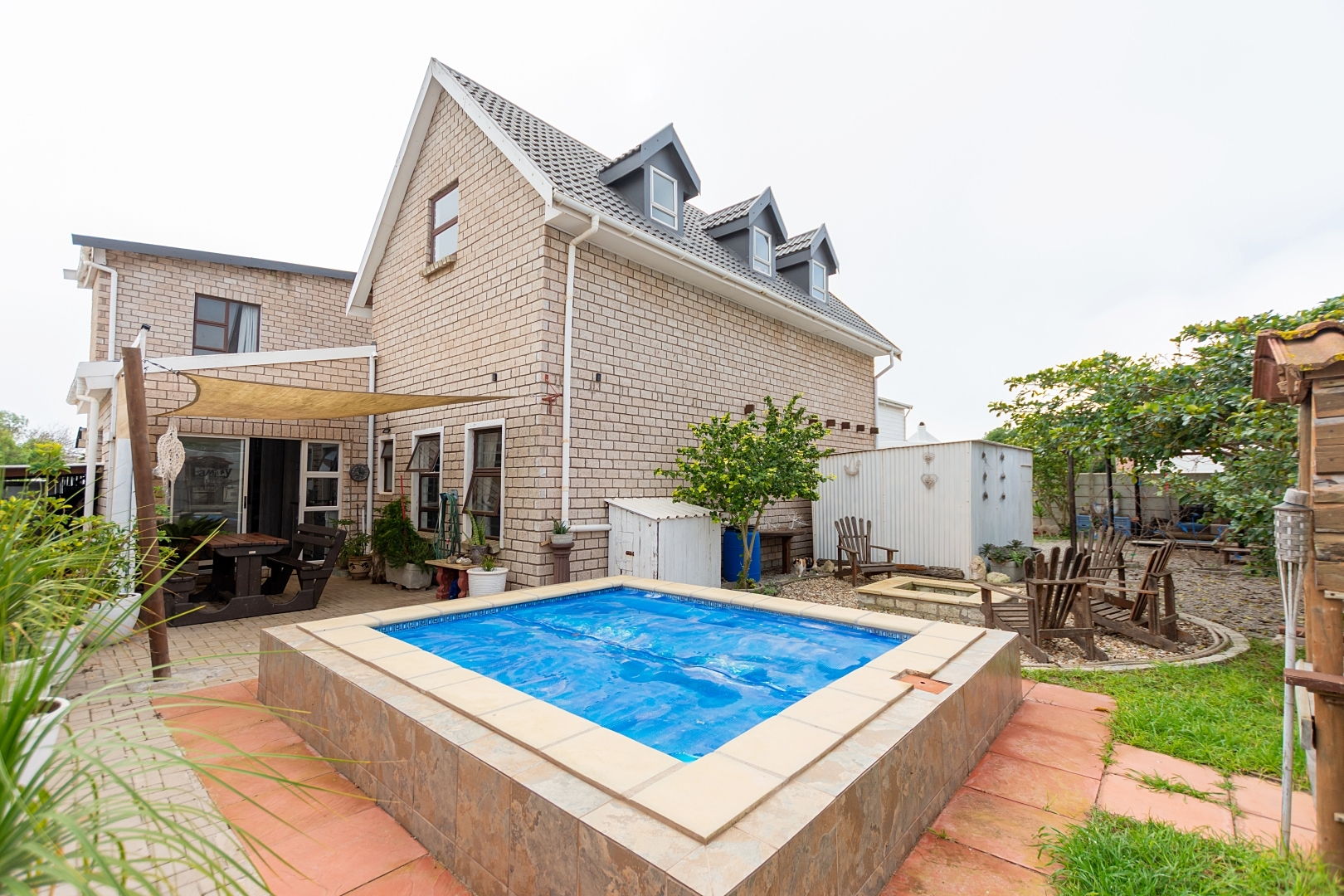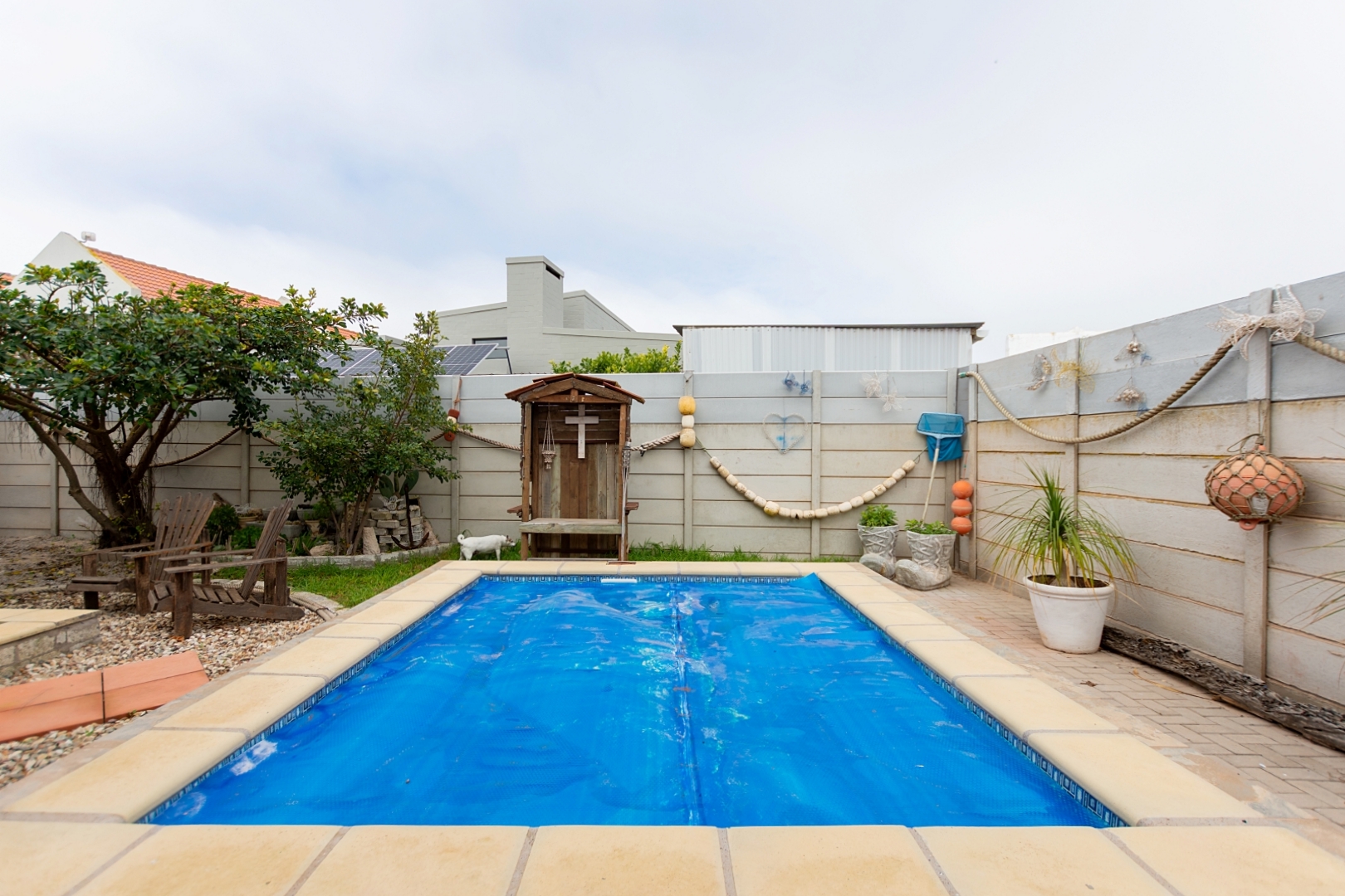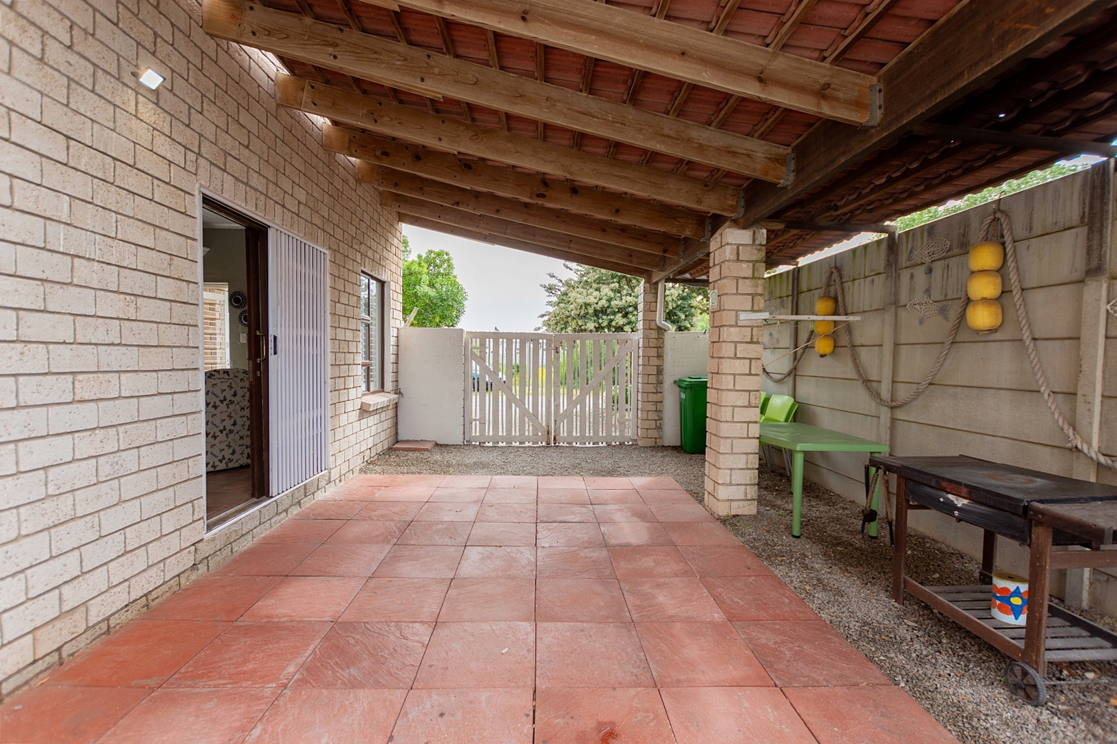 Outdoor entertainment area boasts a covered patio braai space and a sparkling swimming pool, perfect for hosting family and friends.