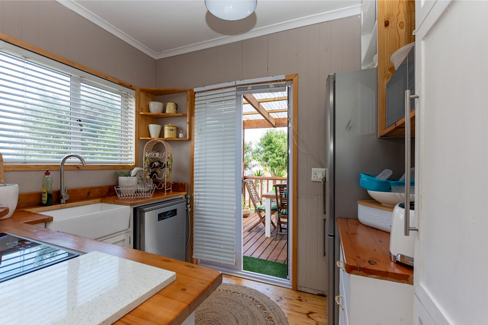 Step out from the kitchen into the backyard, where you’ll discover a covered patio featuring a second braai area and a relaxing jacuzzi – perfect for hosting or unwinding in style.