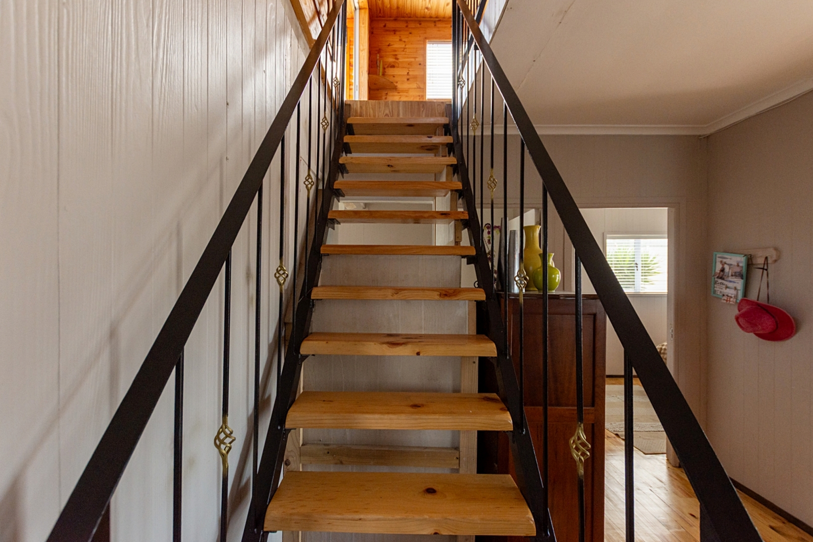 One of the standout features of this home is its dual-level design with dual access: a staircase from the inside and a separate outdoor staircase leading to the upper level.