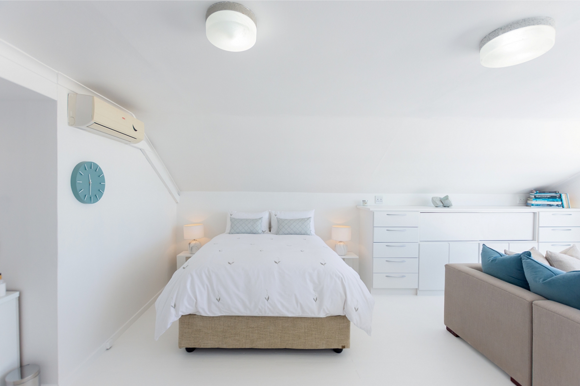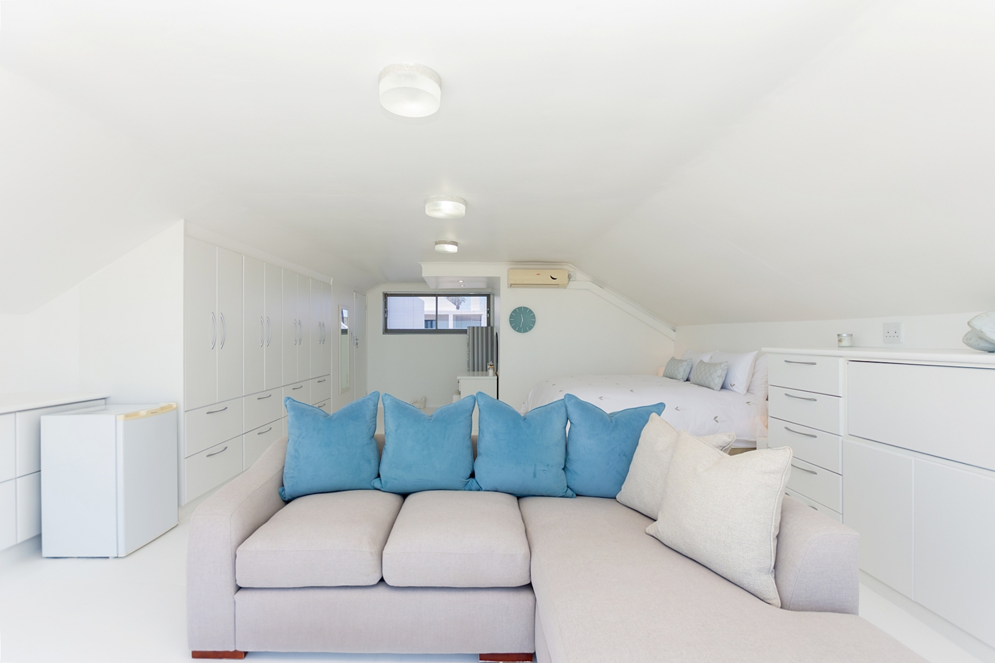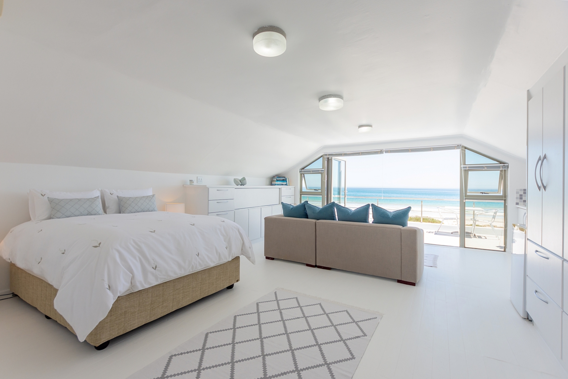 Designed for easy coastal living, the heart of the home is a generous open-plan lounge and dining area with a modern kitchen, Caesarstone and granite countertops, Bosch gas hob, electric oven and separate scullery. Large sliding doors draw in sweeping sea views and open to a wind-protected patio with pool and seating – the perfect place to linger over long summer lunches or relax with a glass of wine as the sun sets.