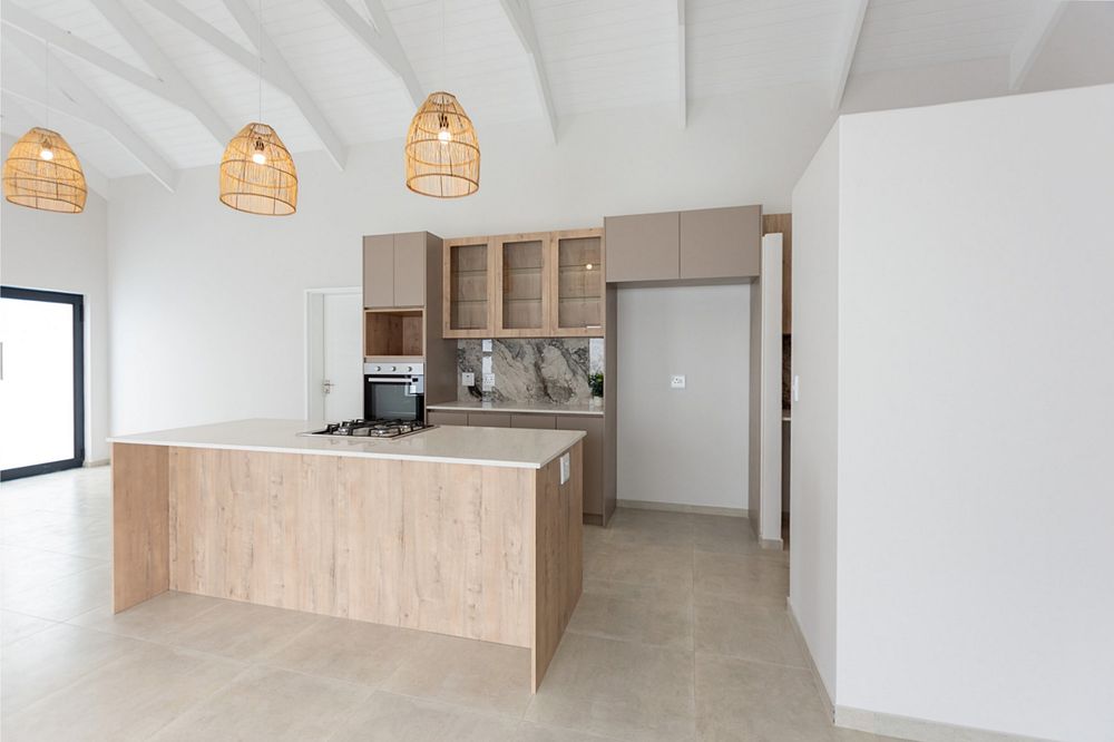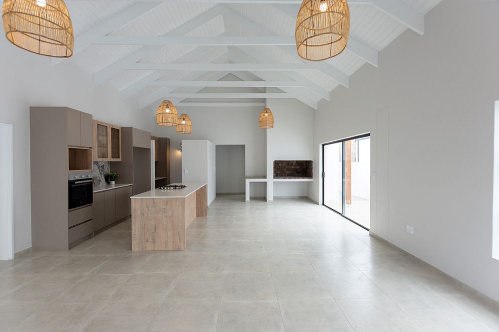The spacious open-plan kitchen/dining/living and braai area is bathed in natural light, creating a bright and airy space that is perfect for both relaxation and entertaining.