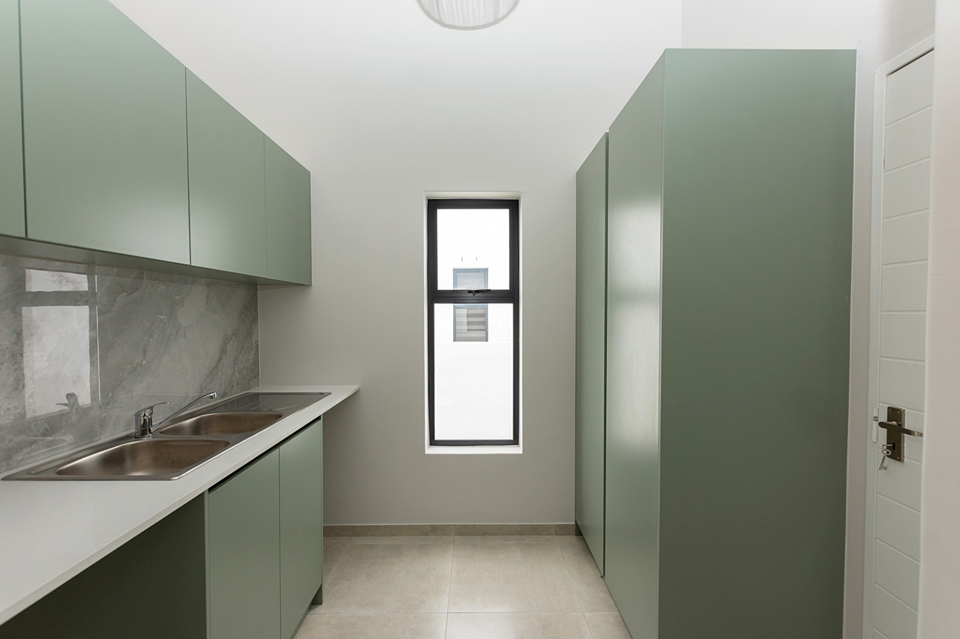 The separate scullery boasts generous cupboard space and designated areas for major appliances, ensuring functionality at your fingertips.