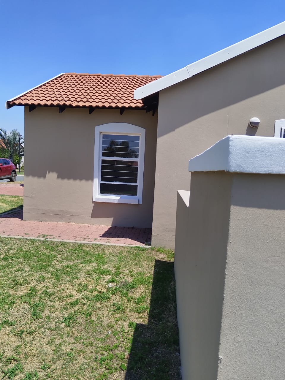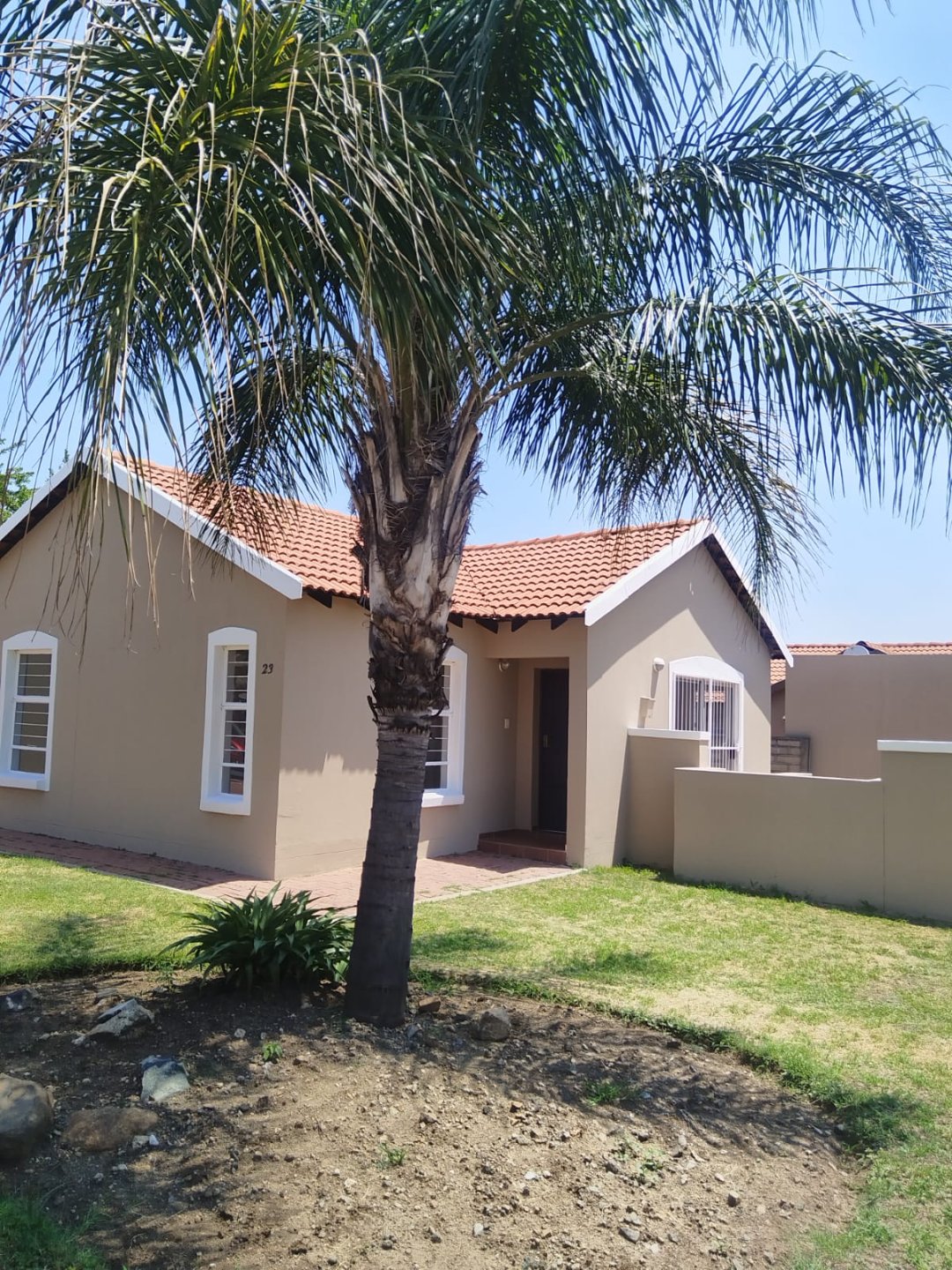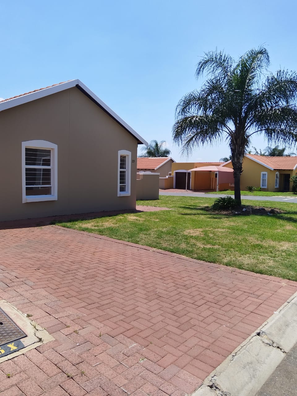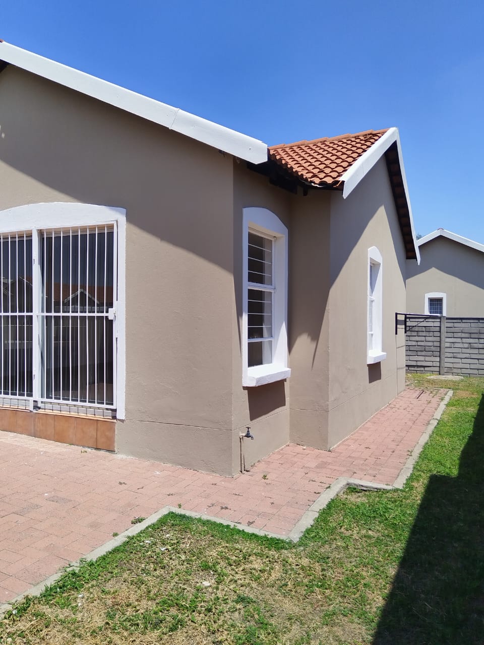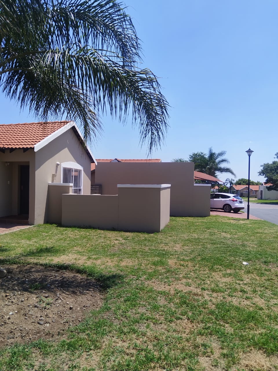 The perfect 2-bedroom home with brand new Kitchen cupboards in a security complex. Corner stand with a beautiful garden and a Palm tree. The yard is very spacious with an outside braai area and patio.