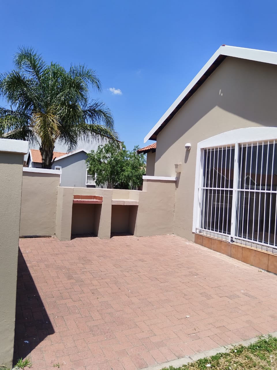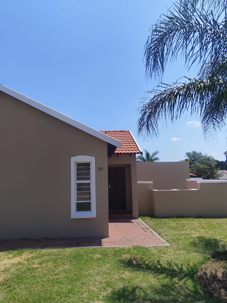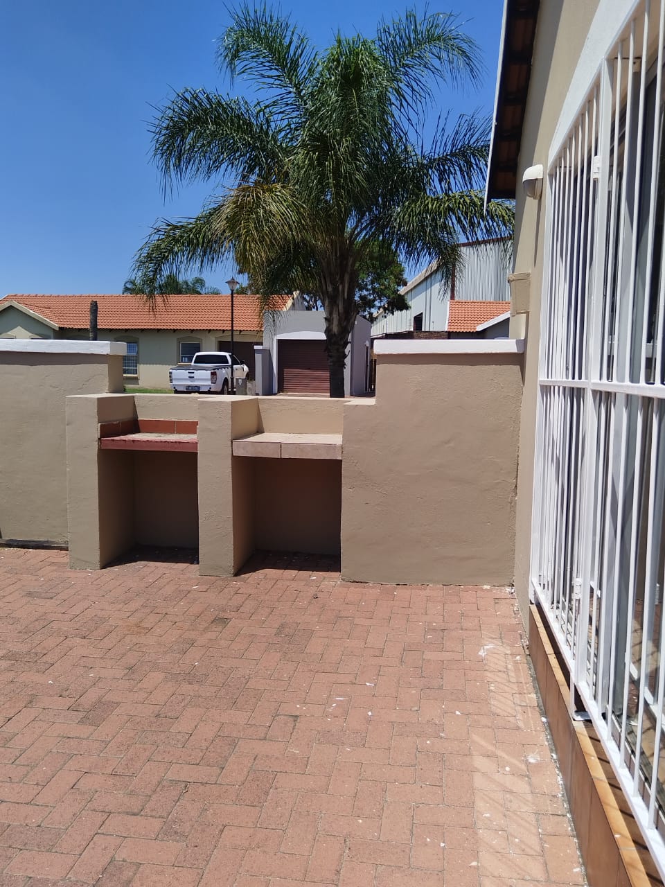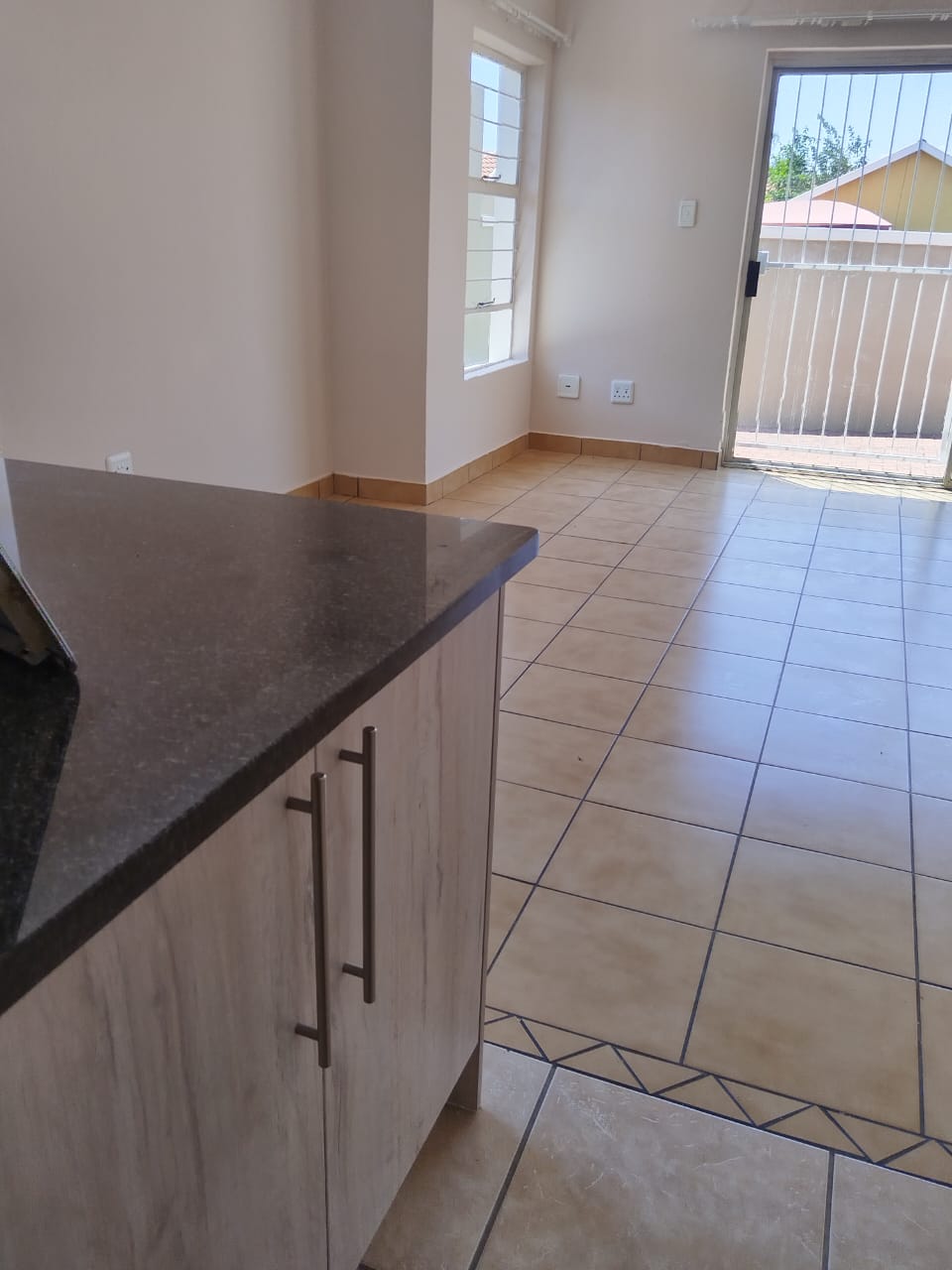 The perfect 2-bedroom home with brand new Kitchen cupboards in a security complex. Corner stand with a beautiful garden and a Palm tree. The yard is very spacious with an outside braai area and patio.