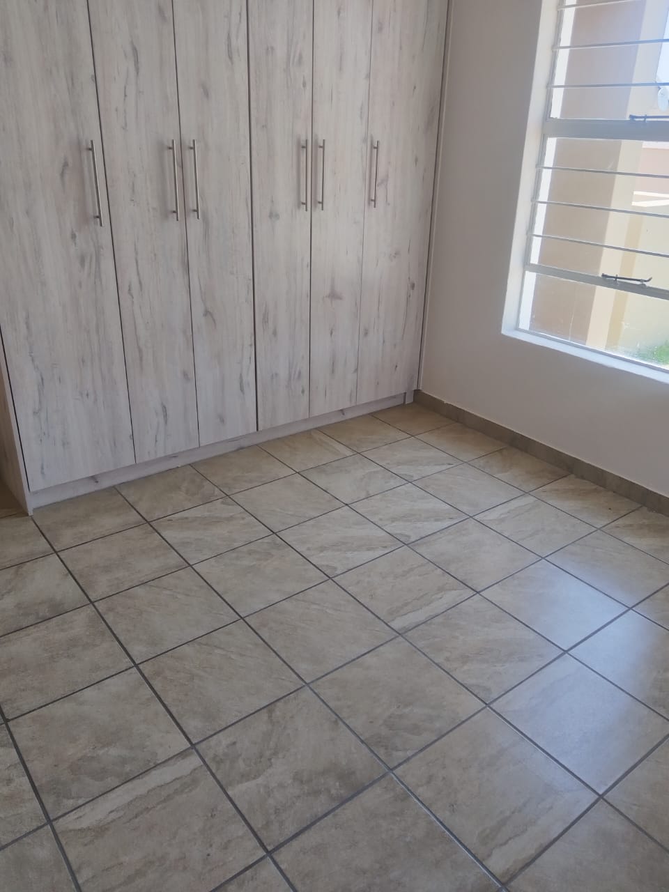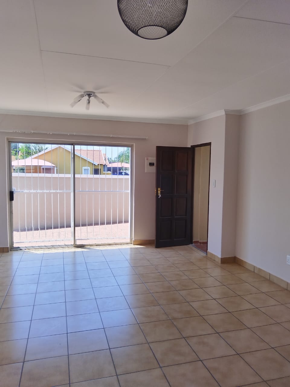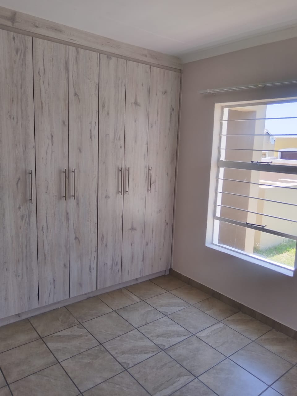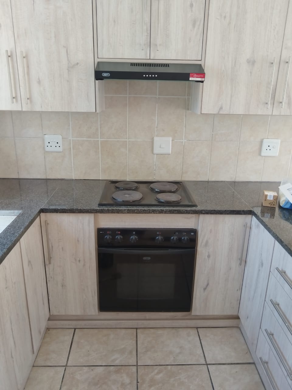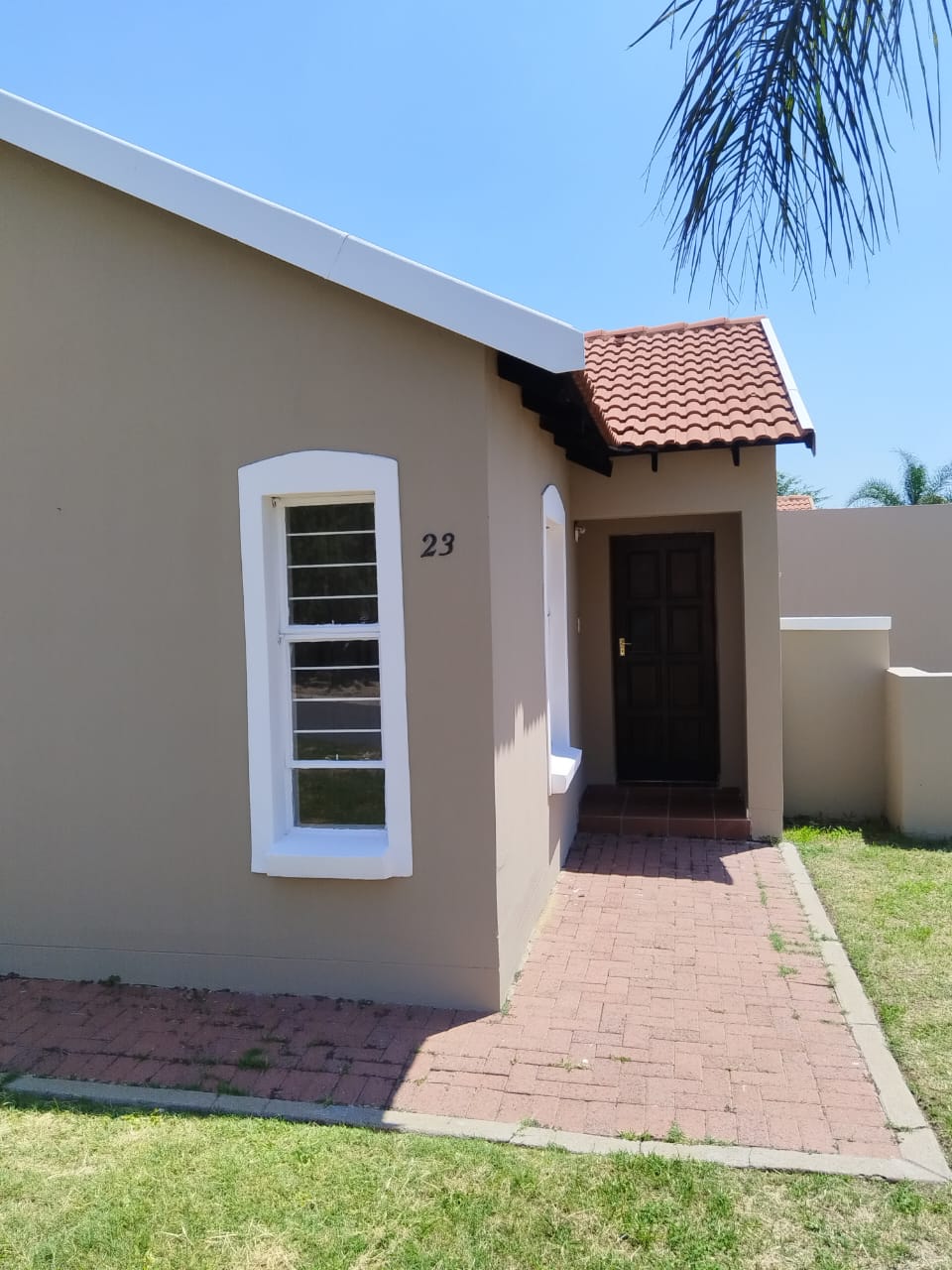 The perfect 2-bedroom home with brand new Kitchen cupboards in a security complex. Corner stand with a beautiful garden and a Palm tree. The yard is very spacious with an outside braai area and patio.
