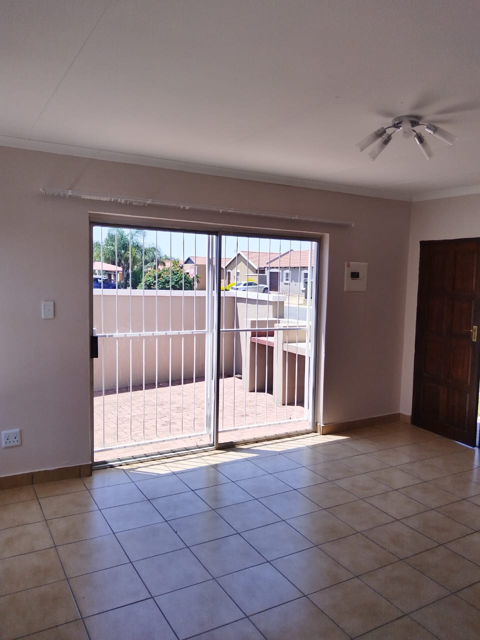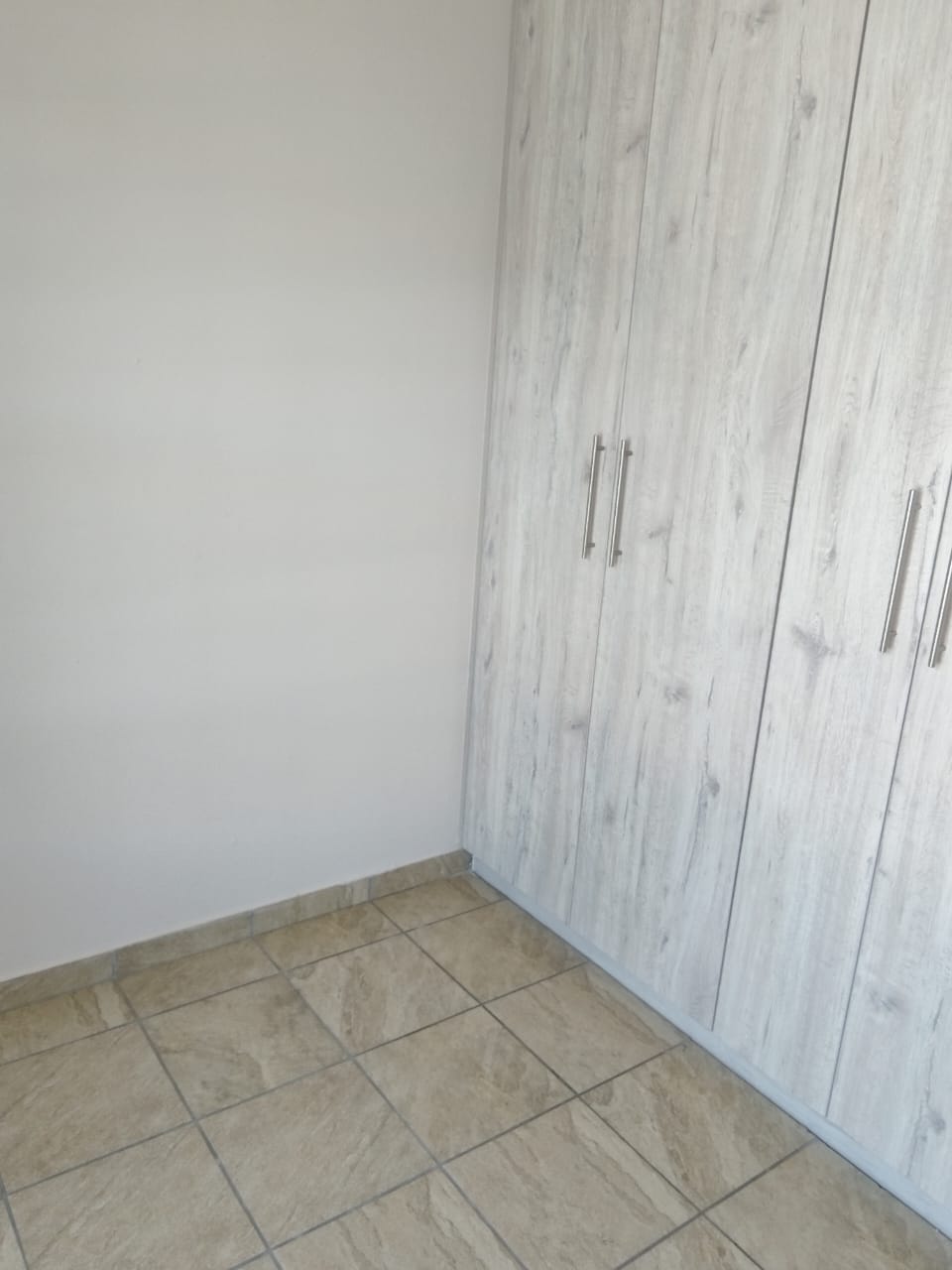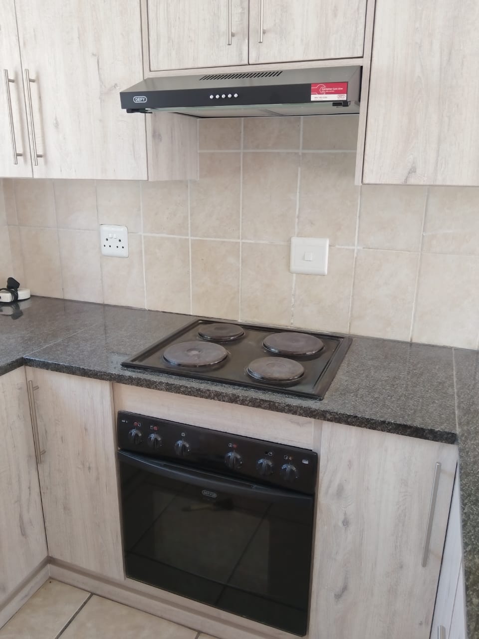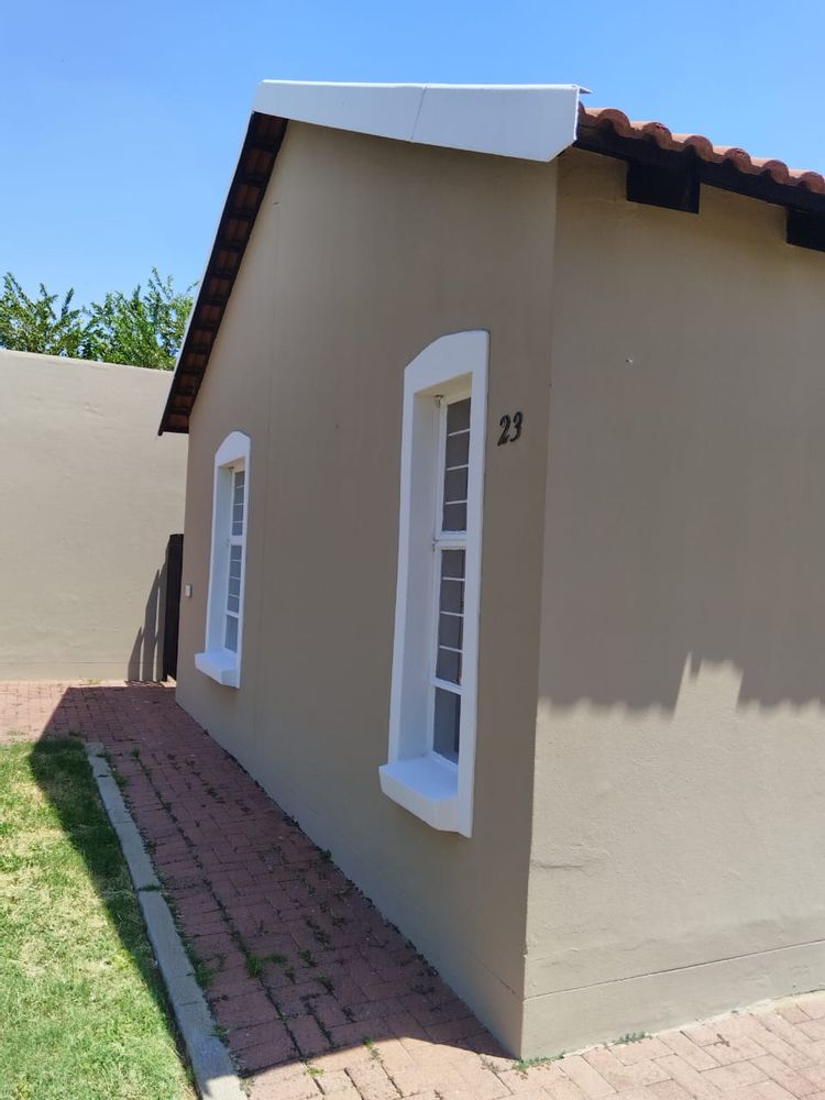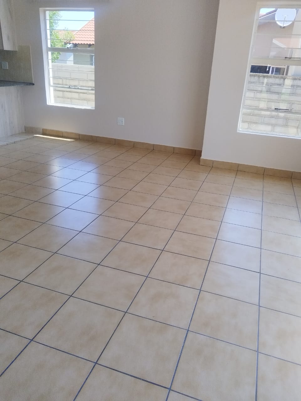 The perfect 2-bedroom home with brand new Kitchen cupboards in a security complex. Corner stand with a beautiful garden and a Palm tree. The yard is very spacious with an outside braai area and patio.
