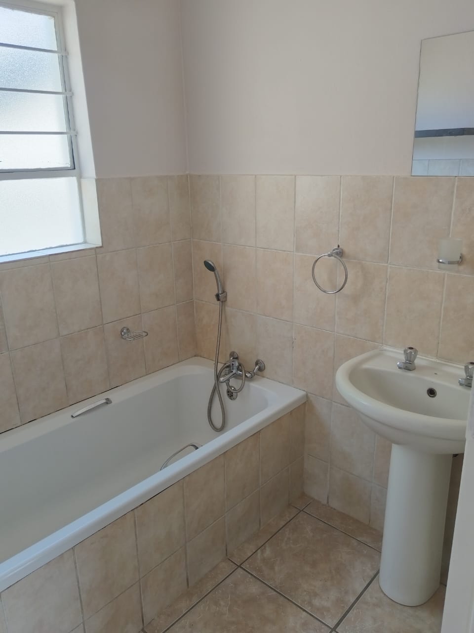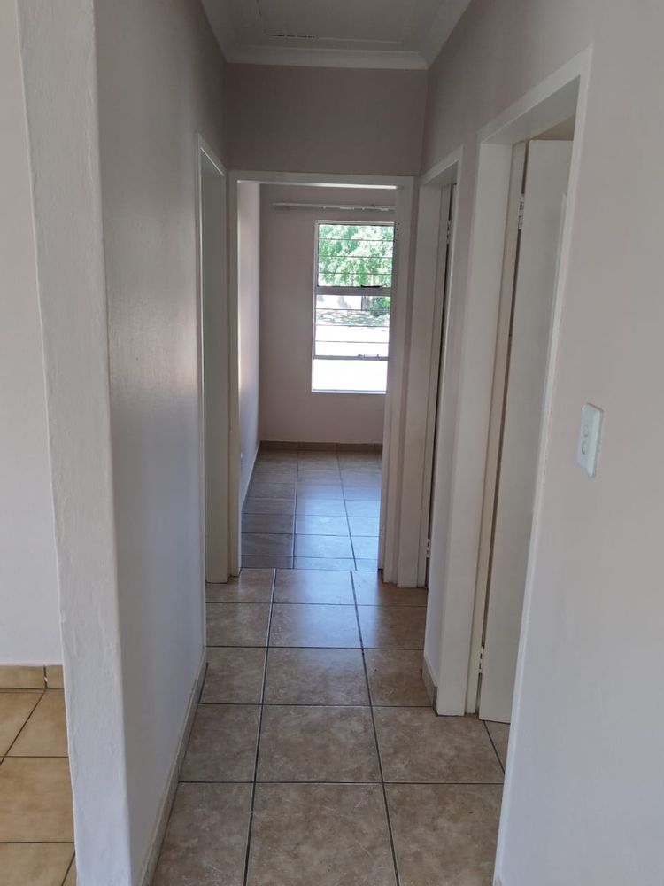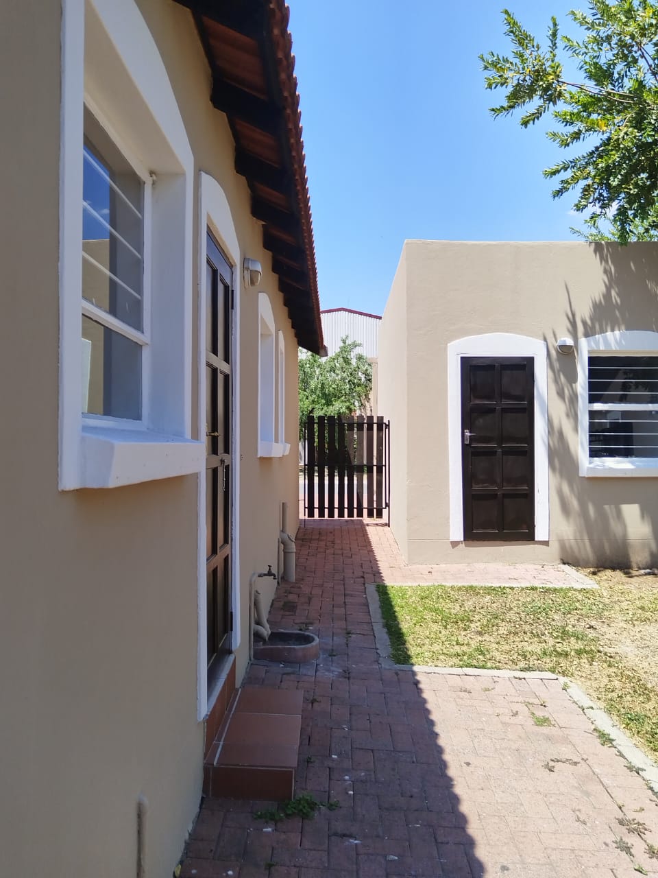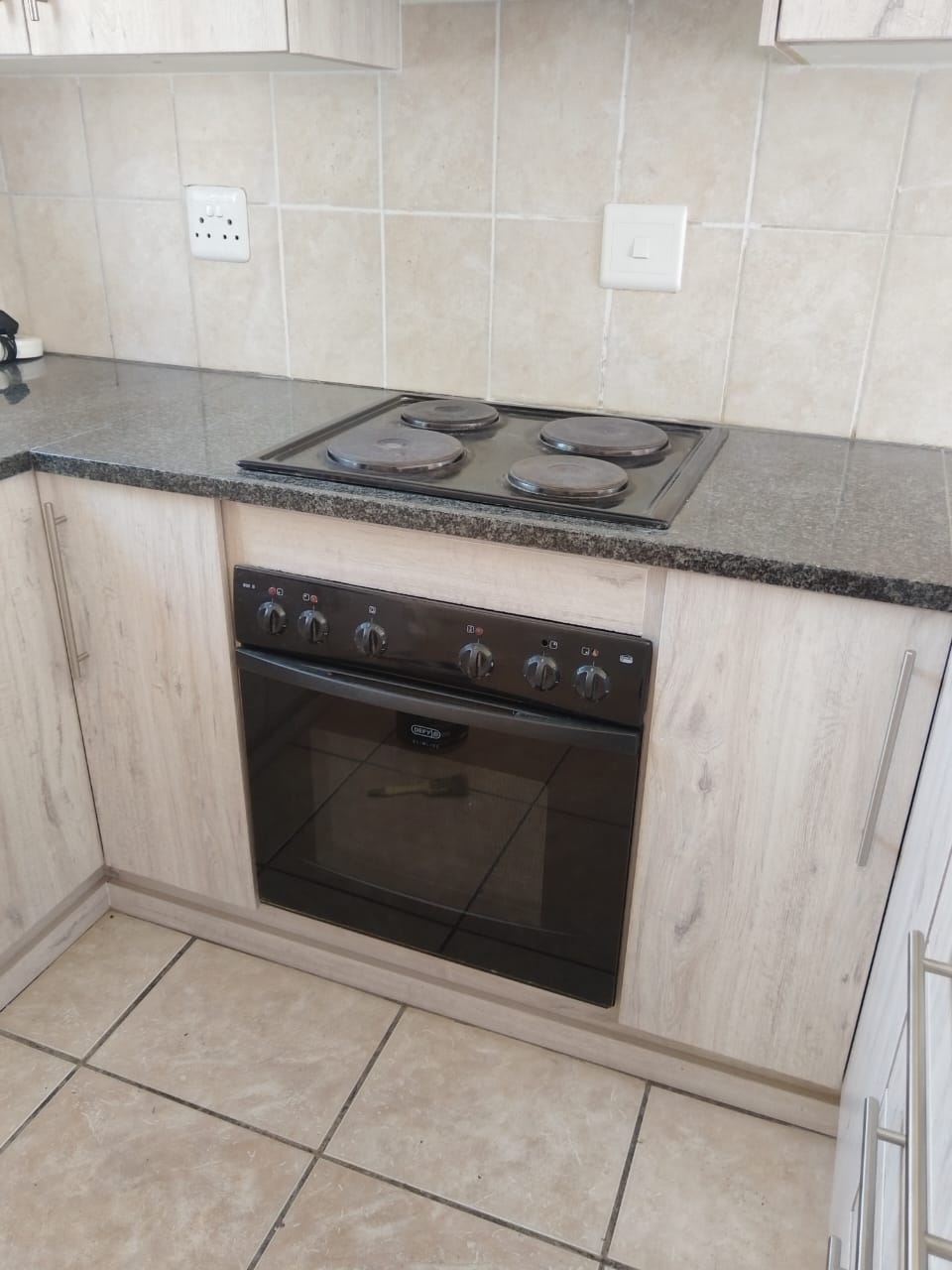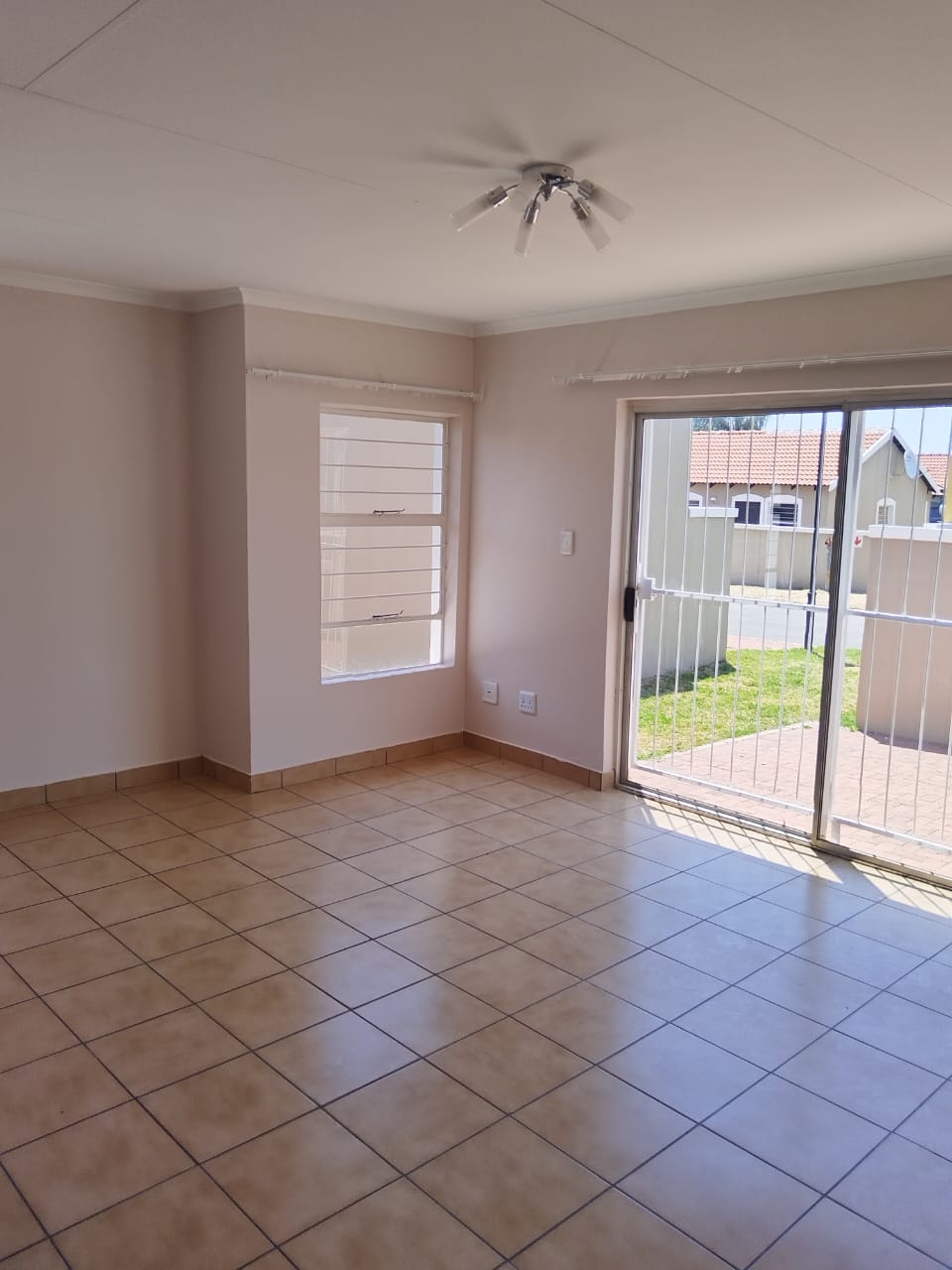 The perfect 2-bedroom home with brand new Kitchen cupboards in a security complex. Corner stand with a beautiful garden and a Palm tree. The yard is very spacious with an outside braai area and patio.