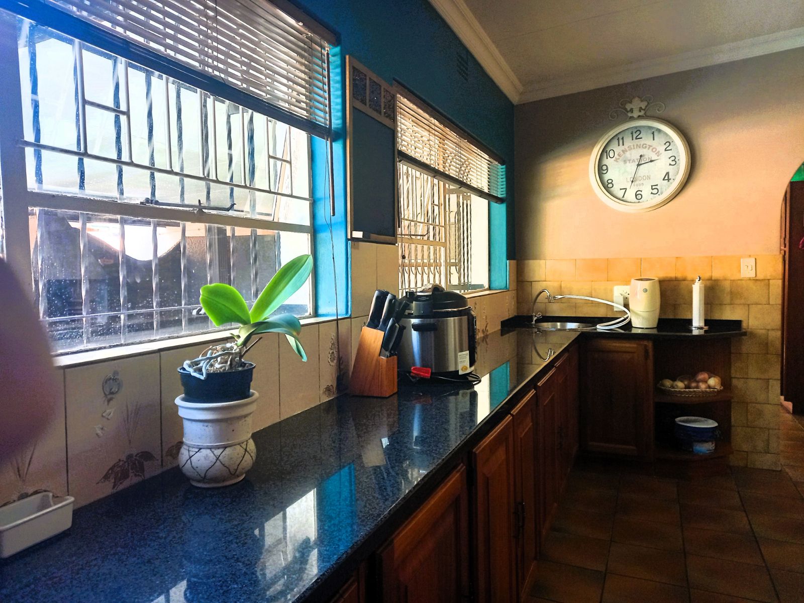 The home offers the perfect blend of comfort and convenience, featuring four well-sized bedrooms and two bathrooms – the Main En-Suite bathroom with a bath, toilet & basin, and the second, a full bathroom, shared by the other three bedrooms. A spacious lounge with an anthracite fireplace, a dining room, leading off a huge kitchen - with plenty of beautiful teakwood cupboards - a convenient centre island with a built-in stove, and a separate scullery & laundry.