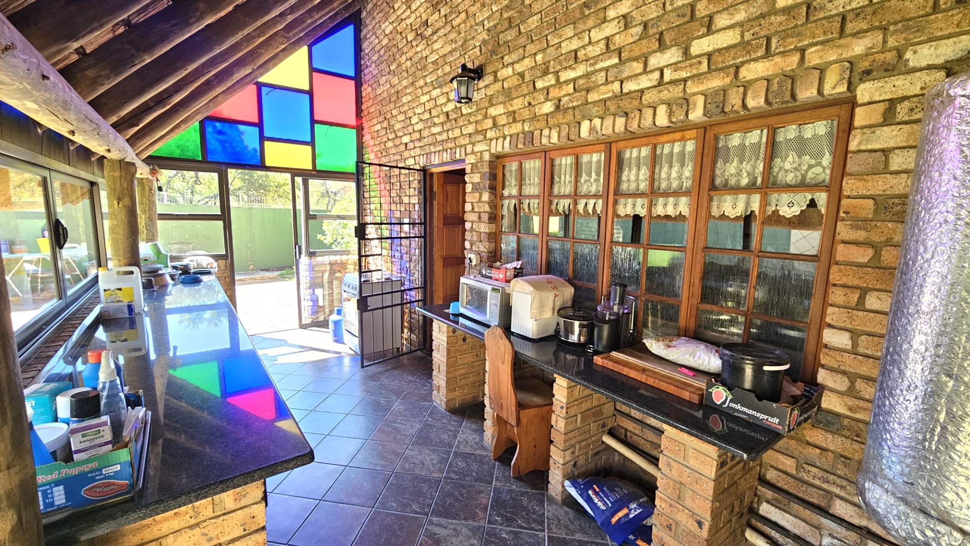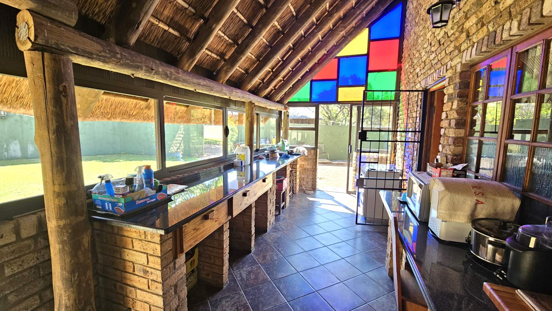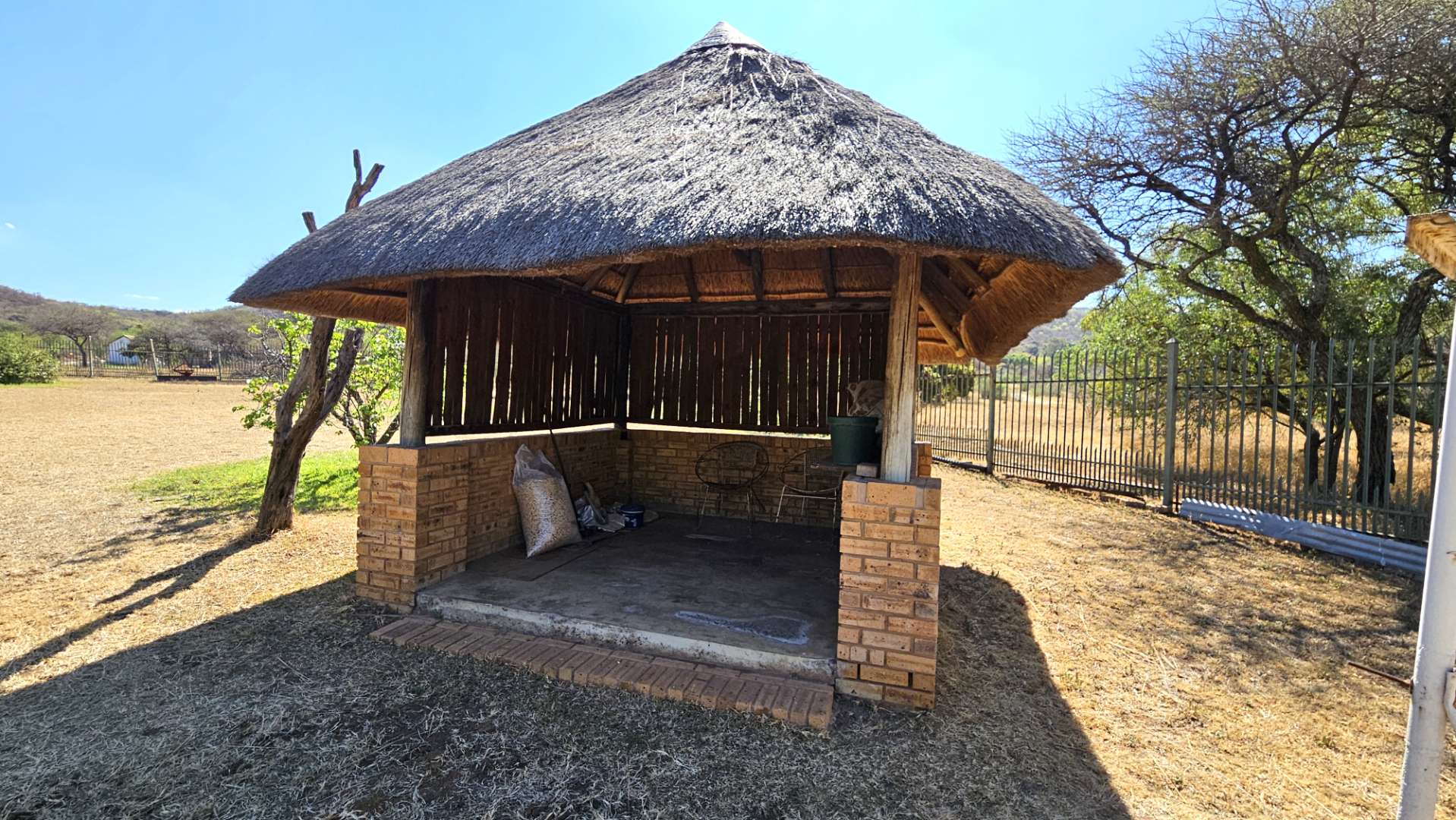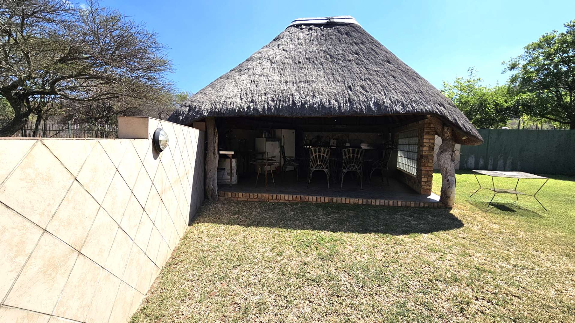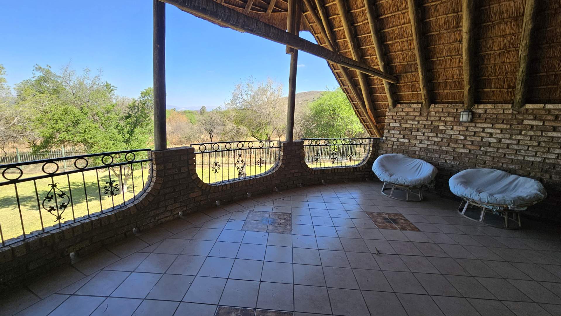 Beautiful stoep at the front, and thatched lapa at the back where gatherings and