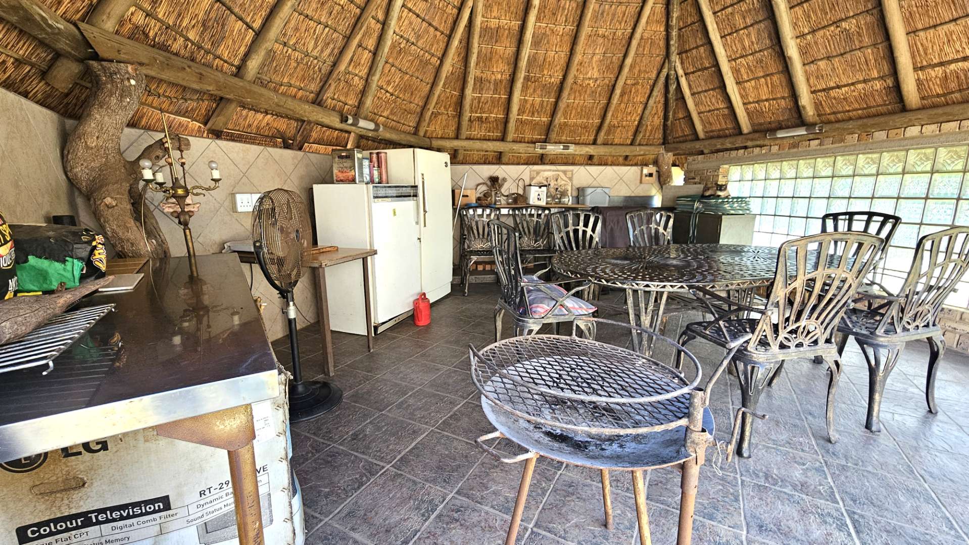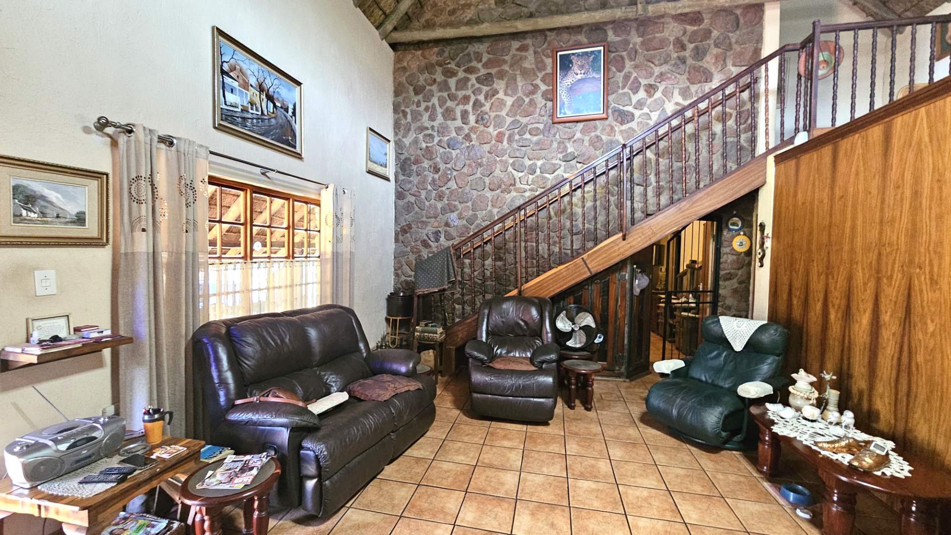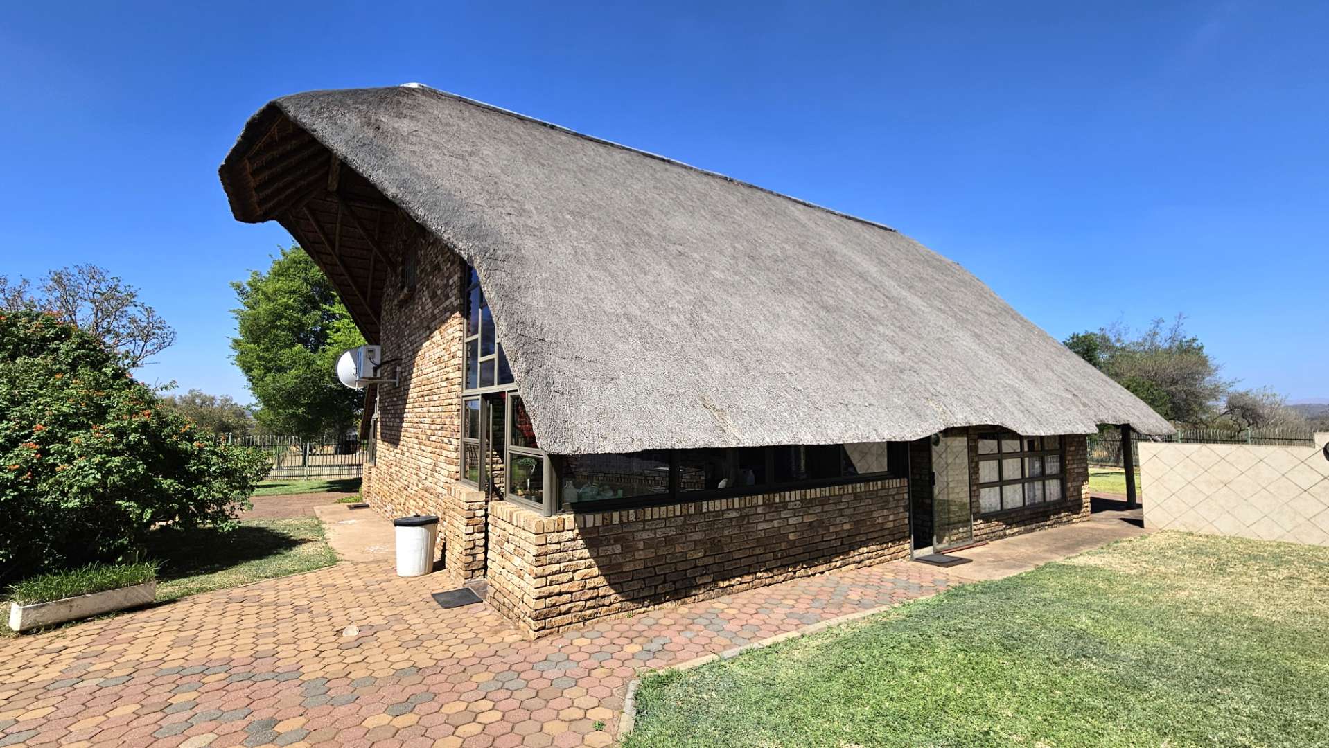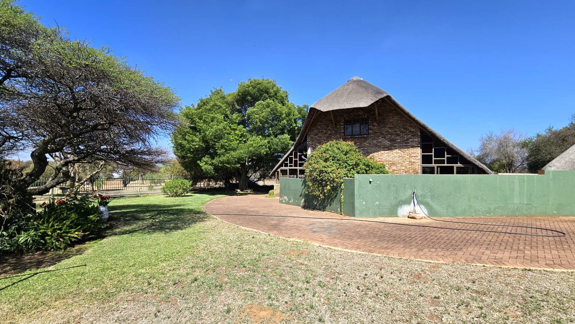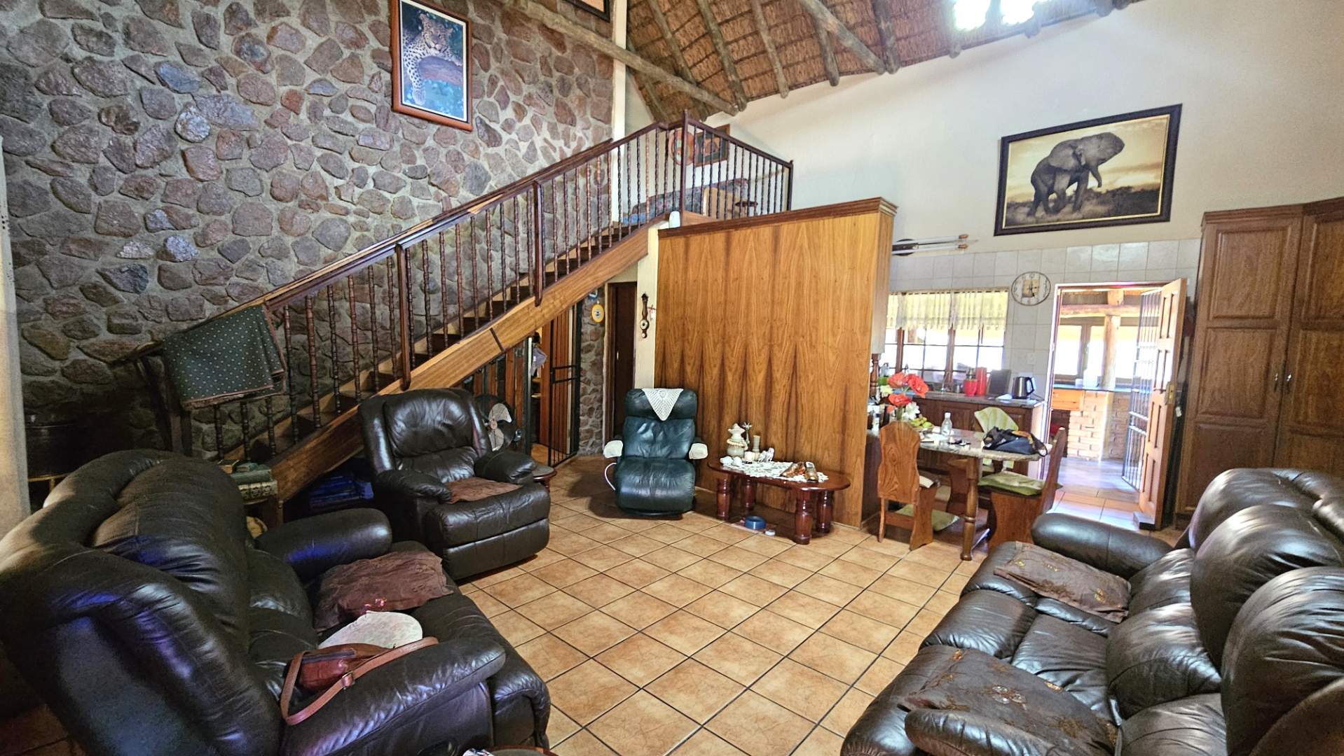 Beautiful stoep at the front, and thatched lapa at the back where gatherings and