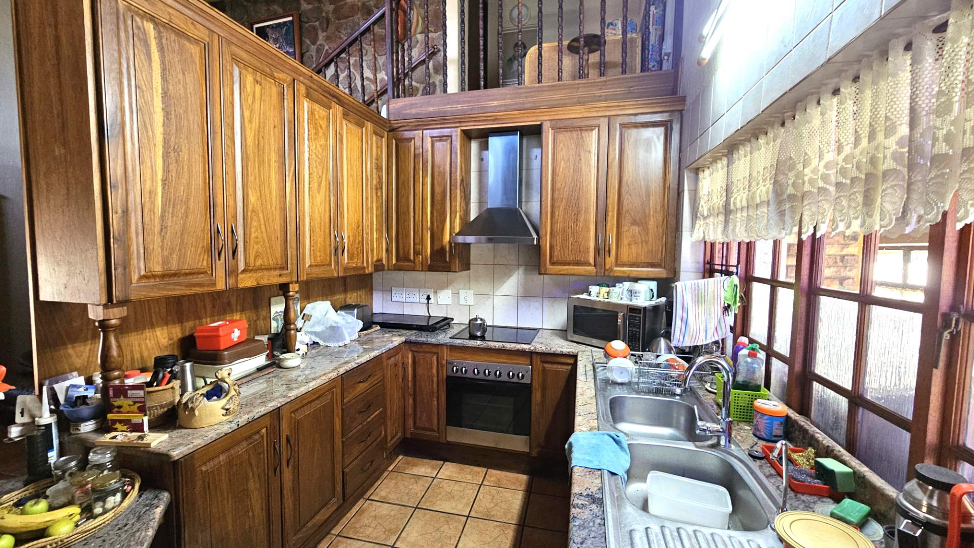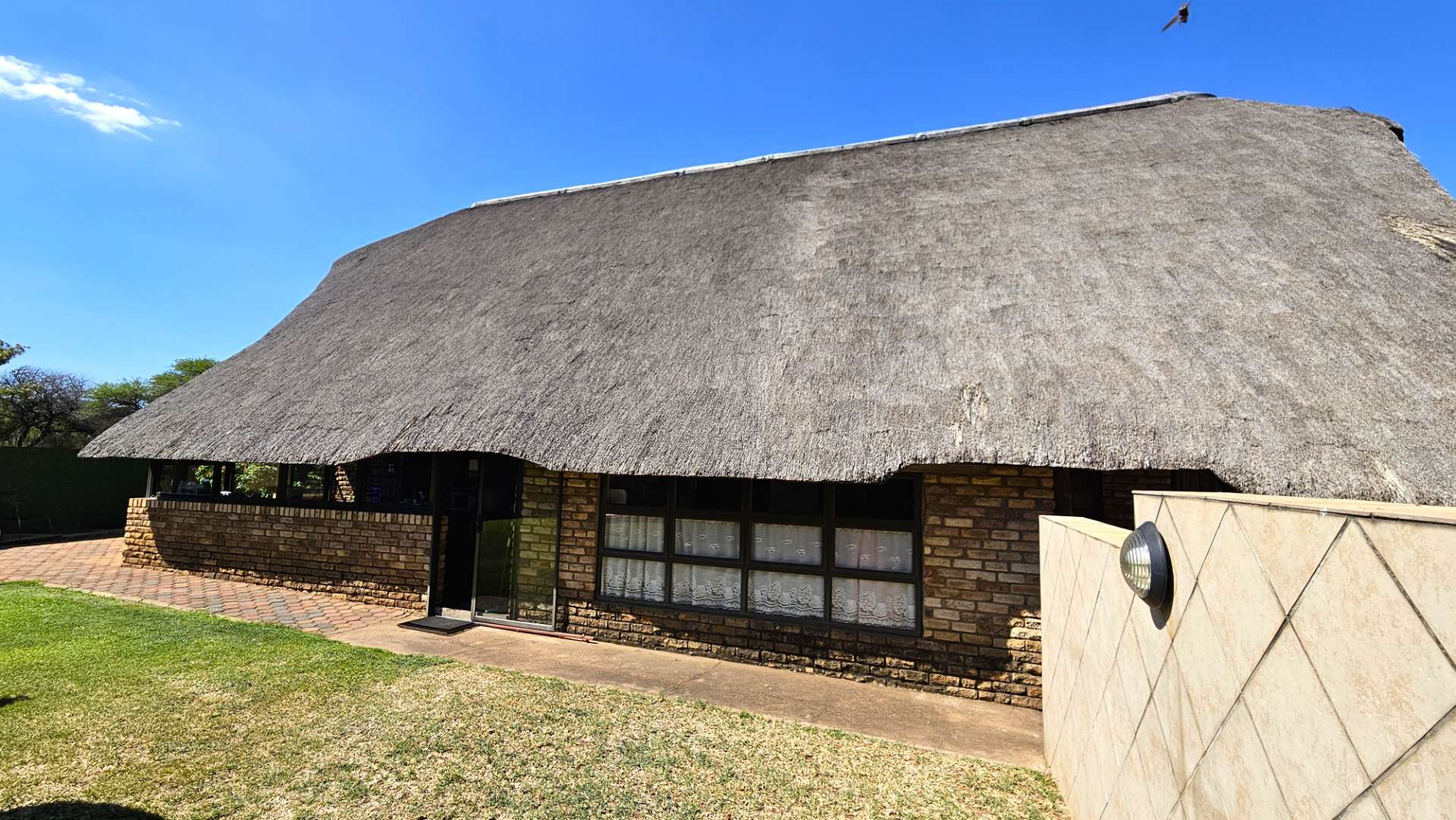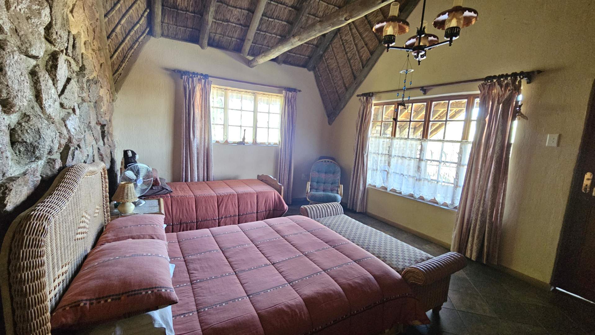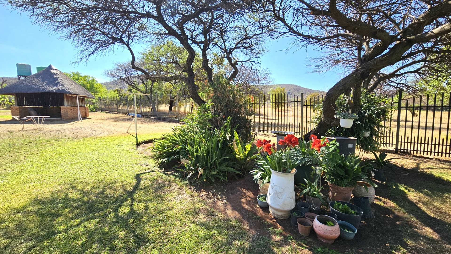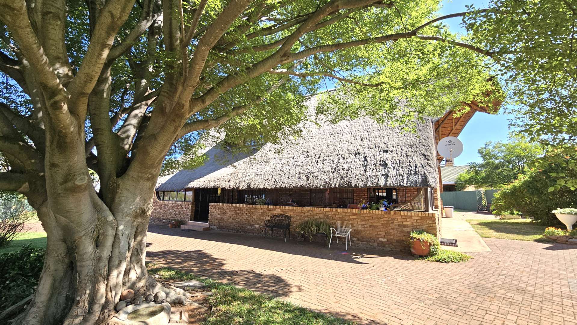 Beautiful stoep at the front, and thatched lapa at the back where gatherings and