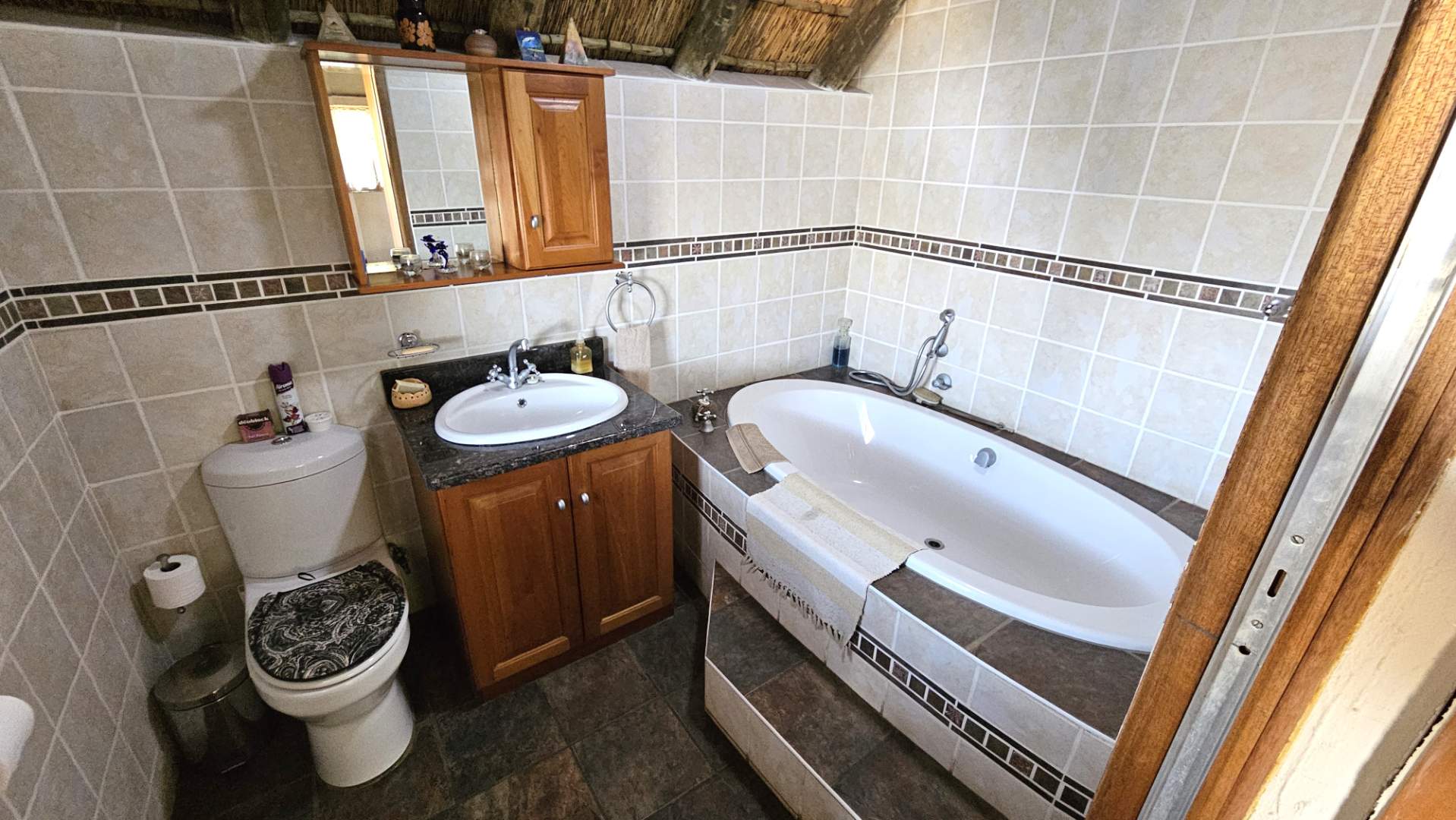 Face brick, thatched, double story farm style home with, 3 bedrooms all en suite bathrooms,