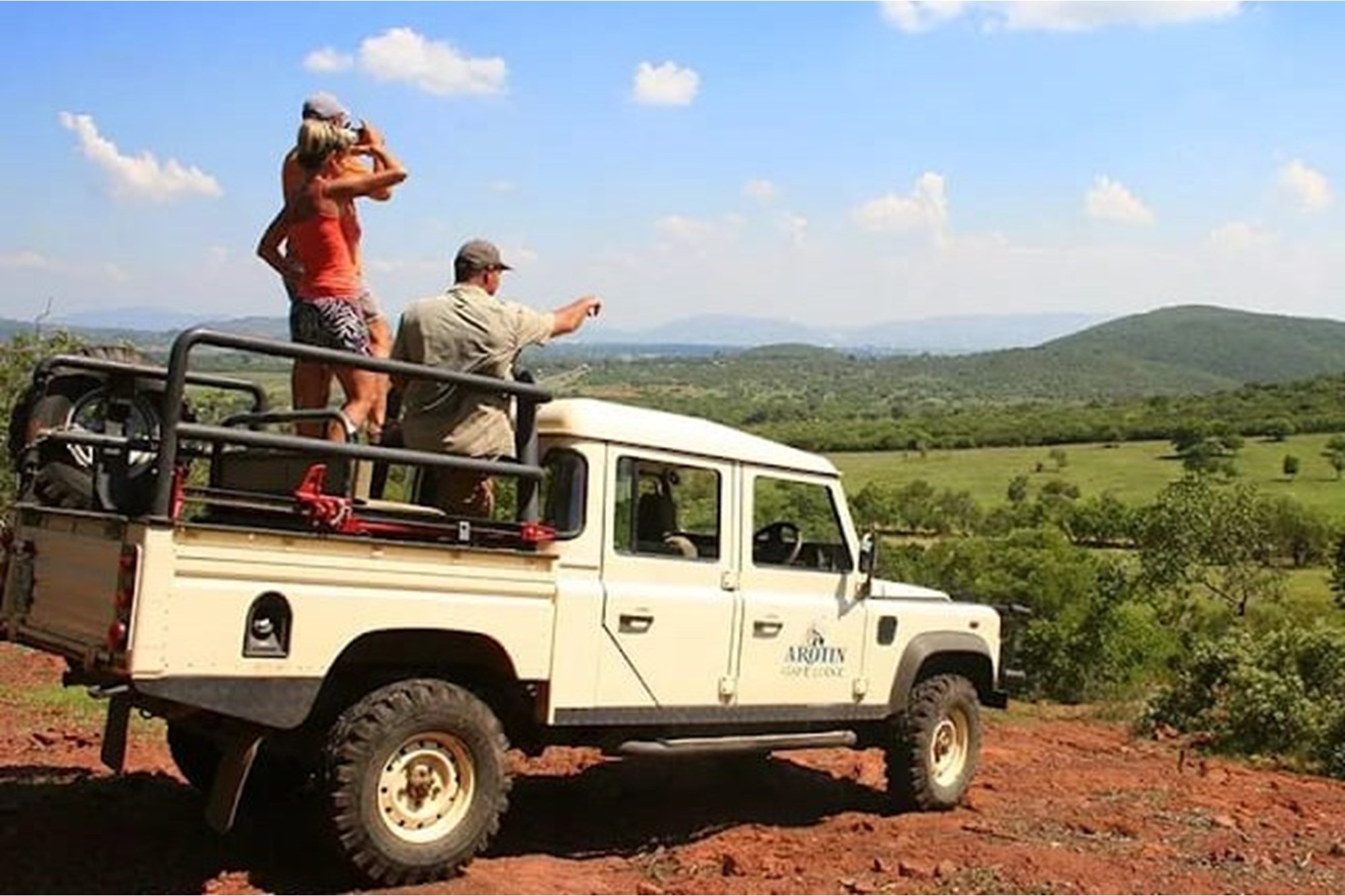 -Diverse Wildlife: Bushveld vegetation with a variety of game species, including impala, kudu, waterbuck, and giraffe.