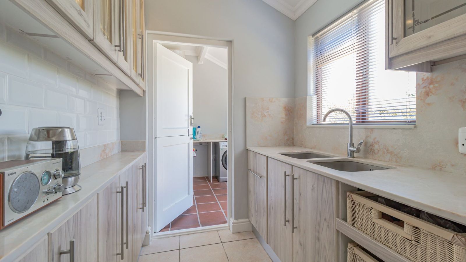 From here, the separate scullery and laundry area conveniently opens to the back garden.