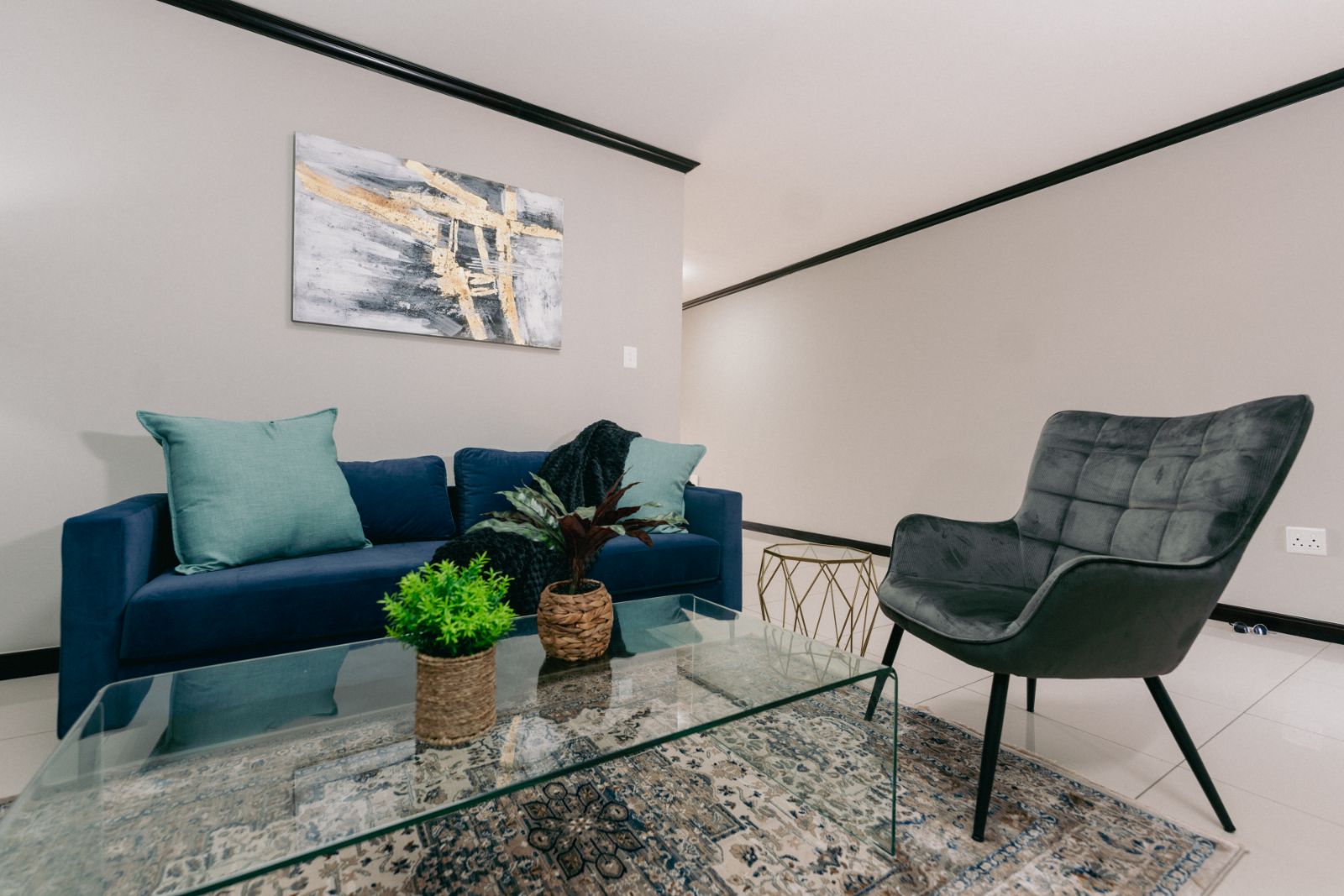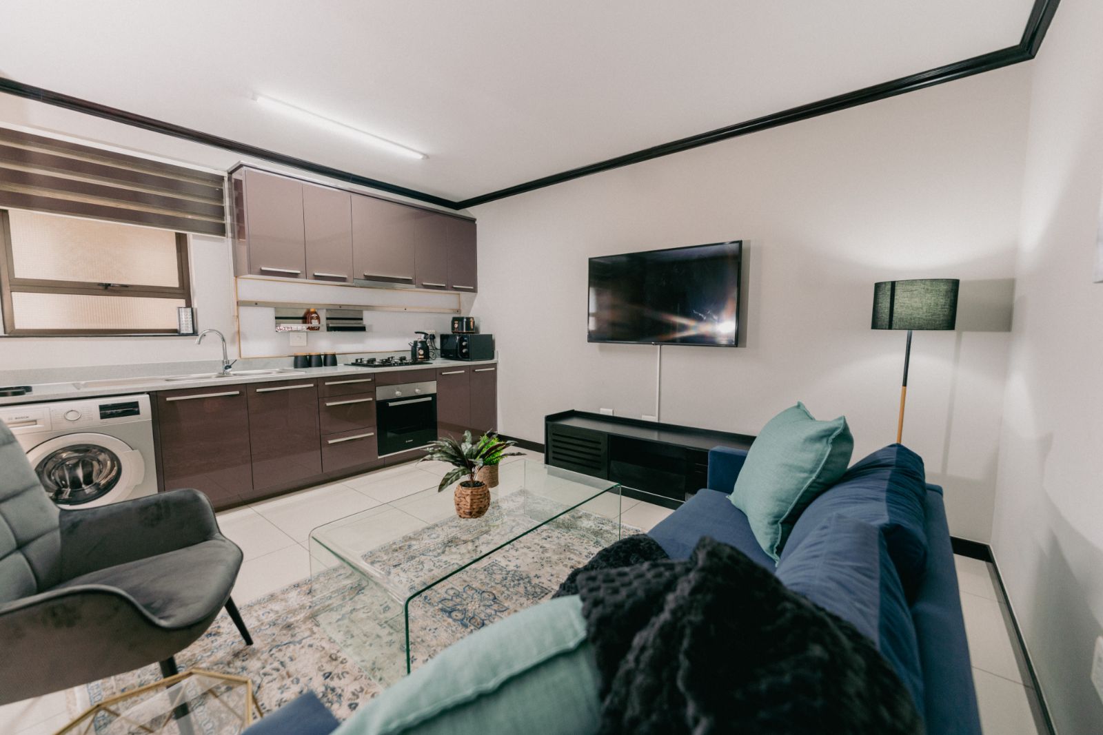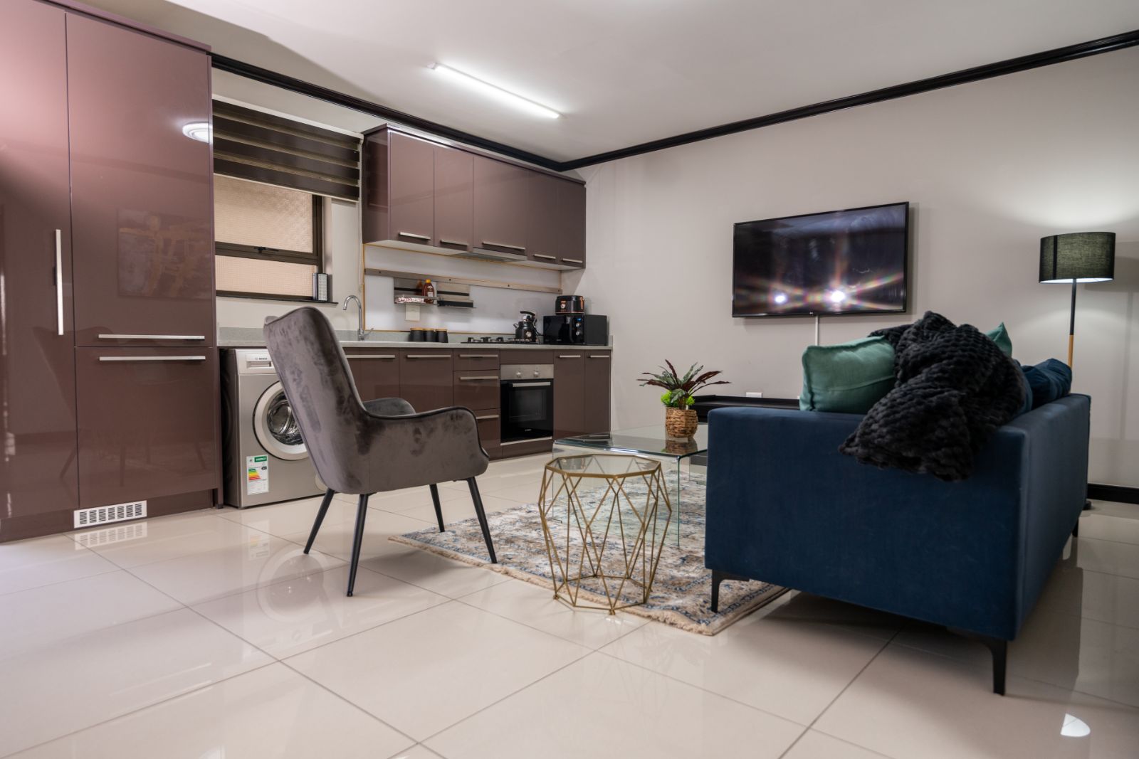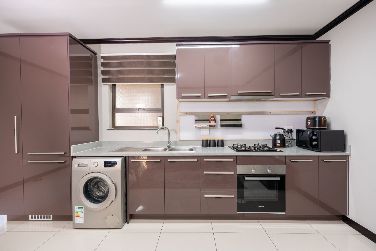 Modern finishes, open plan lounge and kitchen - gas stove. Ample cupboard space.
