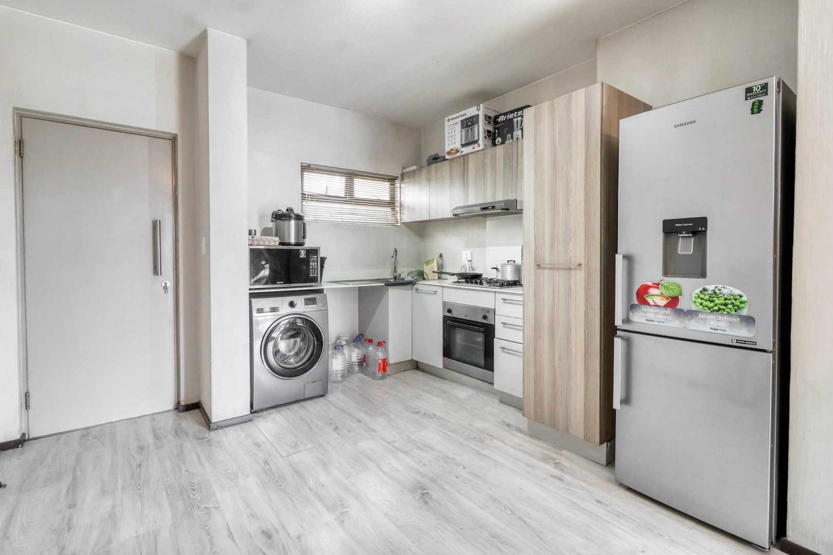 This spacious 2-bedroom apartment located in a modern estate complete with a clubhouse and a very well-equipped gym in Broadacres is beautifully done with modern finishes, laminated floors, and carpeted bedrooms and has a sophisticated neutral colour scheme, which gives you a clean palette to decorate it as you like.