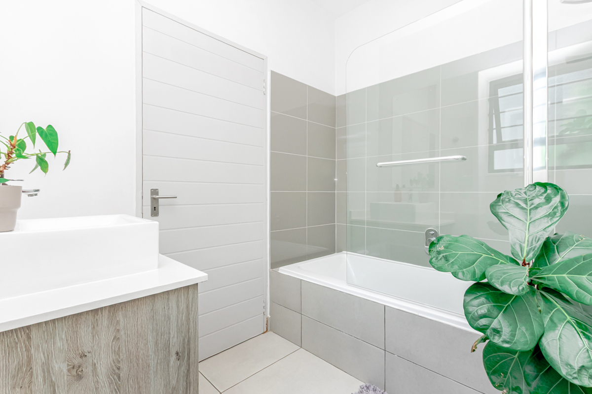There are three generously sized bedrooms, with the main bedroom offering an en-suite bathroom and air-conditioning. The home includes two spacious, modern bathrooms in total.