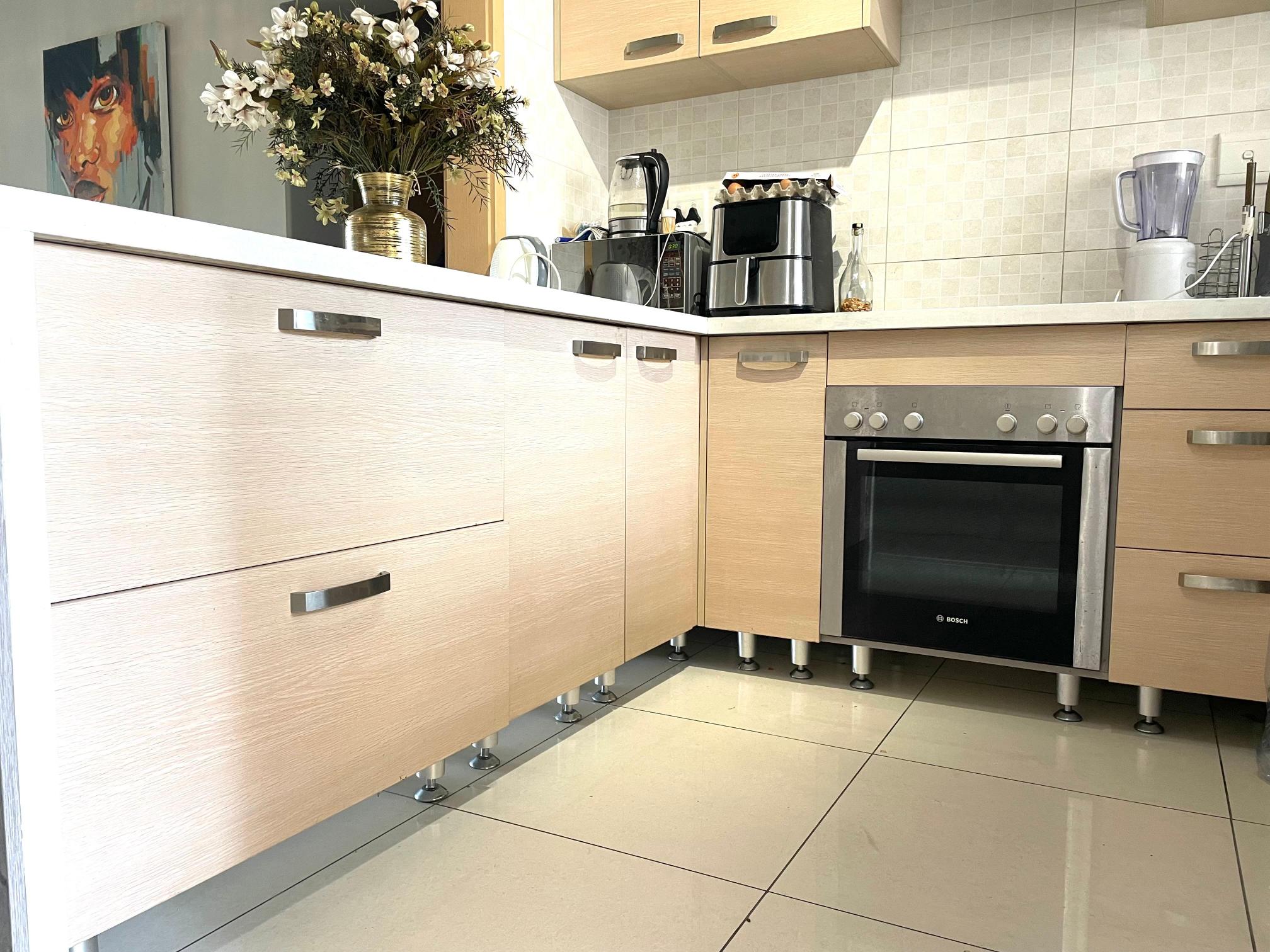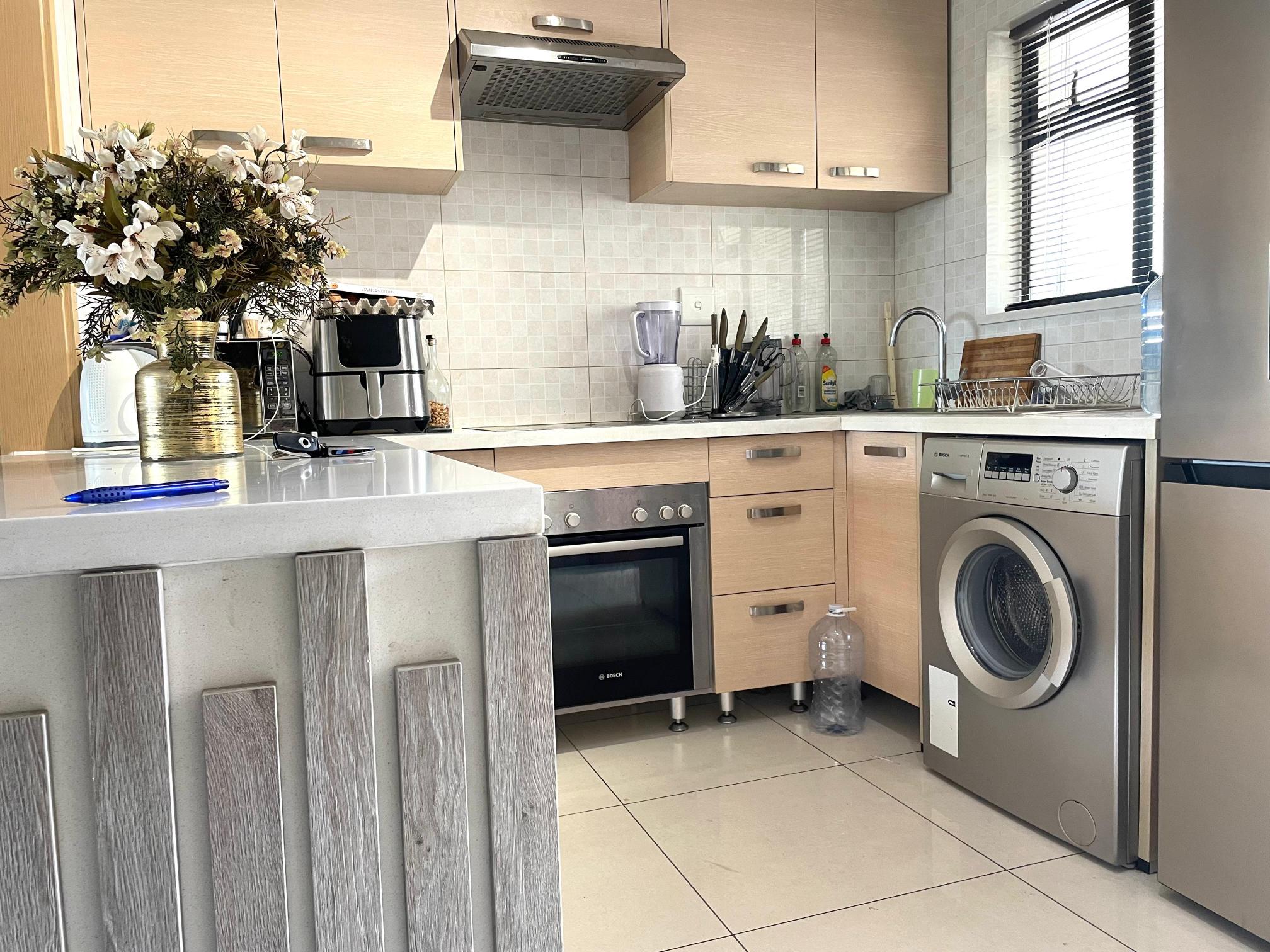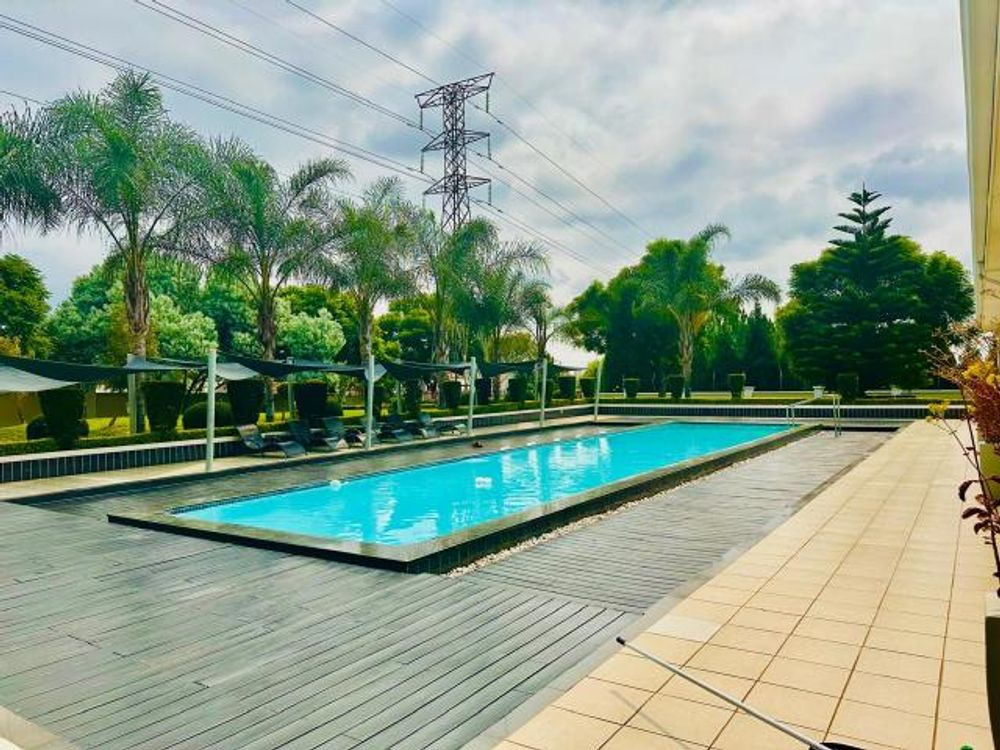 This exquisite first-floor apartment features a contemporary open-plan design, seamlessly integrating the kitchen and lounge. Situated in the secure biometric access community of Groveacres Estate Broadacres, Fourways, this property is perfect for modern living.