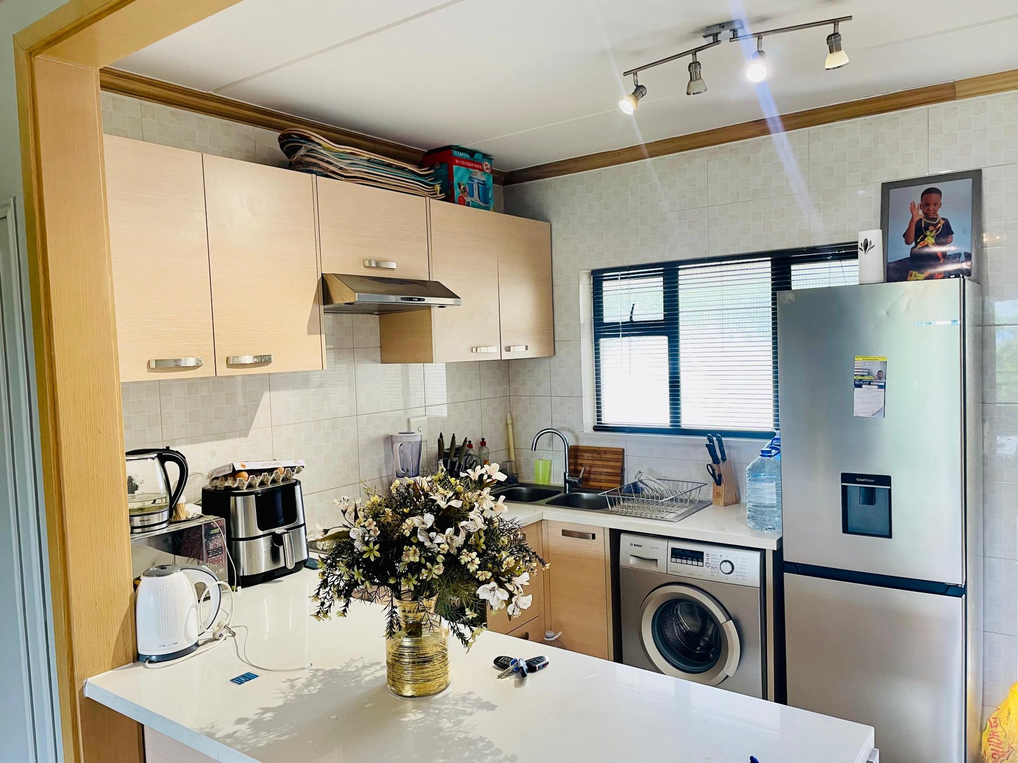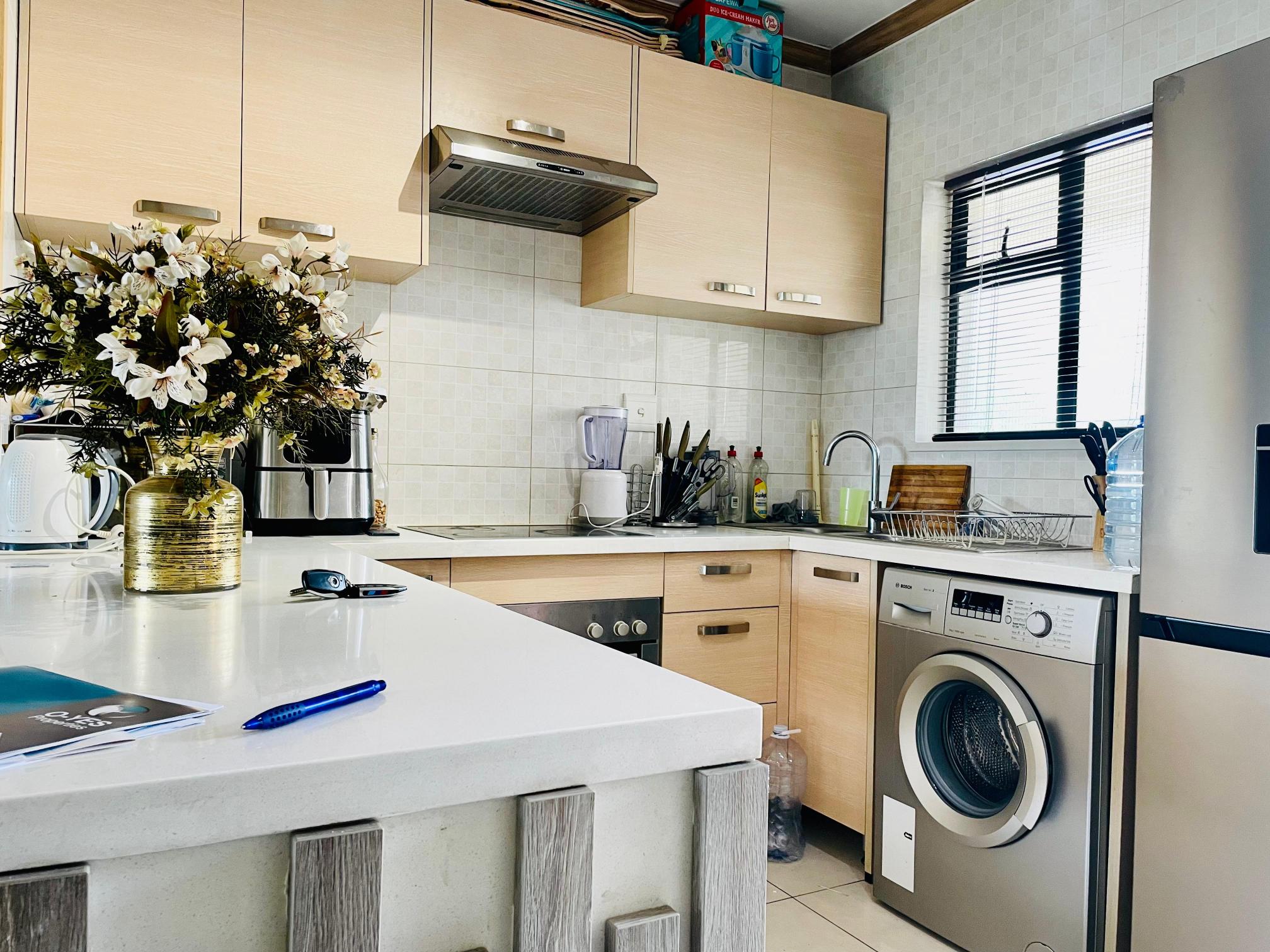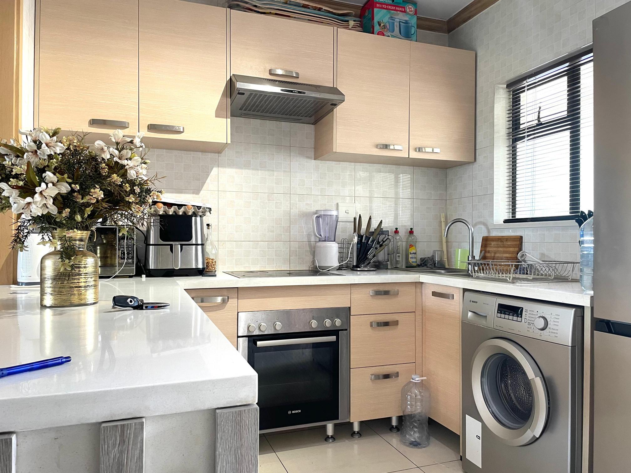 This exquisite first-floor apartment features a contemporary open-plan design, seamlessly integrating the kitchen and lounge. Situated in the secure biometric access community of Groveacres Estate Broadacres, Fourways, this property is perfect for modern living.