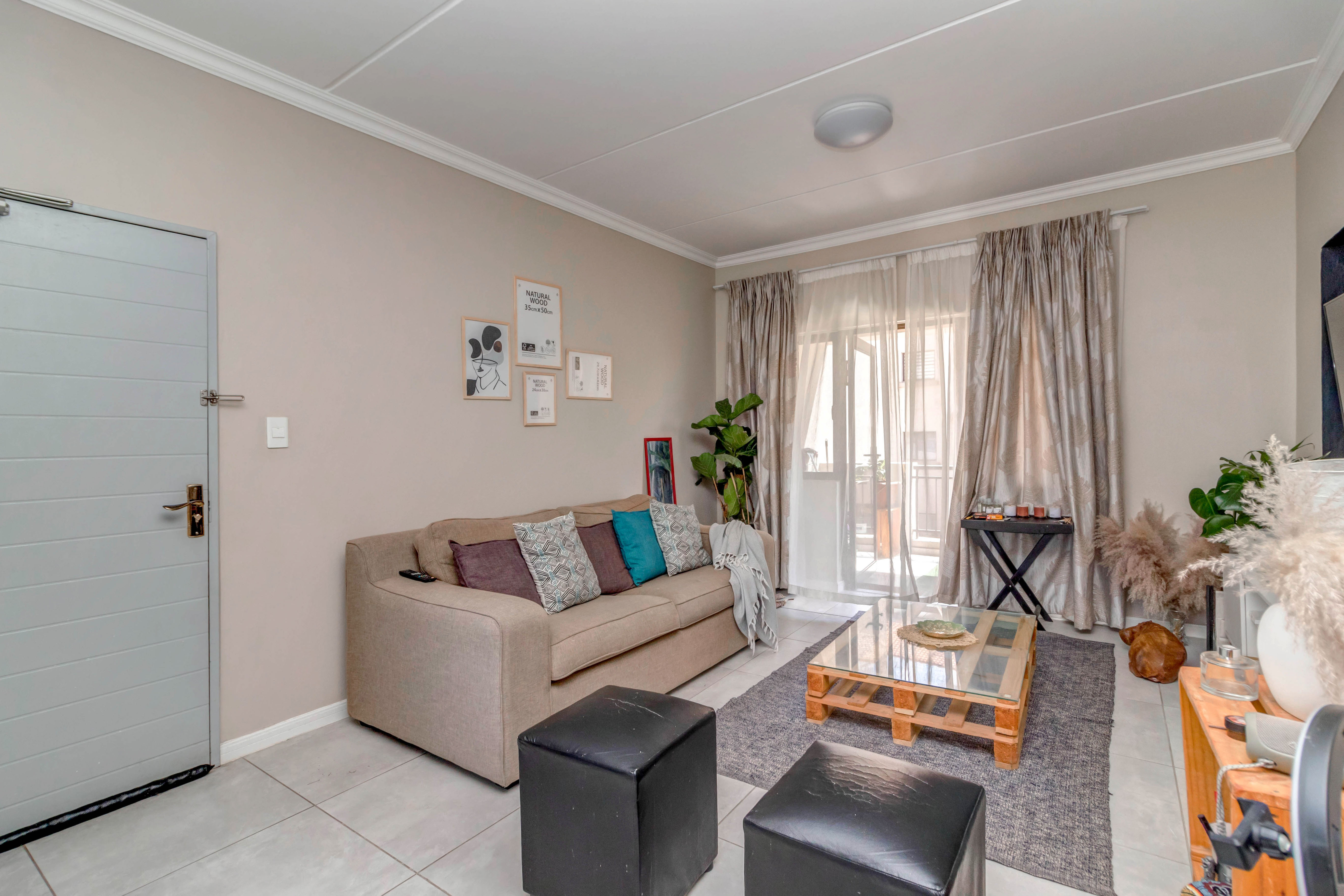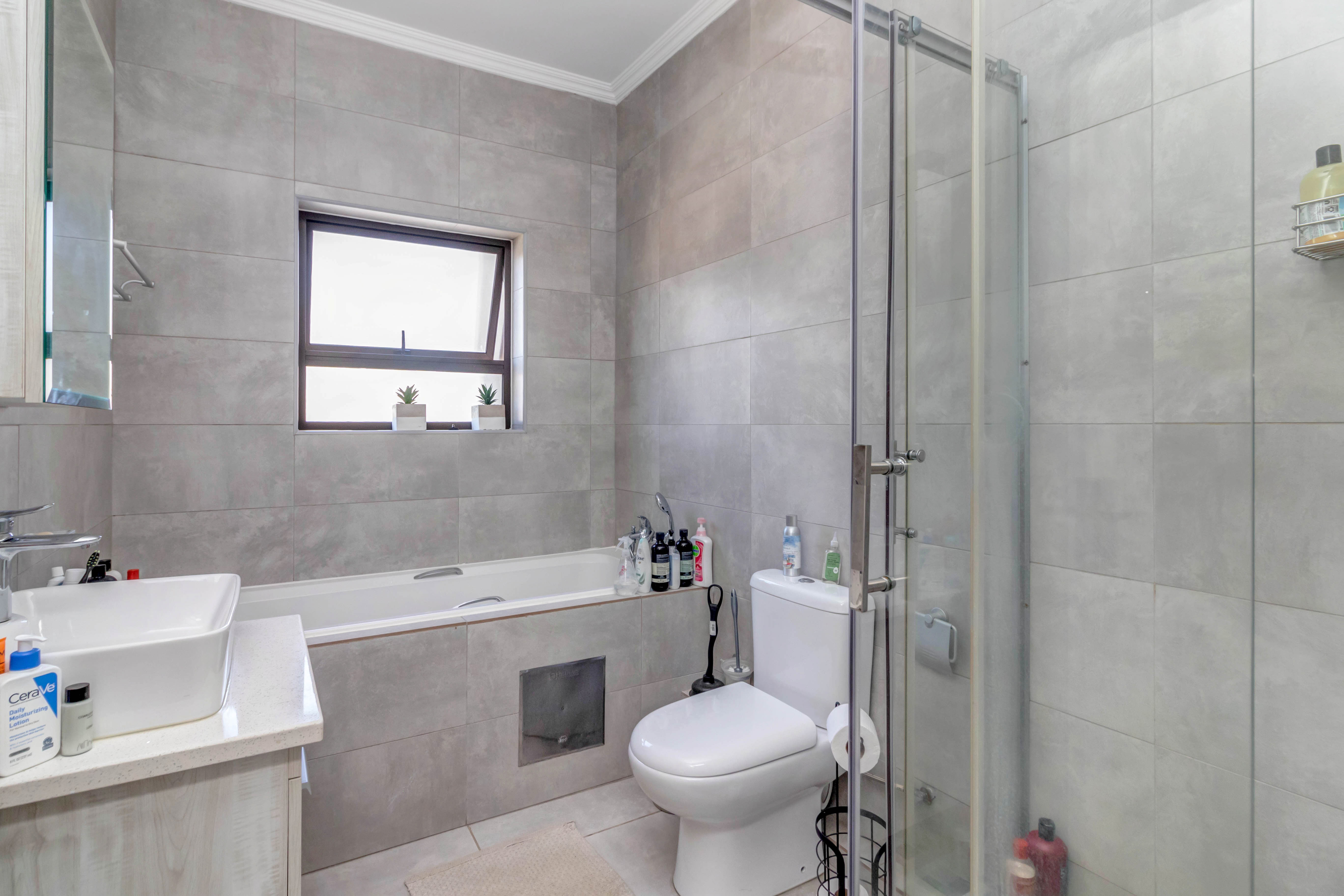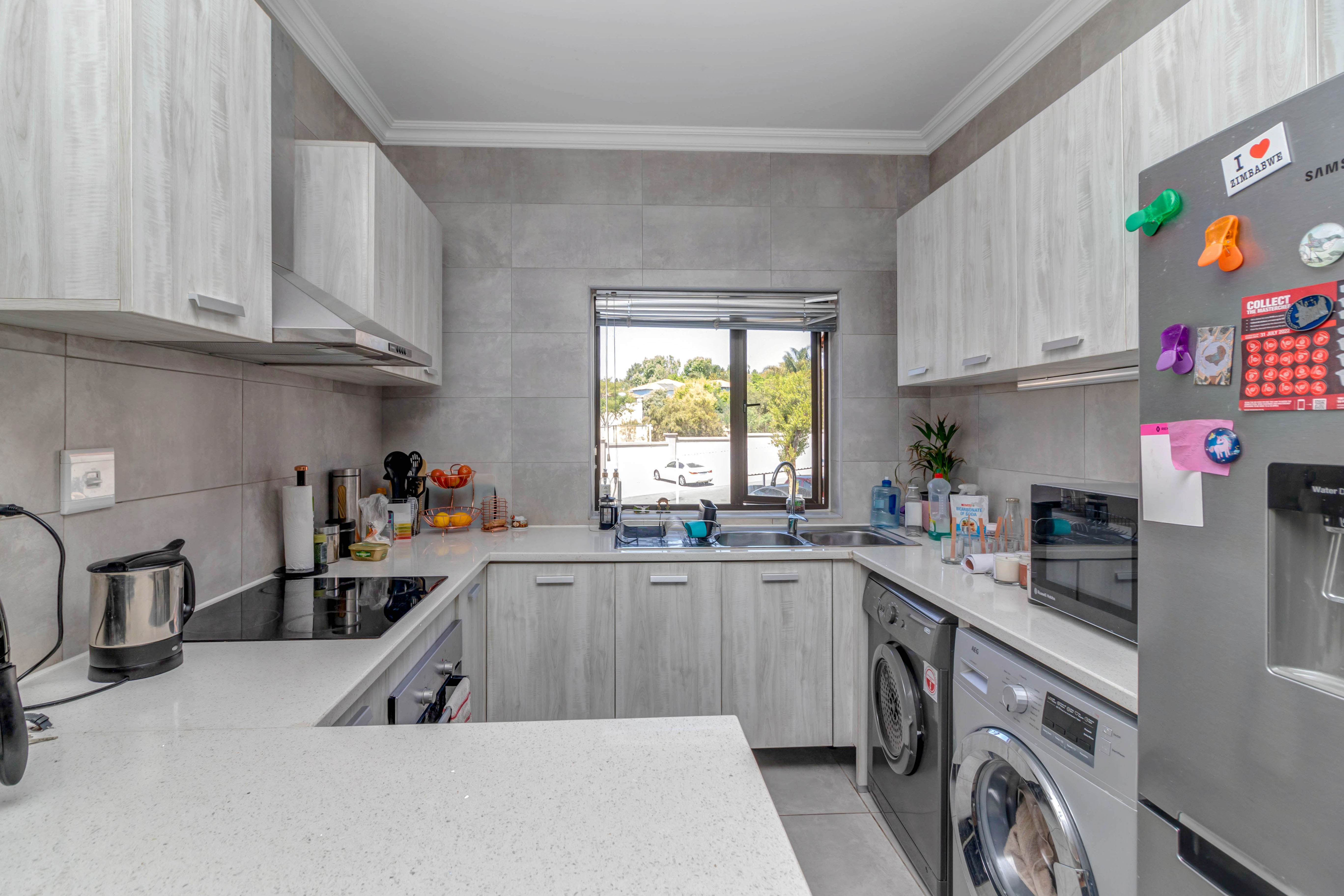 Priced to sell! NO TRANSFER DUTY! Upmarket 2 bedroom, 1 bathroom apartment with top finishes, featuring: Open plan, fitted kitchen with Caesar Stone countertops and breakfast bar. Space for 2 appliances. Sizeable, open plan, lounge/dining room leading to balcony. 2 well-sized bedrooms both with built-in cupboards. 1 full bathroom with bath and separate shower. Extras include 24-hour security, 2 parking bays (1 undercover) well well-maintained communal gardens, clubhouse, swimming pool. Well located in the new Fourways Precinct, close to many top schools, Life Fourways Hospital, Fourways Mall, Broadacres Shopping Centre, Lanseria International Airport and major routes.