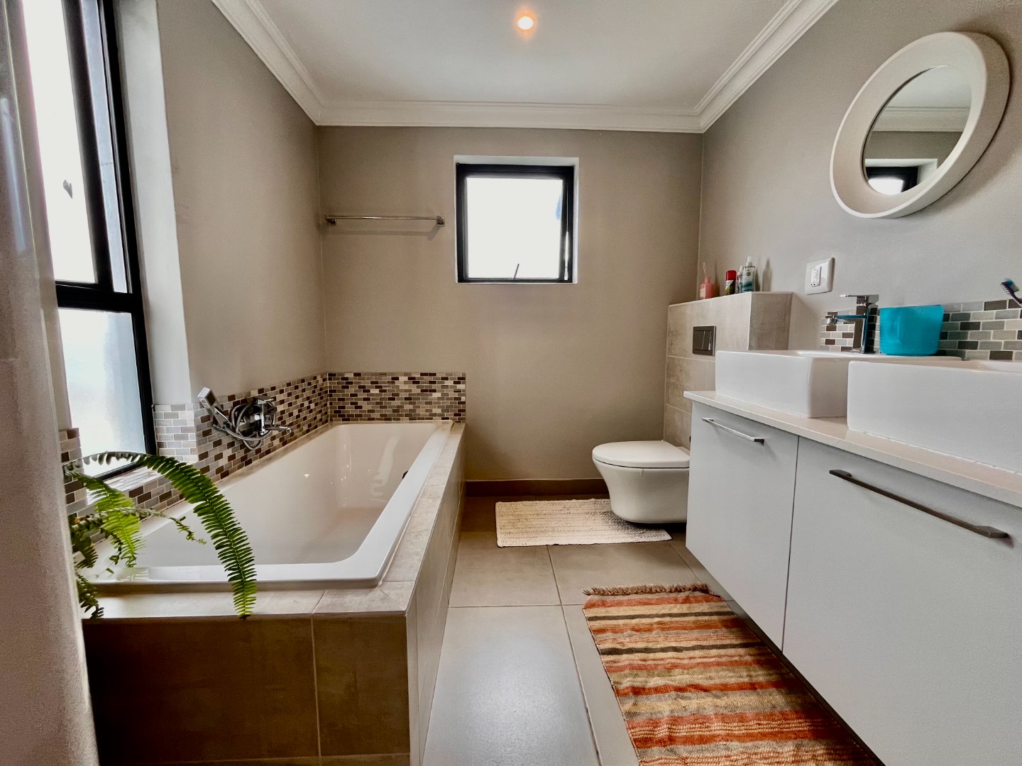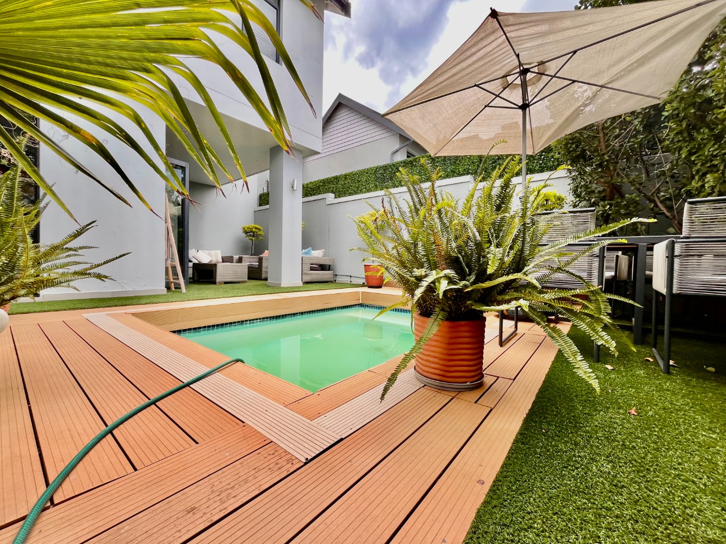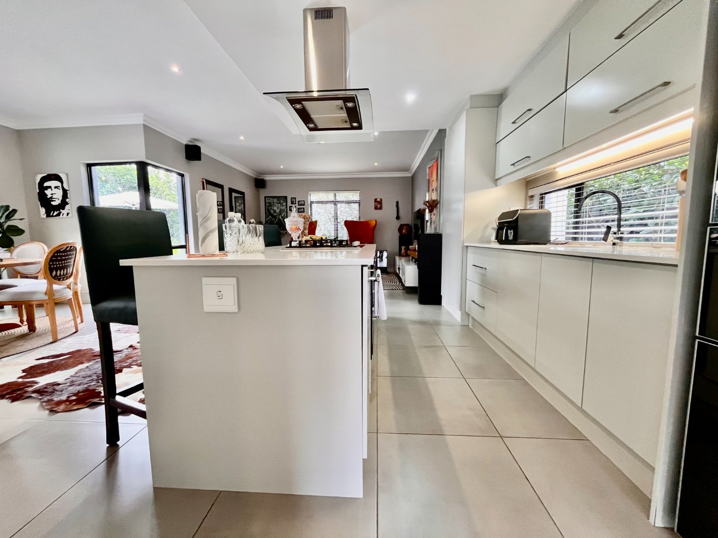 As you enter, you’re greeted by a double garage that leads directly into the home. The open-plan living area boasts elegant finishes and a bright, contemporary feel. The lounge flows seamlessly onto a covered patio with a built-in braai — the ideal space for entertaining family and friends. Step outside to your own private garden and sparkling pool, offering the perfect balance of relaxation and style.