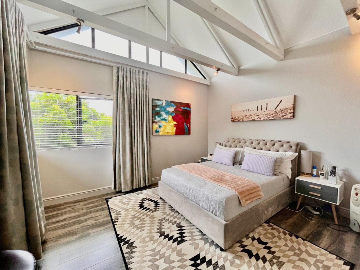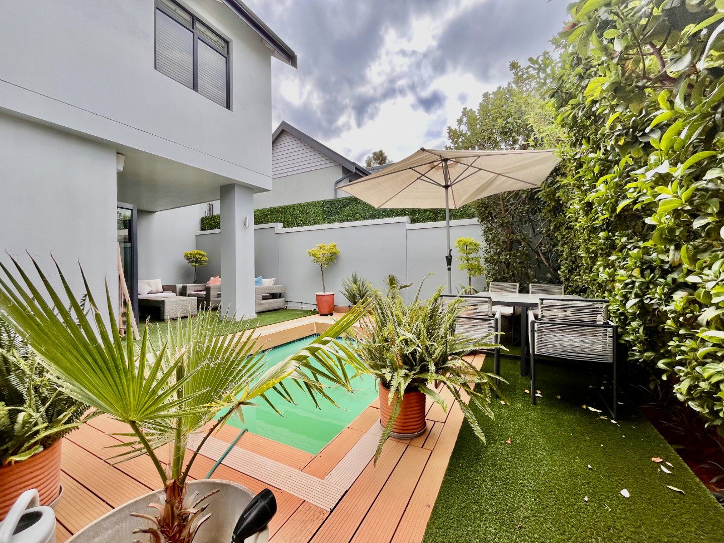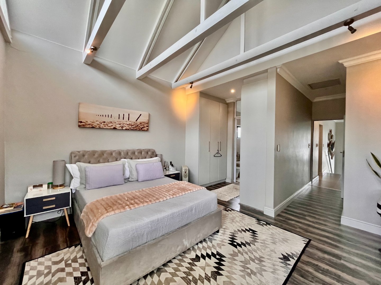 As you enter, you’re greeted by a double garage that leads directly into the home. The open-plan living area boasts elegant finishes and a bright, contemporary feel. The lounge flows seamlessly onto a covered patio with a built-in braai — the ideal space for entertaining family and friends. Step outside to your own private garden and sparkling pool, offering the perfect balance of relaxation and style.