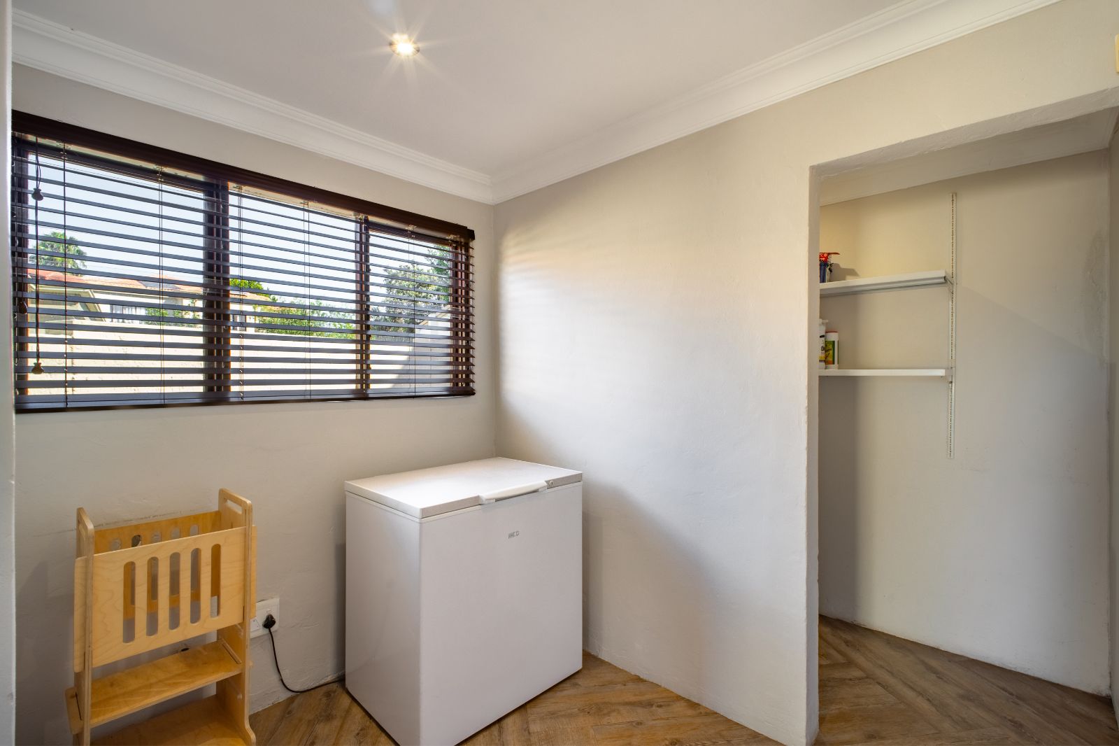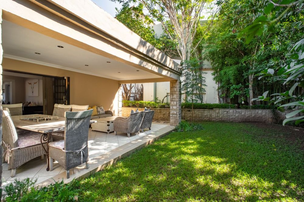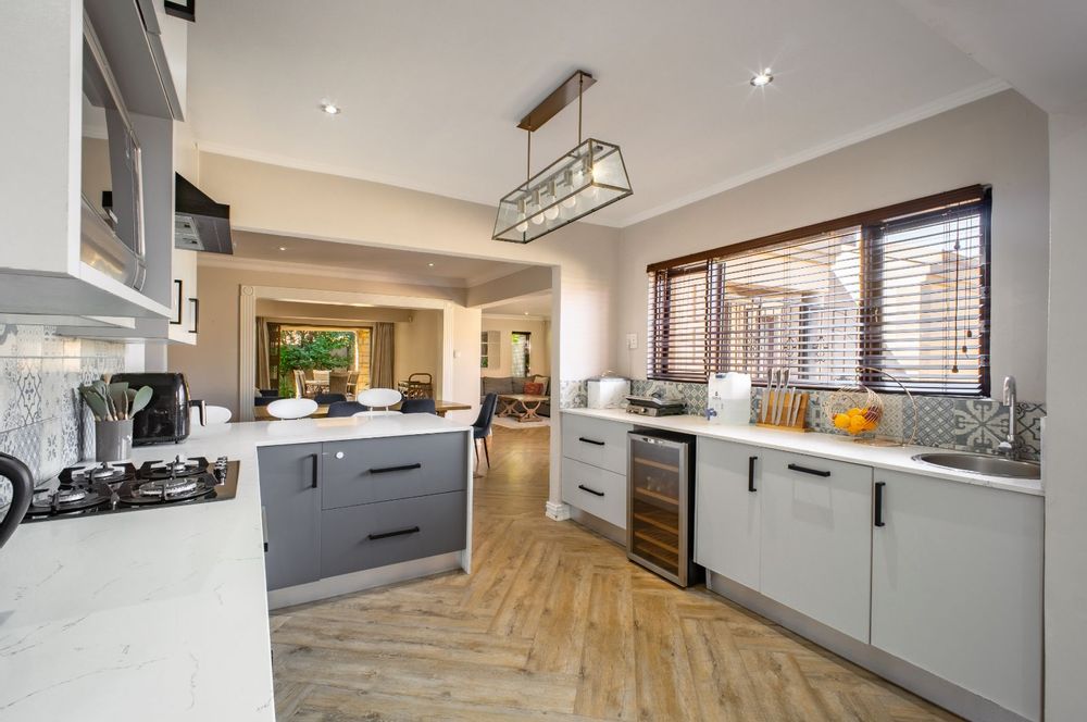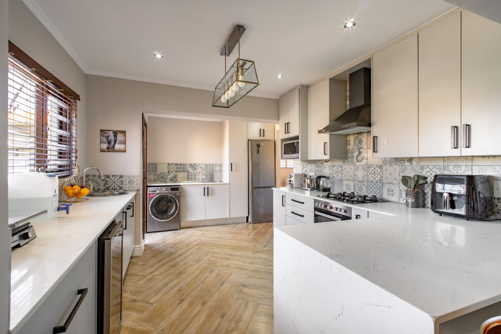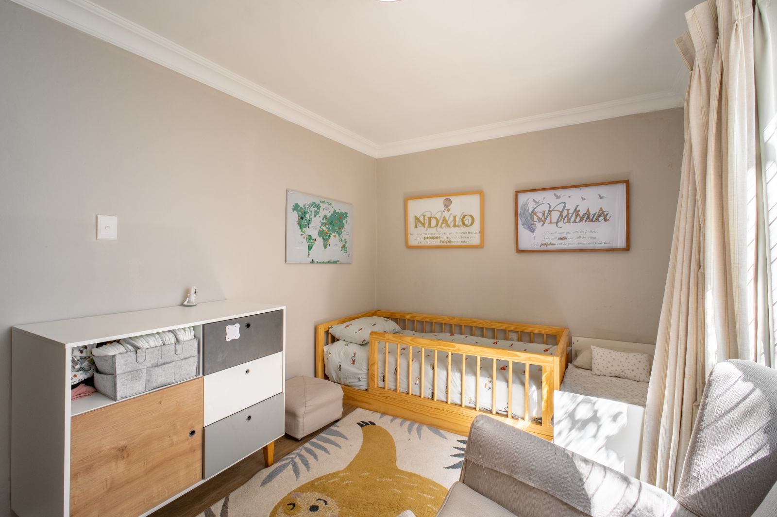 Large sliding doors lead out to a covered patio, where you can enjoy quiet mornings or weekend braais, all while overlooking the private garden—a perfect play area for kids or pets.