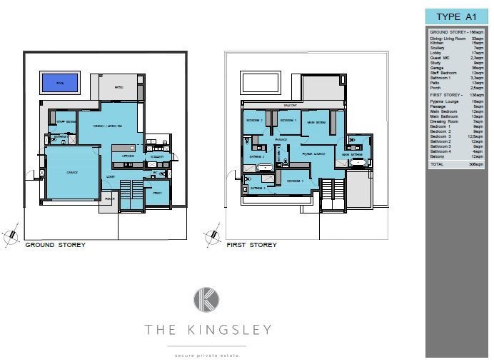The ground floor boasts spacious living areas, which include a covered patio, study, guest suite or domestic quarters, and a double garage. Upstairs, you'll find a cozy pajama lounge accompanied by 3 or 4 bedrooms.