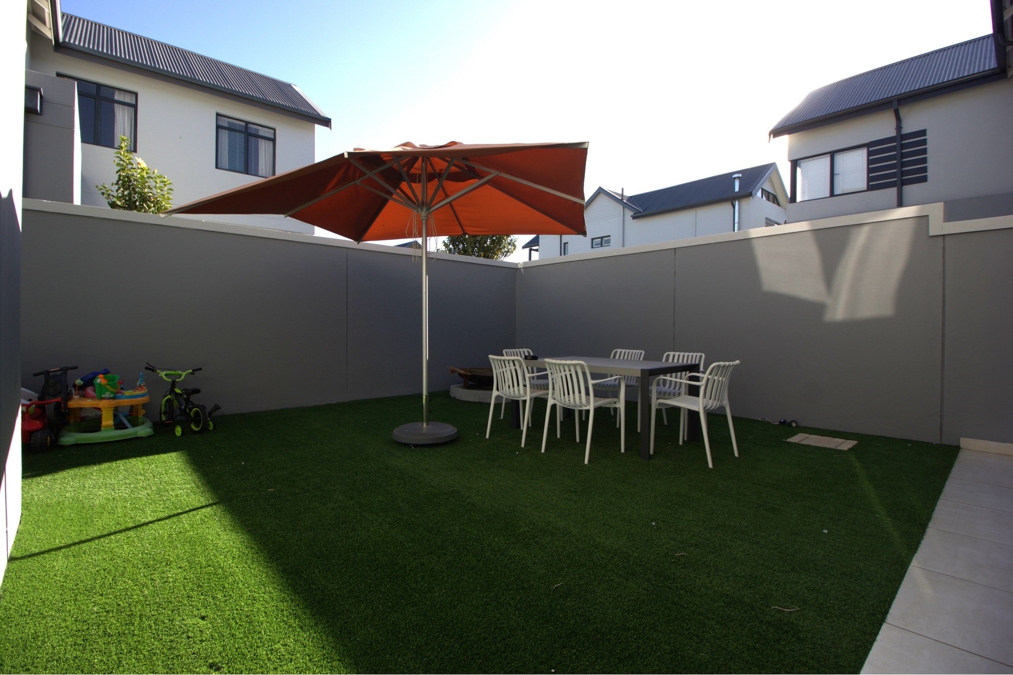 Step outside to your private oasis featuring a large covered patio, where you can enjoy a braai with family and friends. The whole yard is layered with good quality turf for outdoor relaxation and enjoyment, very easy to maintain. The Estate has a sparkling pool and playground for additional recreational space for children and guests. The 2-car garage with an automatic door provides secure parking and storage solutions.
