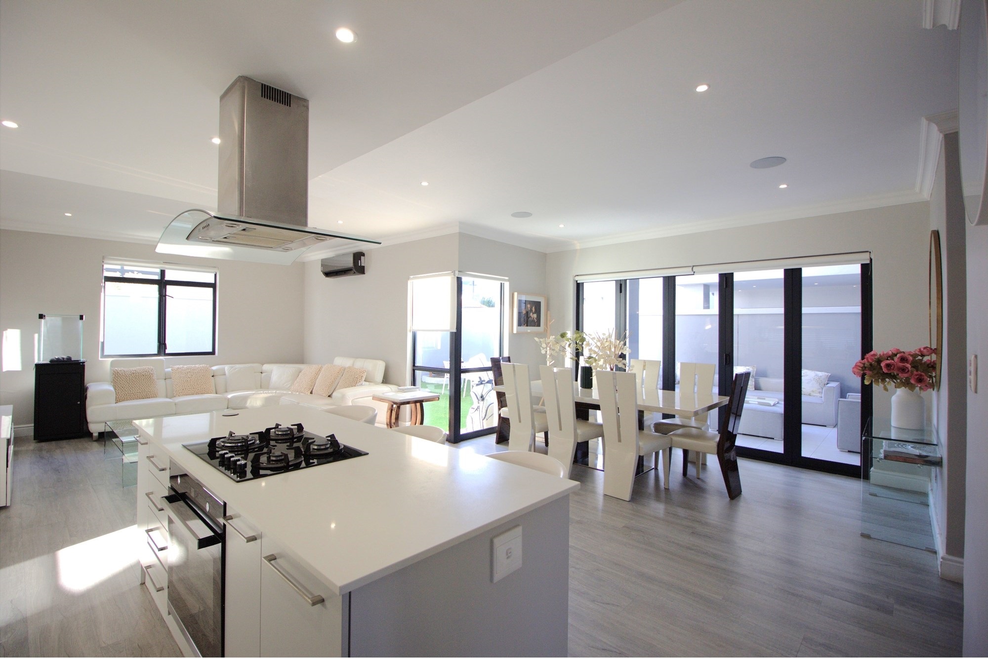 On entering, you are greeted by an airy open living space, comprising of the bright kitchen flowing onto the dining and living area. The spacious interior features 3.5 elegantly designed bathrooms, including en-suite master bathroom, and en-suite guest bathroom. allowing for privacy and convenience. Each bedroom is equipped with built-in closets, providing ample storage space. You’ll love the bright, open-concept living areas, with aluminum windows and sliding door, bringing in natural light and fostering a warm atmosphere. The modern kitchen, highlighted by a gas stove and a spacious island for your breakfast on the go. The space is perfect for cooking and entertaining.
