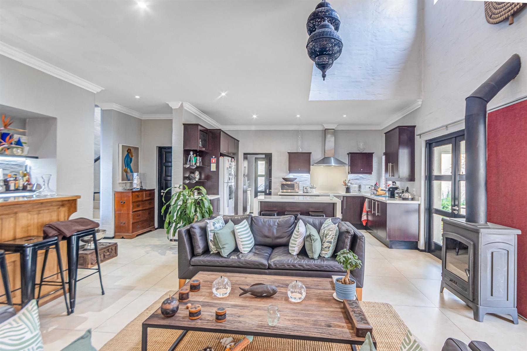 At the heart of the home lies a beautifully appointed gourmet kitchen, boasting Caesarstone countertops, a central island, coffee station, prep sink, and a separate scullery — catering to every culinary need with ease and elegance.