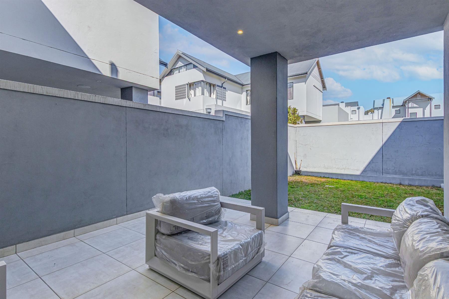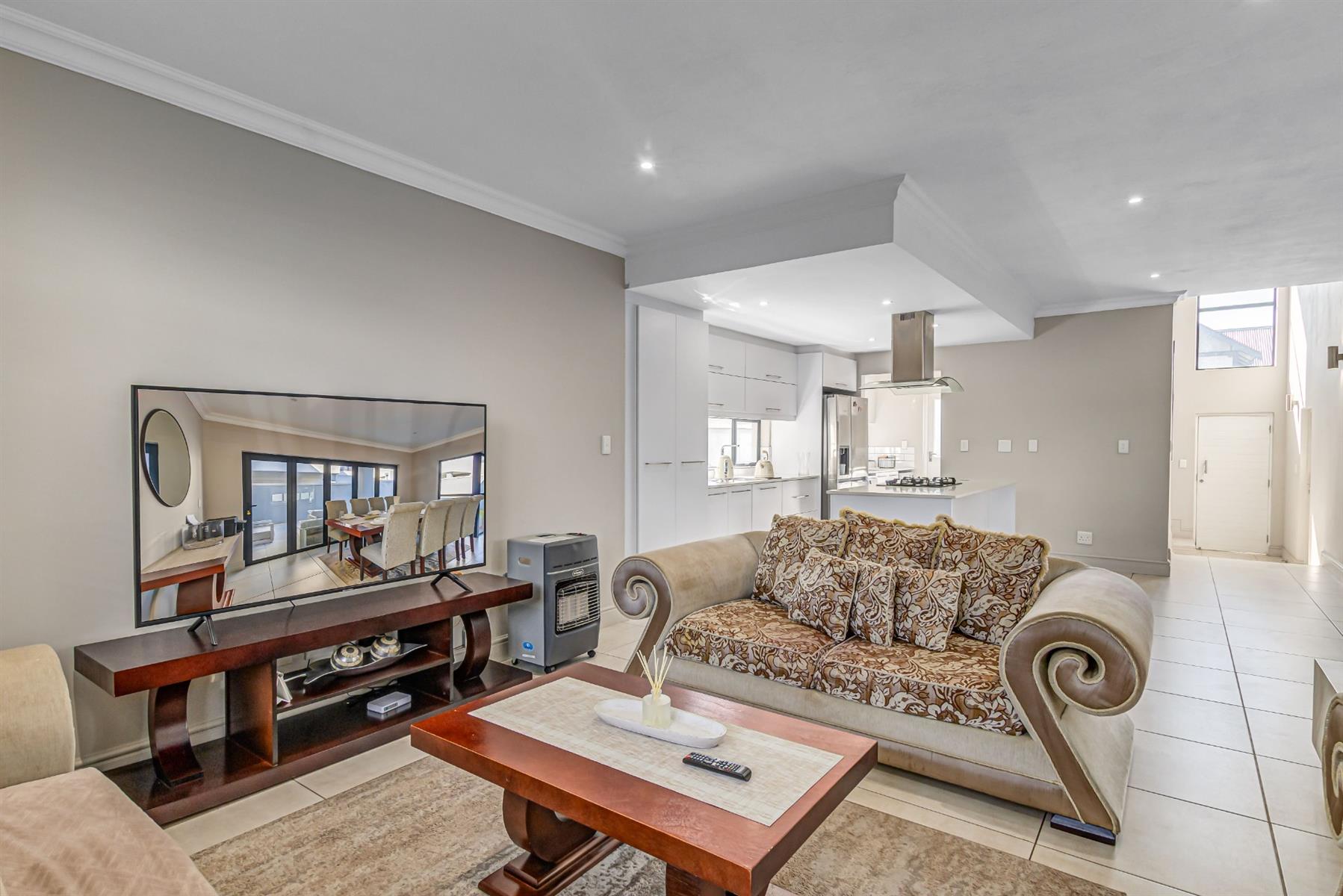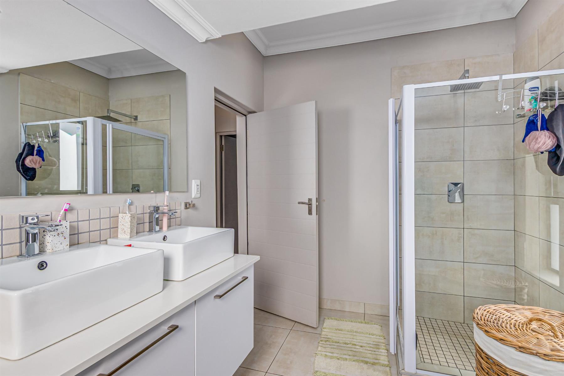 Glass stacking doors from the dining area open to a covered patio with built-in braai, ideal for year-round entertaining, all while overlooking a landscaped garden – perfect for kids, pets, or weekend relaxation. A guest cloakroom and a double garage with direct access into the home complete the ground level.