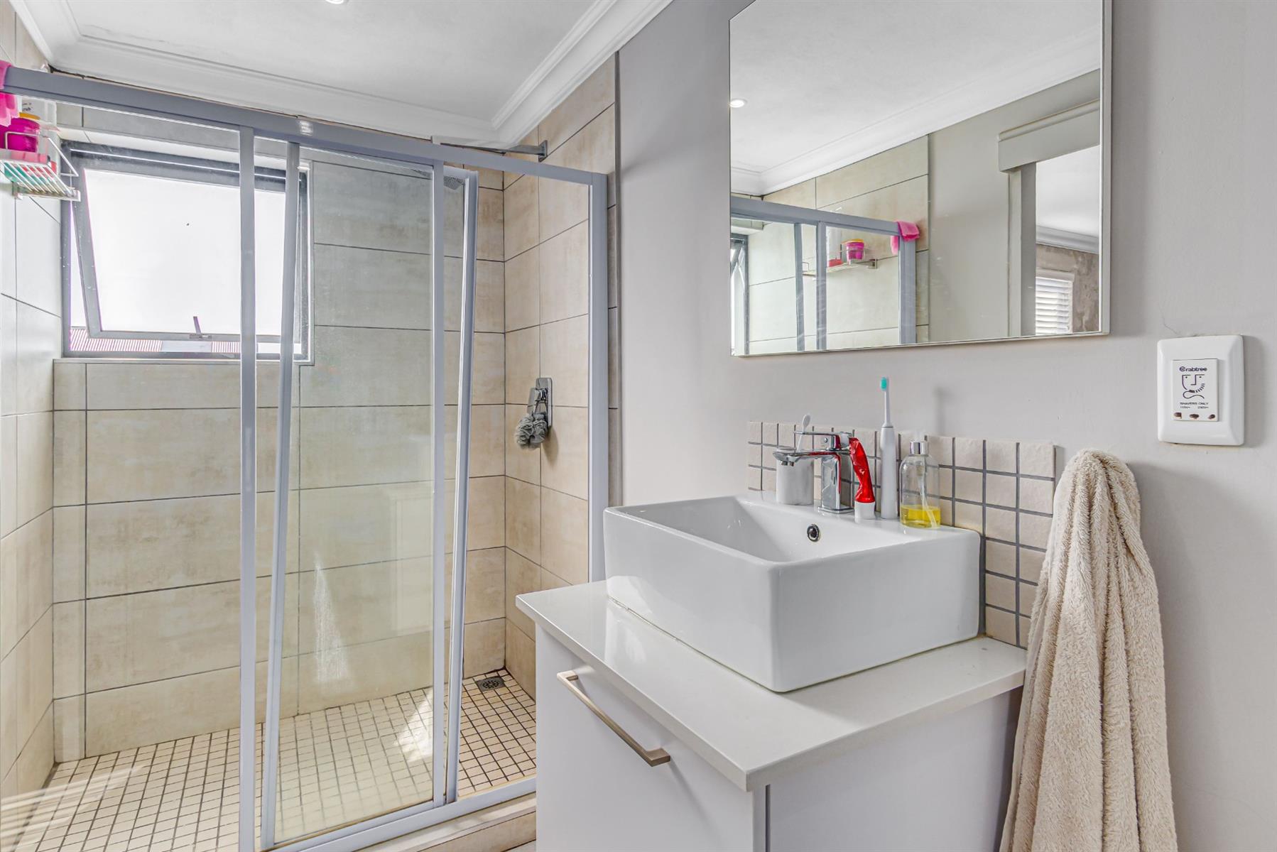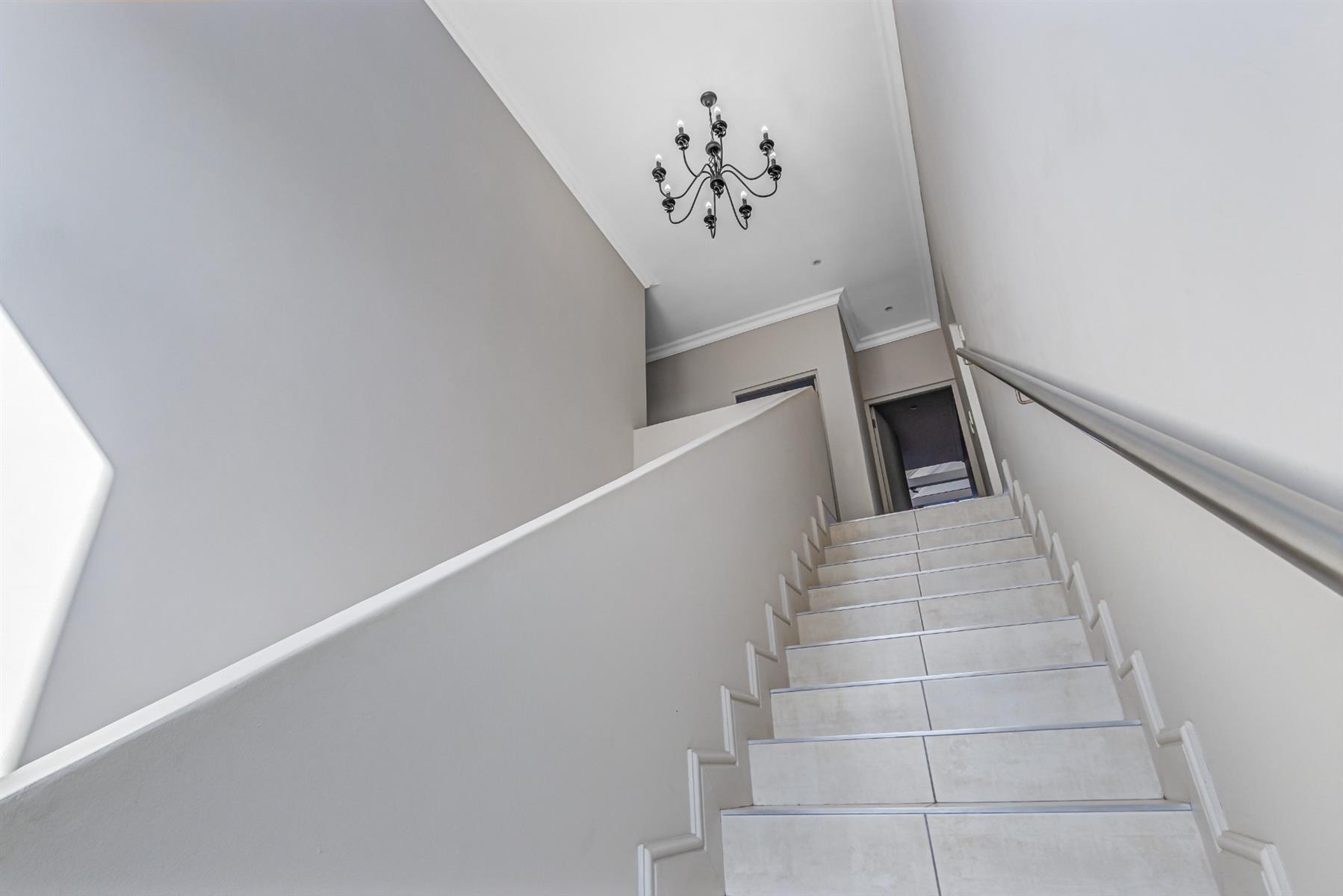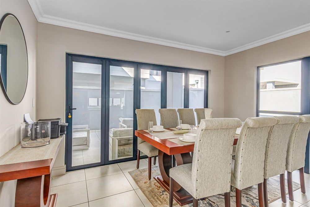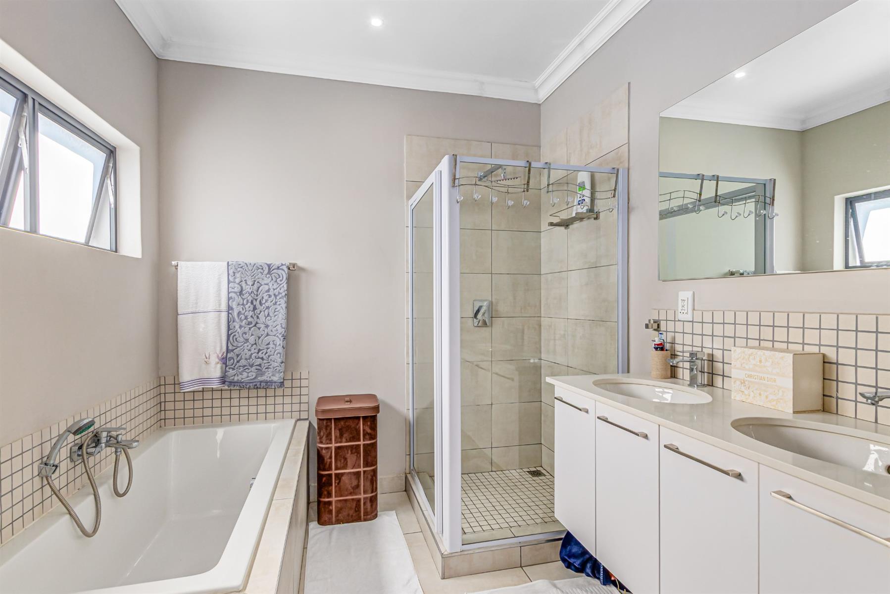 Glass stacking doors from the dining area open to a covered patio with built-in braai, ideal for year-round entertaining, all while overlooking a landscaped garden – perfect for kids, pets, or weekend relaxation. A guest cloakroom and a double garage with direct access into the home complete the ground level.