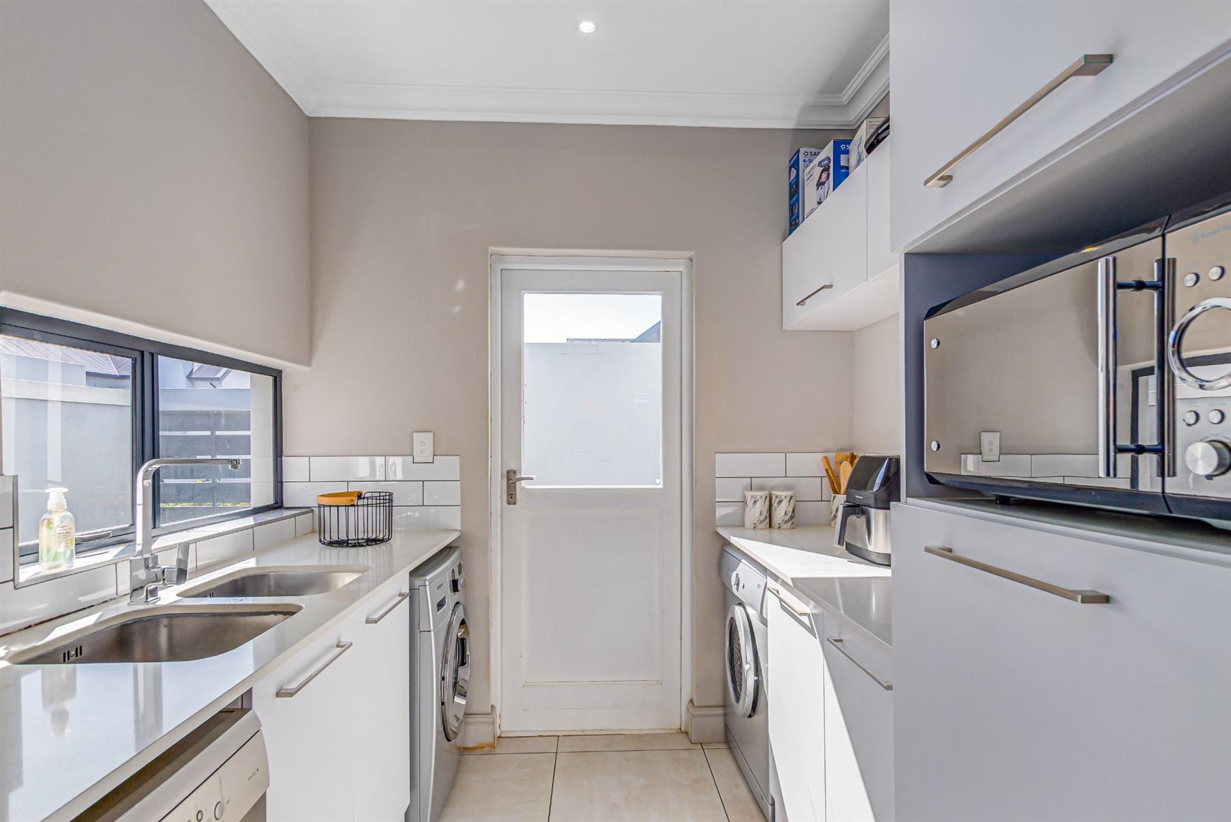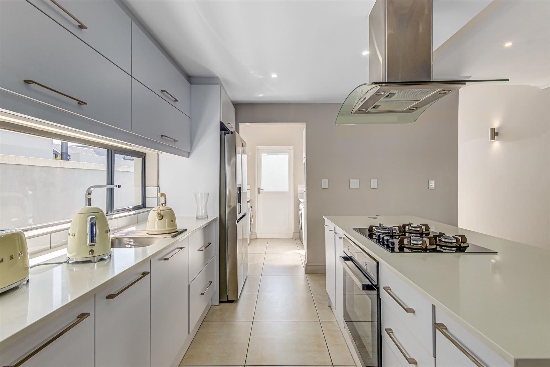 Designed for modern lifestyles, this home features open, light-filled interiors with sleek tiling and seamless indoor-outdoor flow. The spacious lounge connects effortlessly to the dining area and designer kitchen – the heart of the home – showcasing Caesarstone countertops, ample cabinetry, a prep basin, and a striking centre island with gas hob, extractor fan, and under-counter oven. There’s also space for a double-door fridge, while the separate scullery accommodates three under-counter appliances and leads to a private courtyard.
