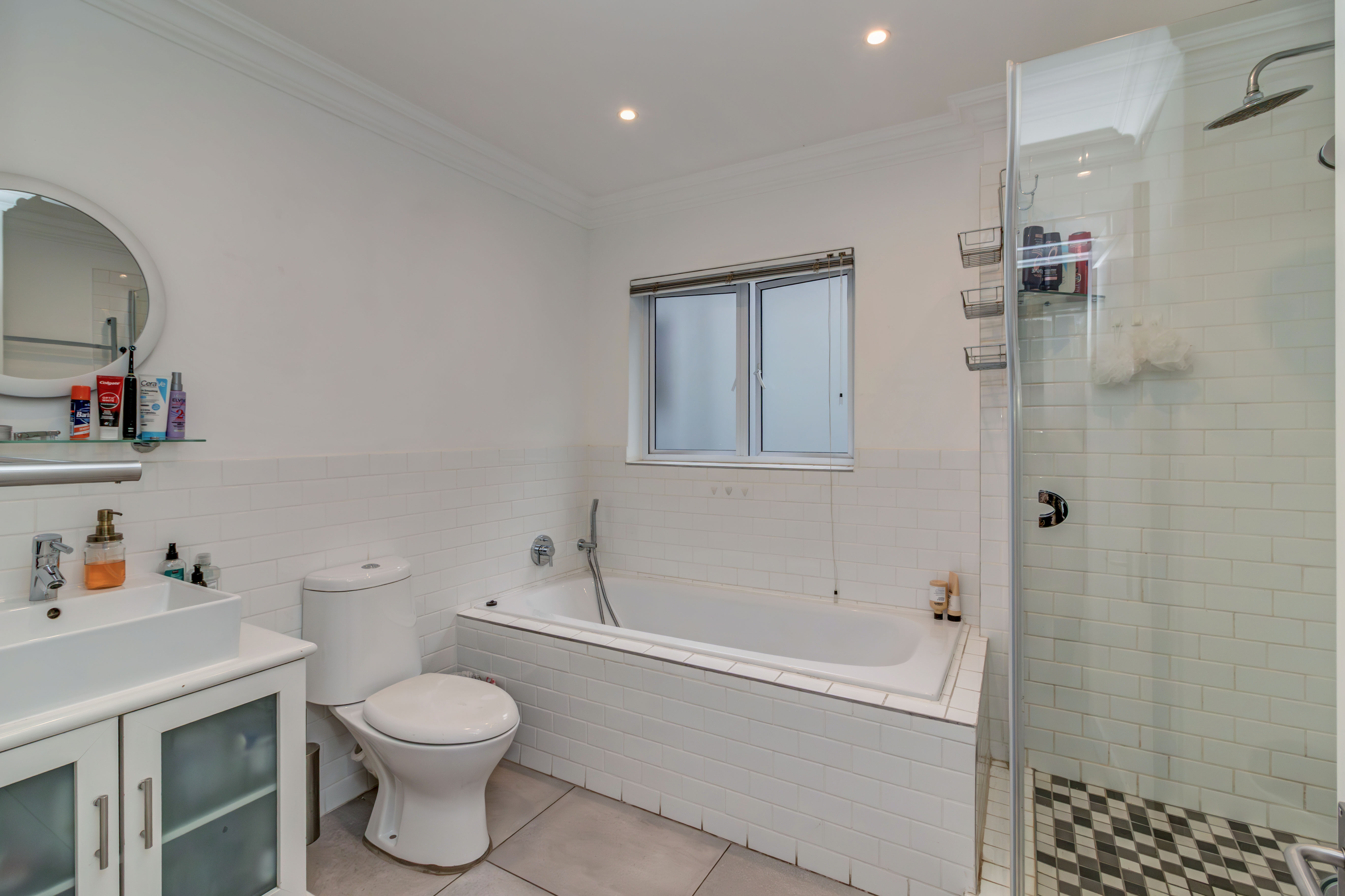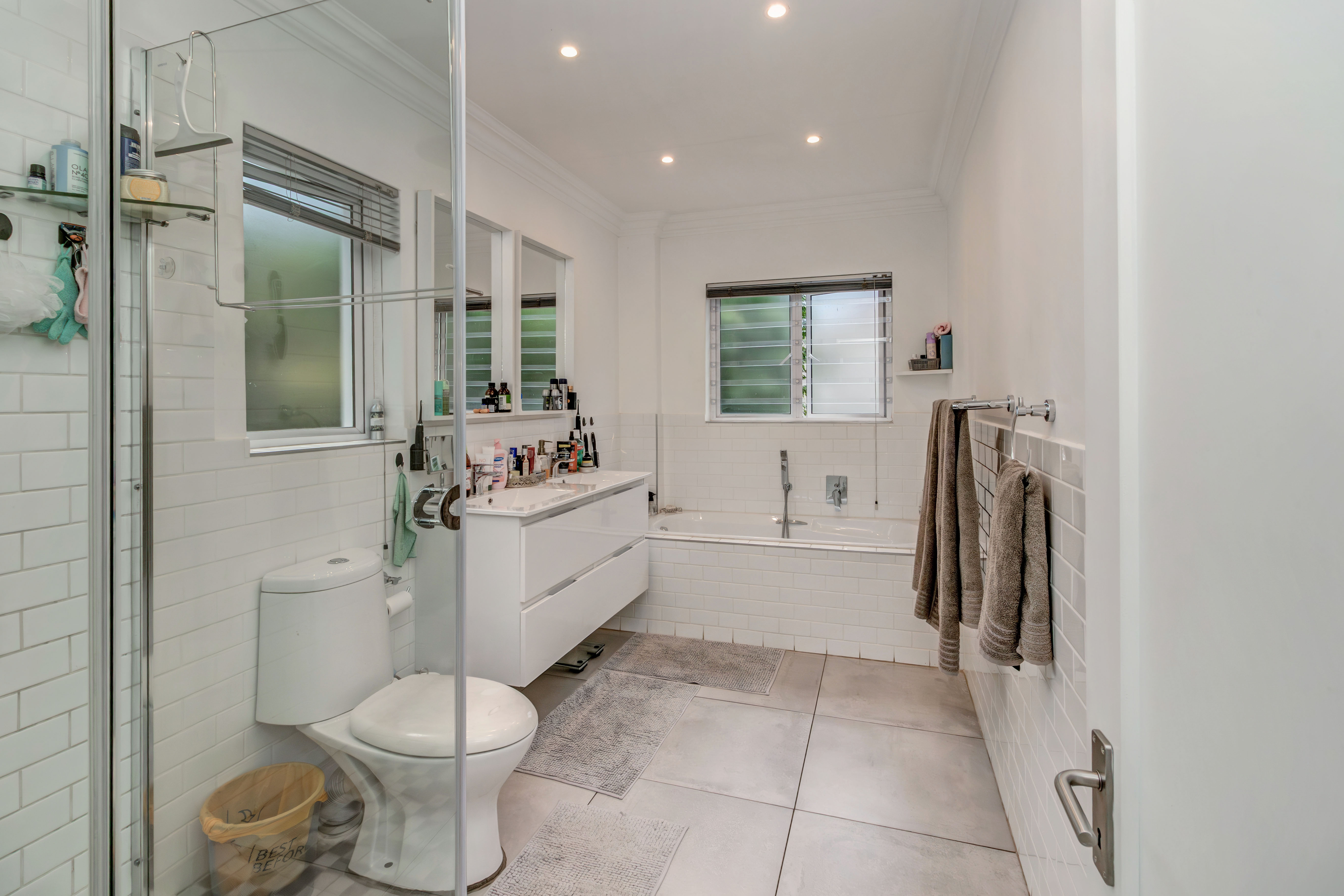 Sustainability is key, with an 11kVA inverter system, 12 solar panels, and four batteries to power the home efficiently. A 10,000L JoJo tank collects stormwater for the garden, pool, and outdoor shower, and an irrigation system keeps the garden lush. The home also has three geysers, including one solar-powered, to reduce energy use and utility costs.