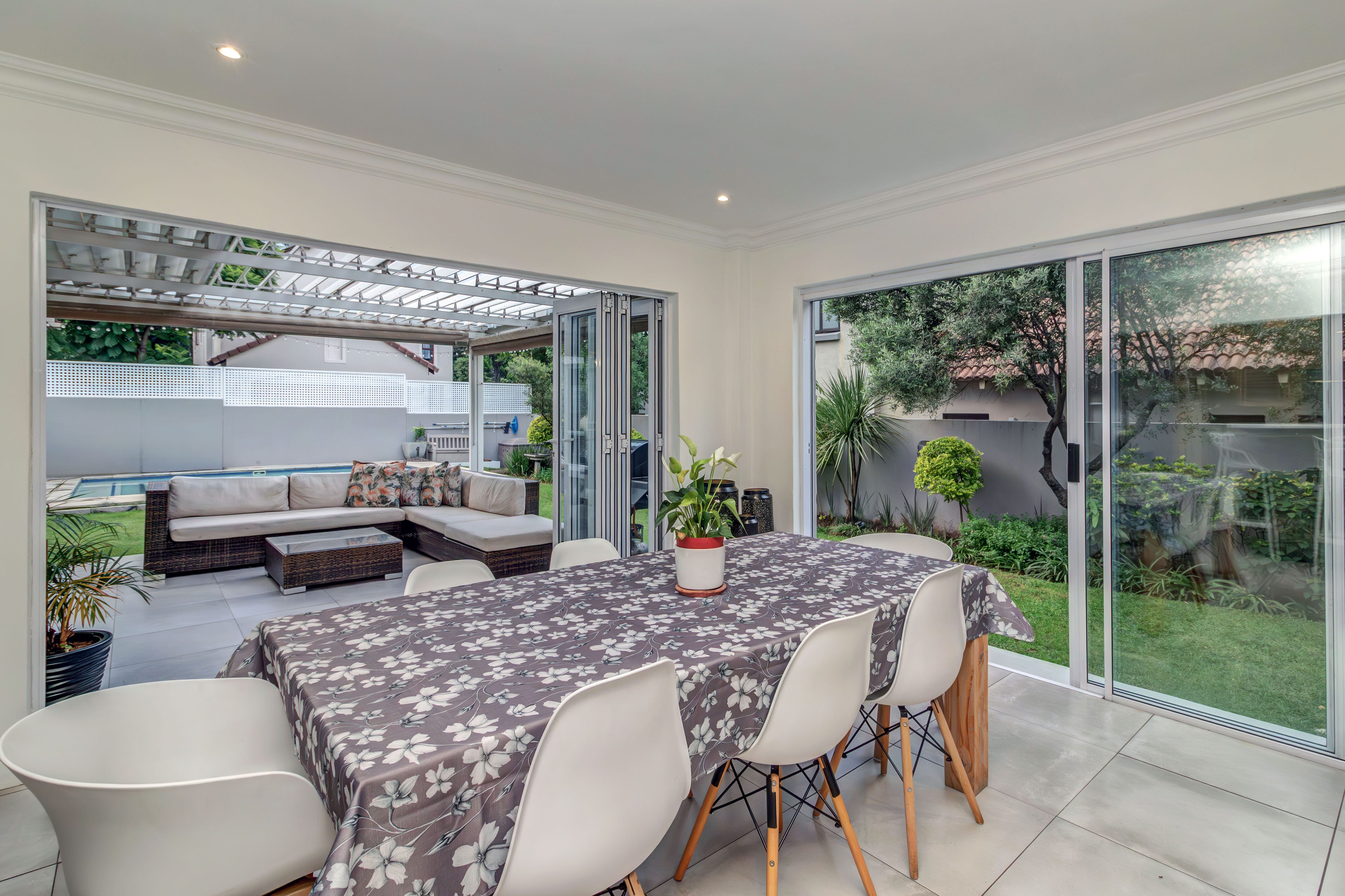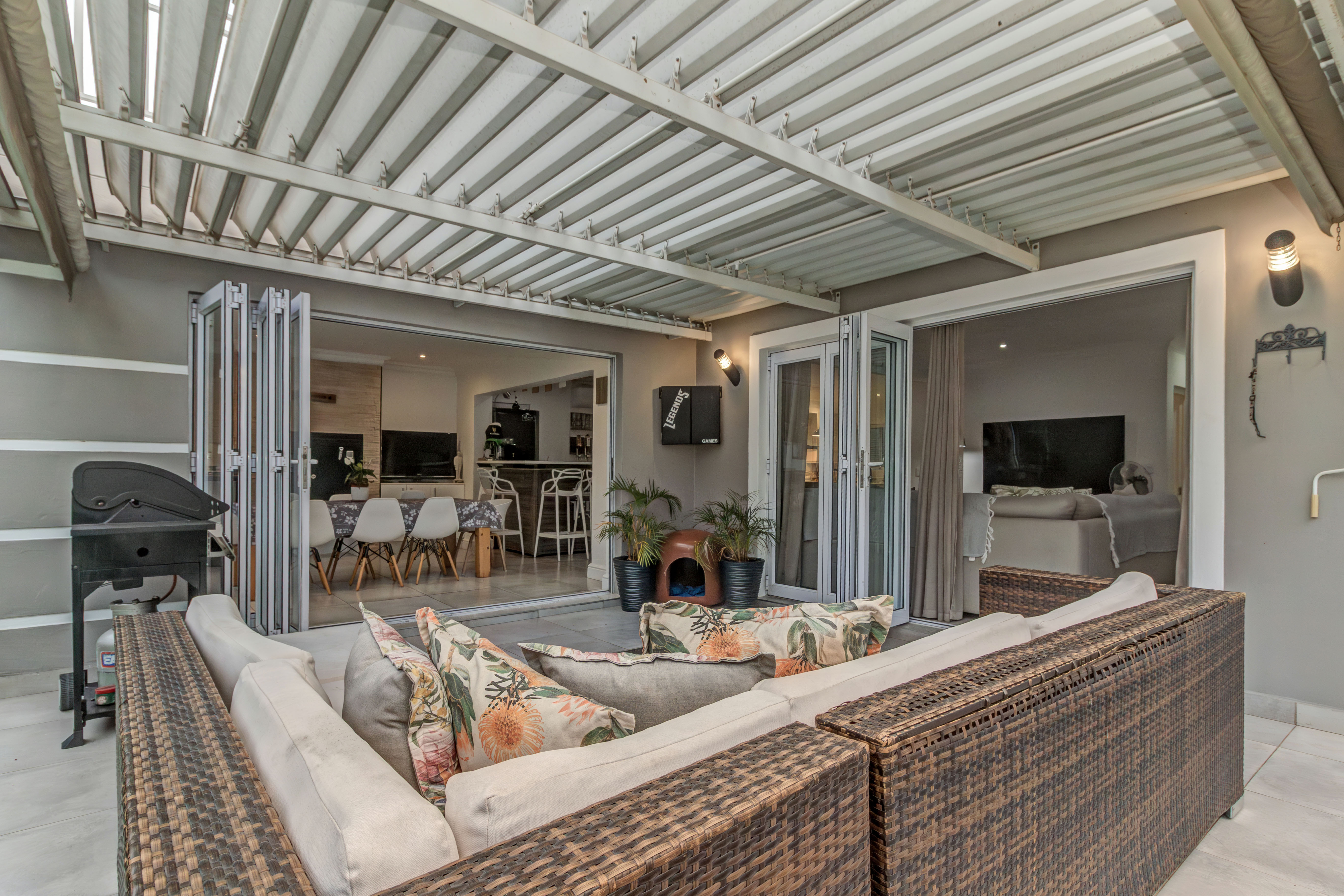 Located on a sizeable stand in the sought-after Broadacres Country Estate, this eco-friendly home blends modern design with luxury and sustainability. Perfect for family living and entertaining, the spacious open-plan layout includes a lounge, dining area, bar, and built-in braai with a pizza oven.