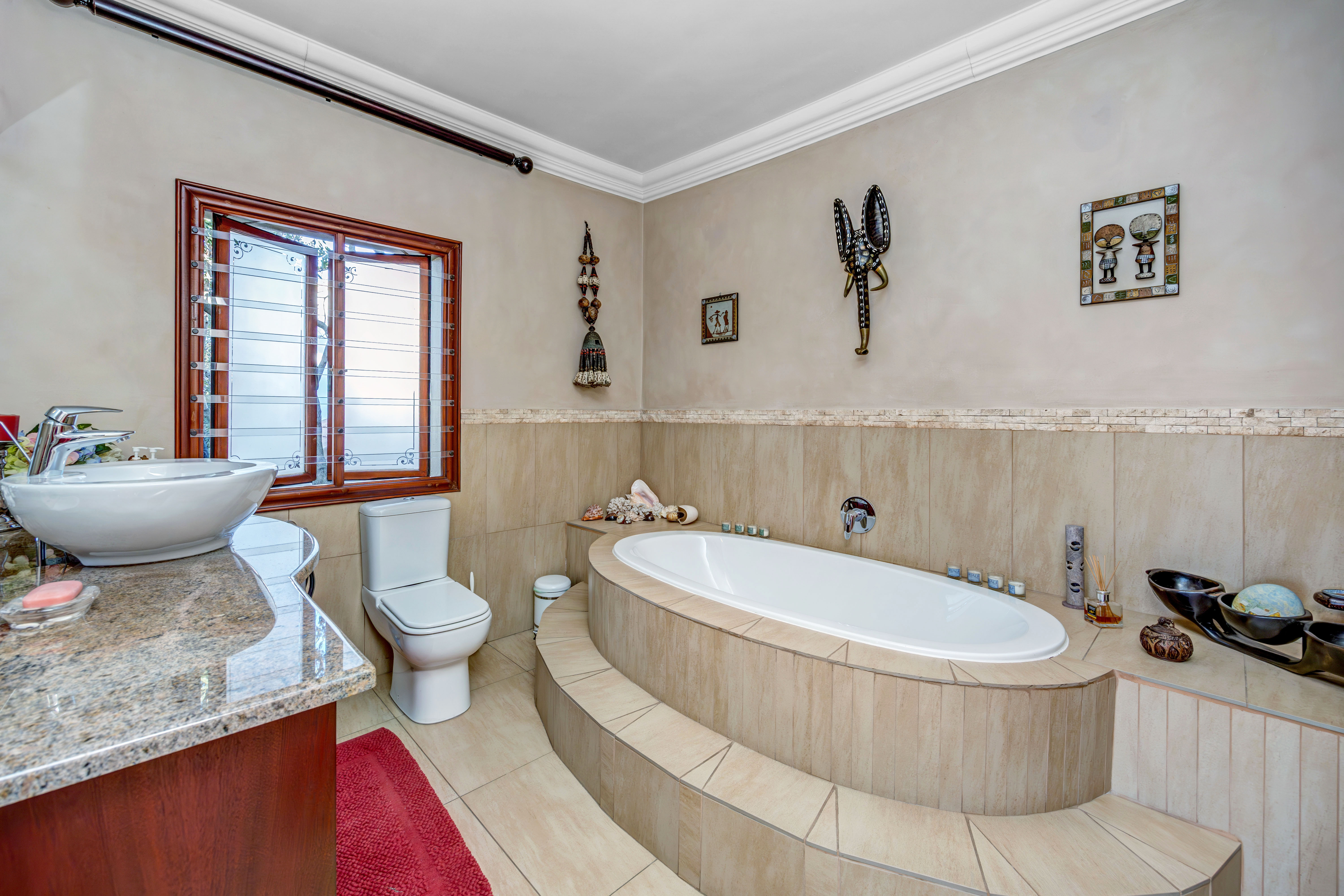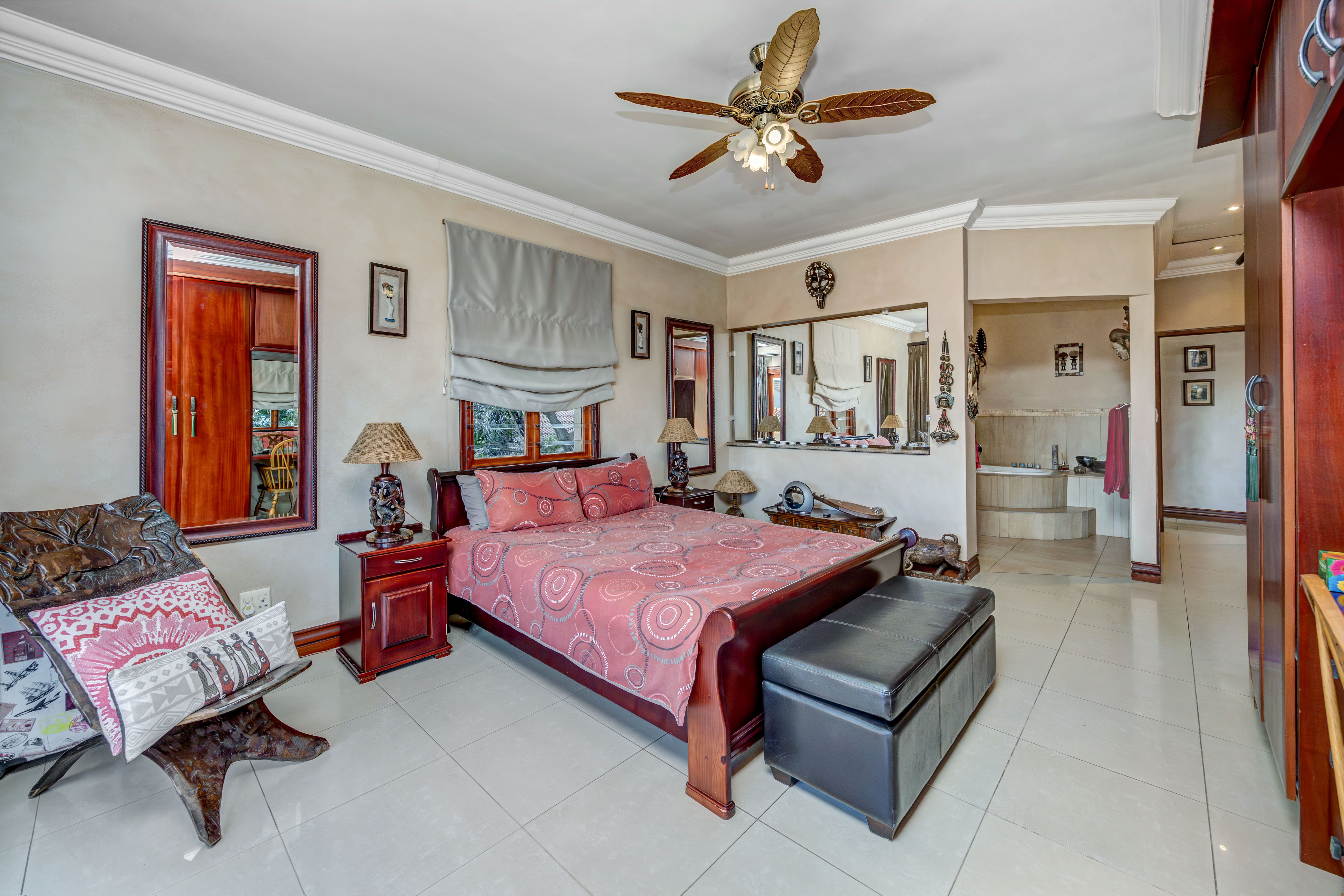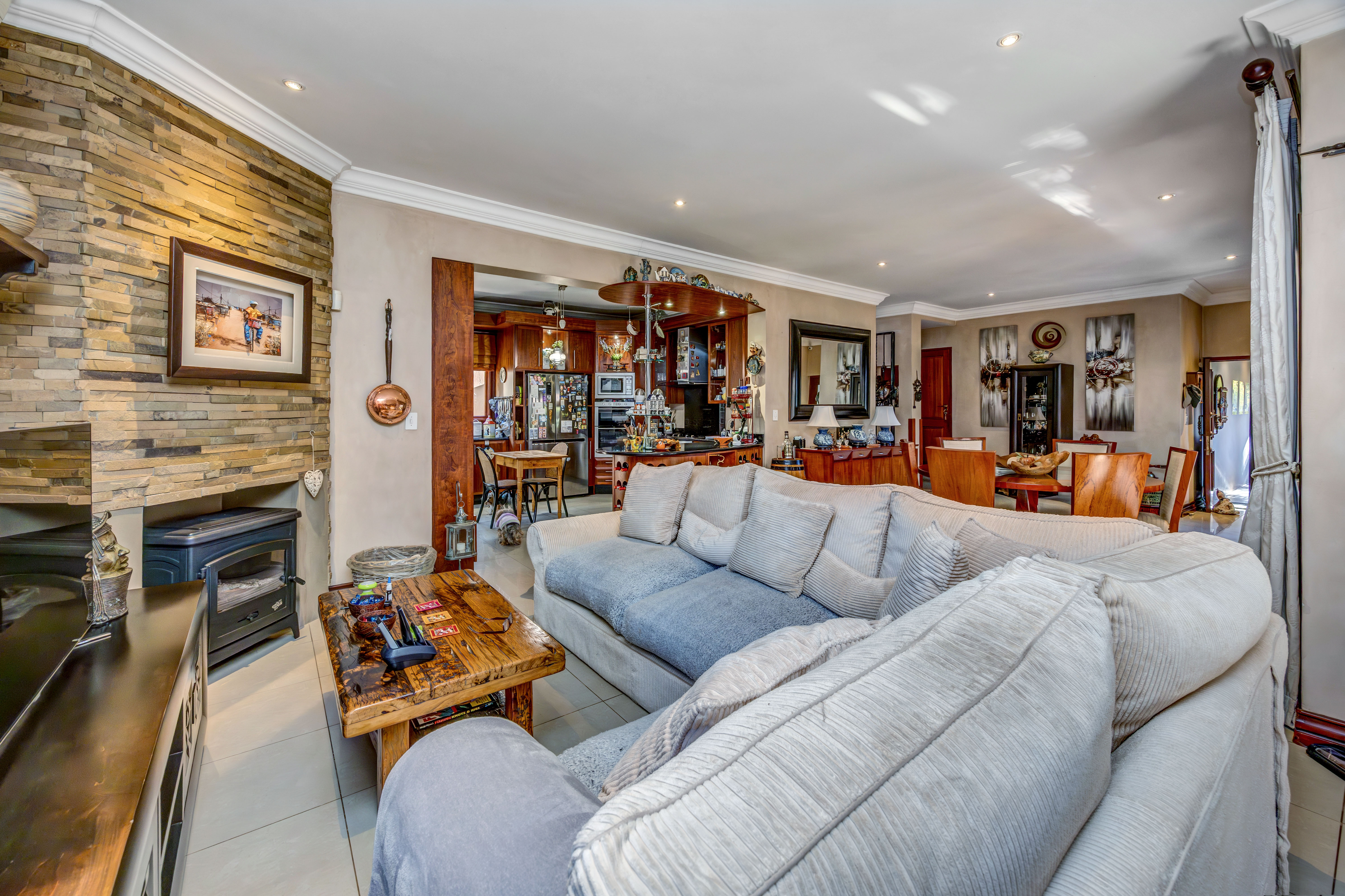 This off-the-grid home ensures uninterrupted power with 15 solar panels, an inverter system (two 8Kva batteries), 2 solar geysers, and a 2000-litre JoJo tank with pump. Other perks include automated irrigation, a home camera security system, and a double automated garage.