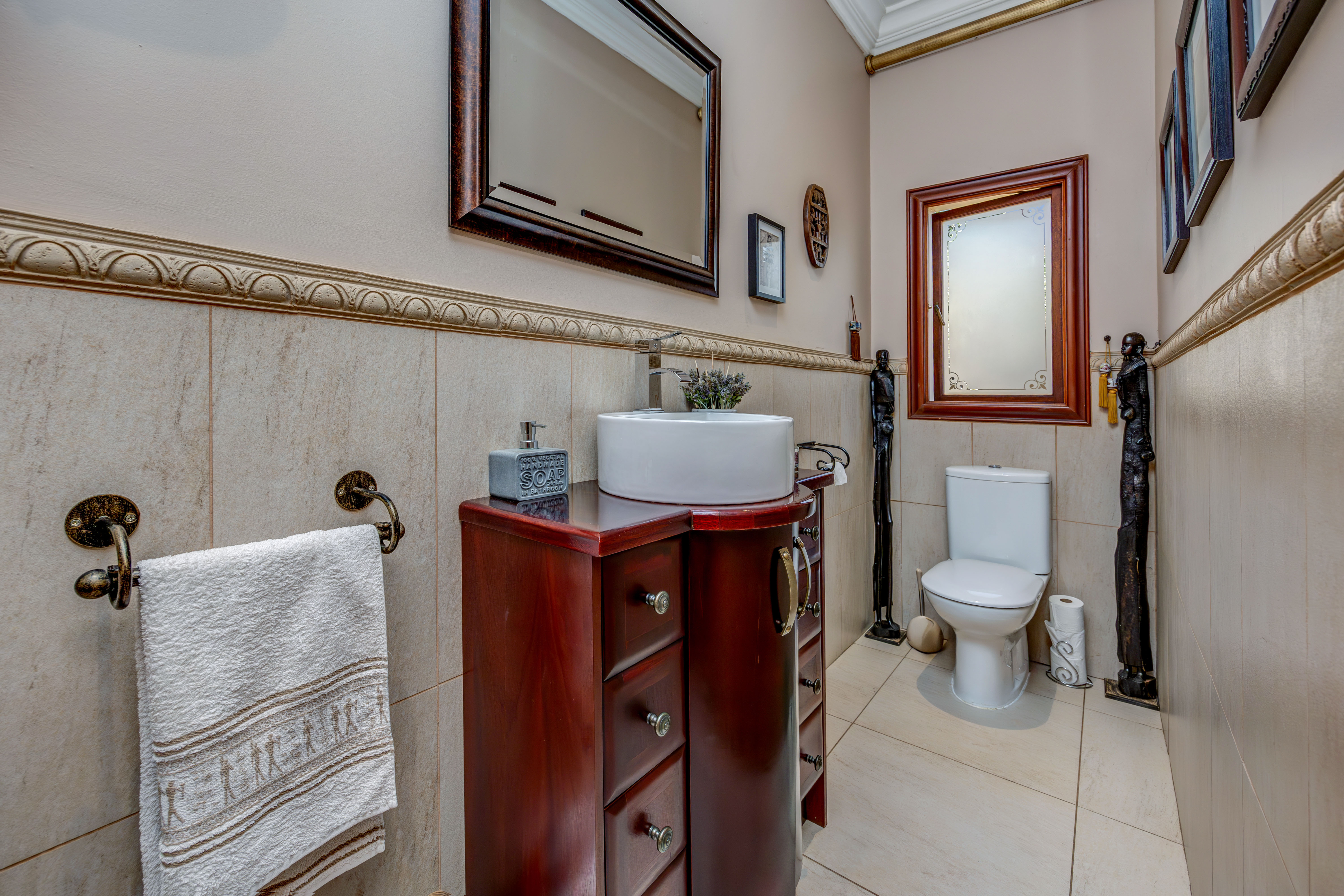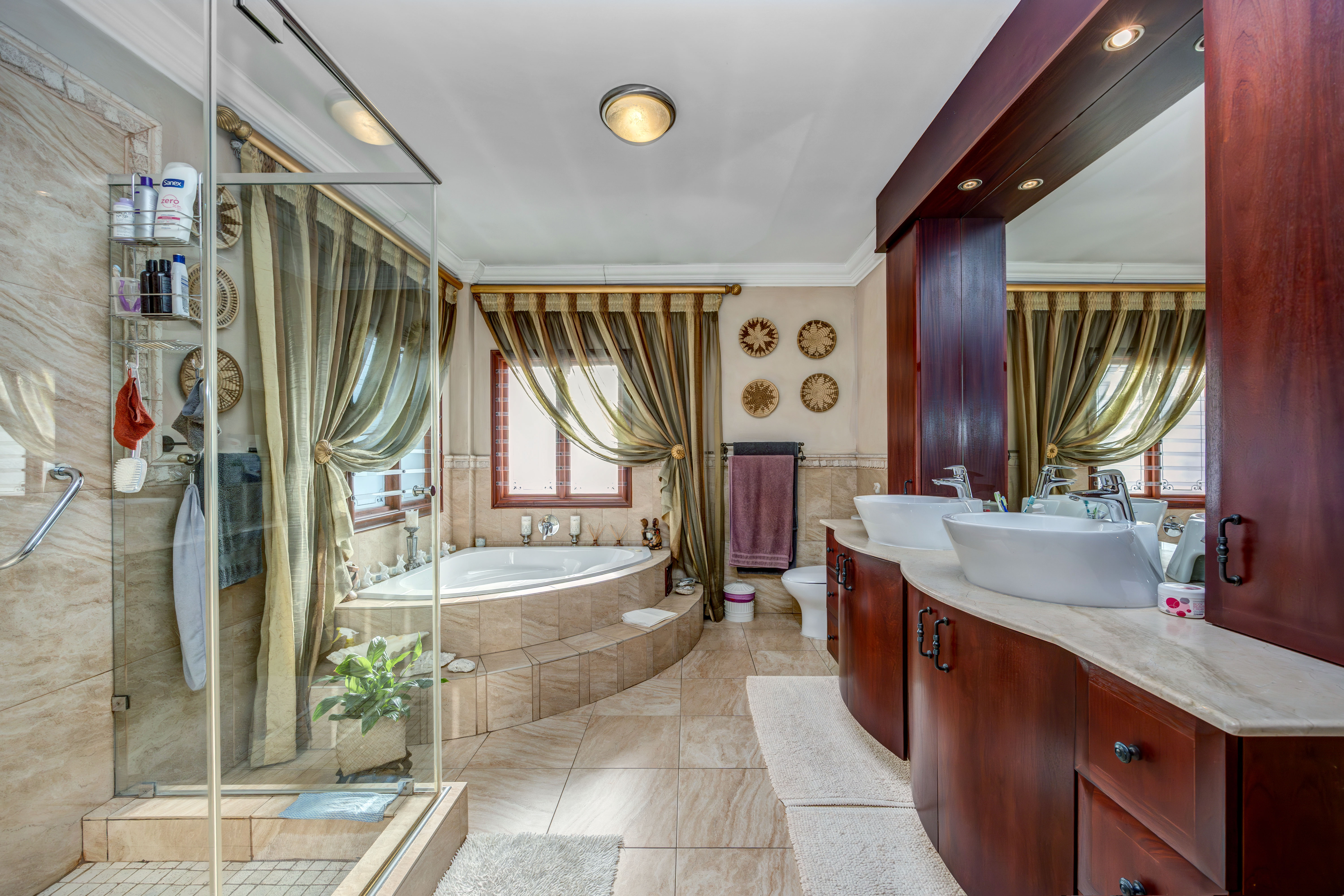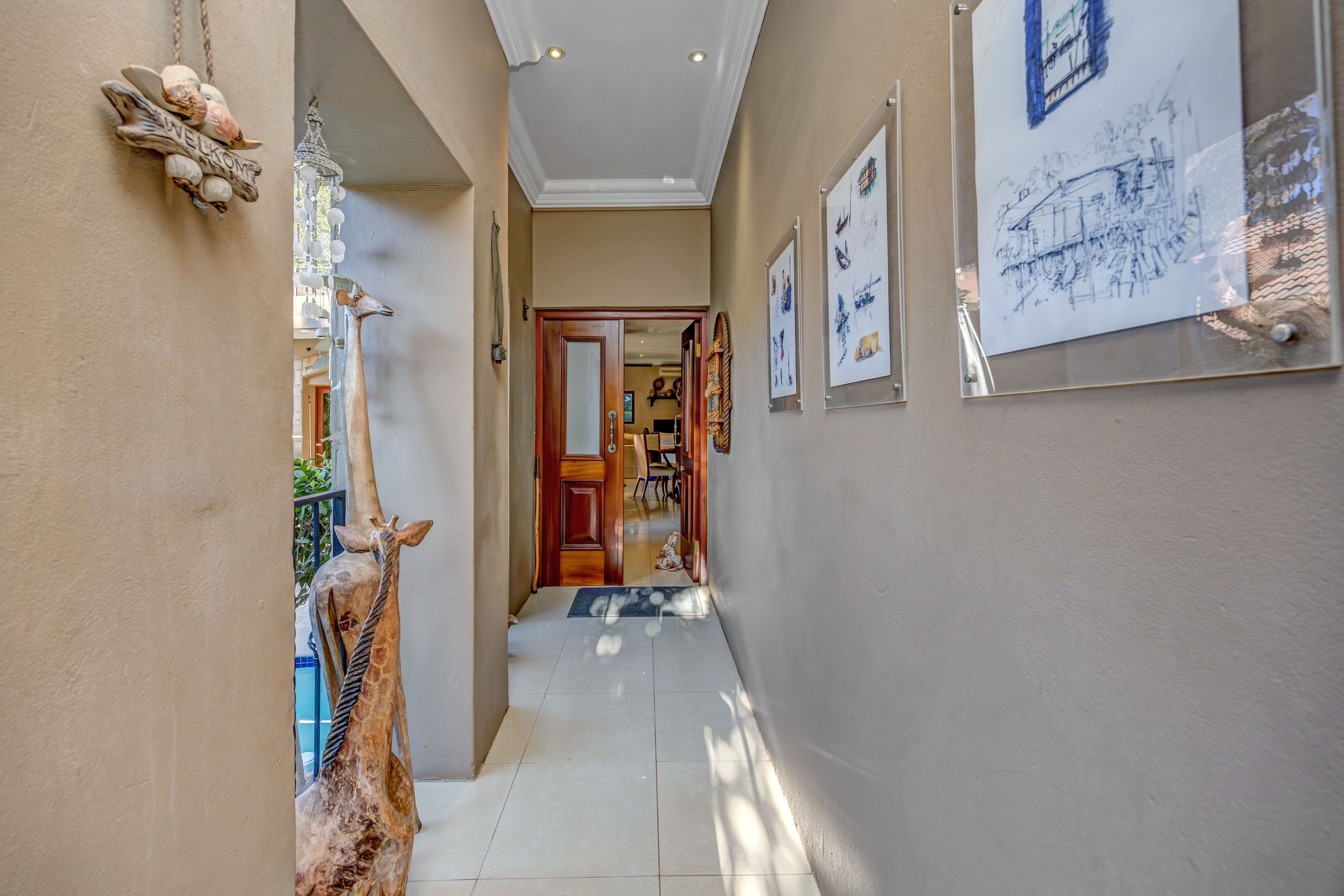 This off-the-grid home ensures uninterrupted power with 15 solar panels, an inverter system (two 8Kva batteries), 2 solar geysers, and a 2000-litre JoJo tank with pump. Other perks include automated irrigation, a home camera security system, and a double automated garage.