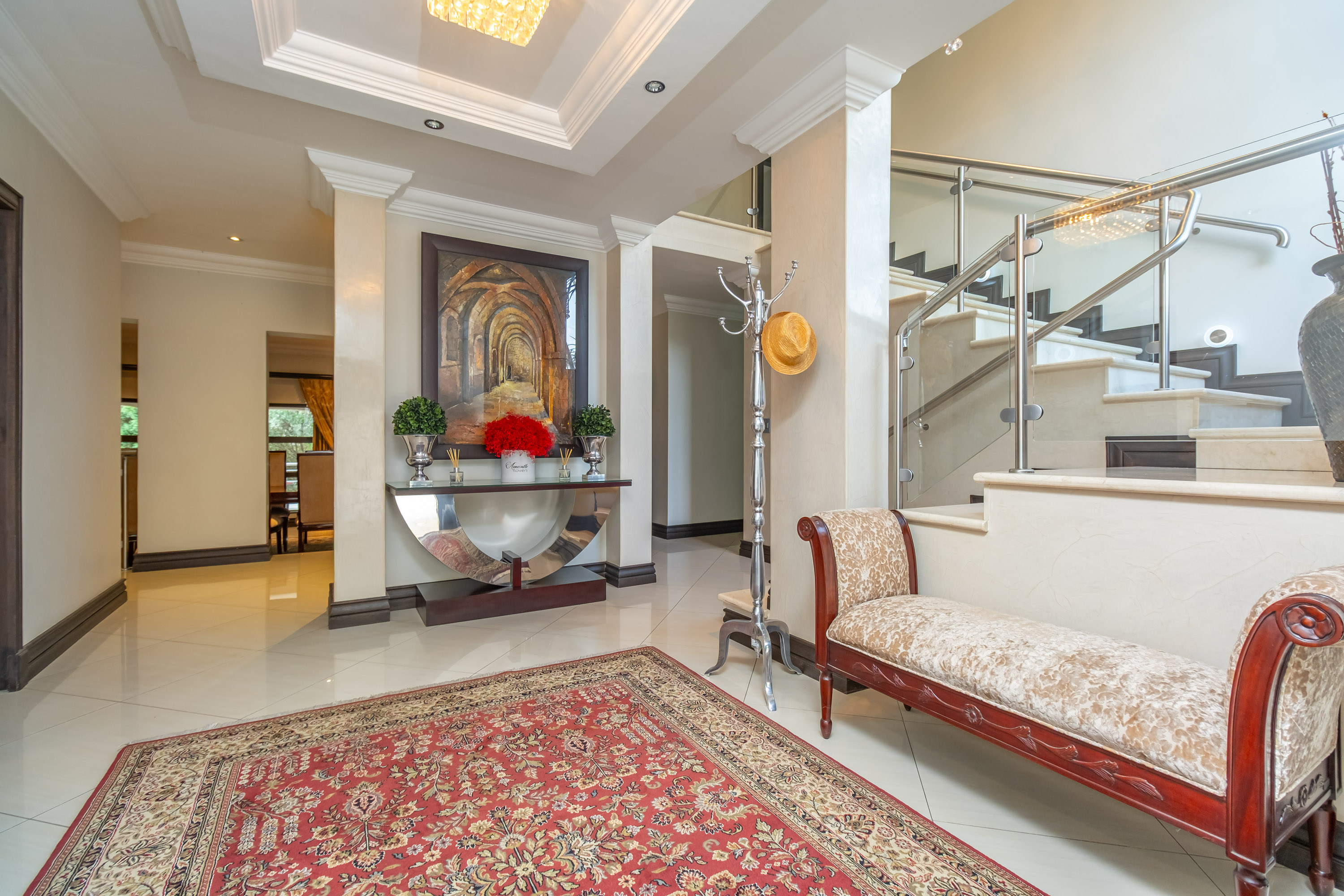 Step into a world of refined comfort and expansive living in this magnificent double storey home, thoughtfully designed for both lavish entertaining and serene family life. A grand entrance hall sets the tone, leading to a private lounge, formal dining room, and a cozy TV lounge. The gourmet kitchen is a chef’s dream, equipped with Siemens double oven, double warmer, built-in microwave, coffee machine, separate breakfast nook, walk-in pantry, and a separate scullery and laundry room for seamless functionality.