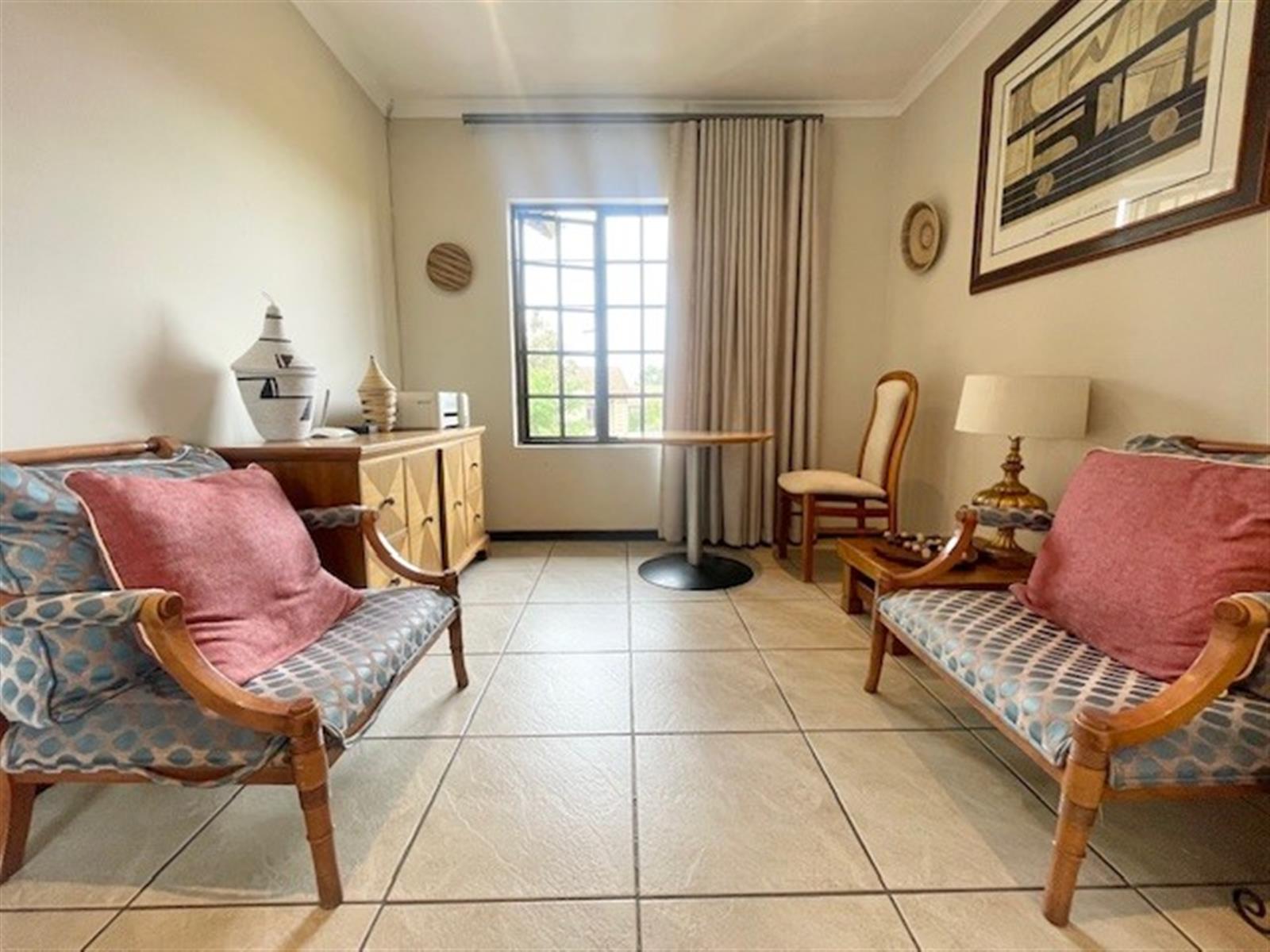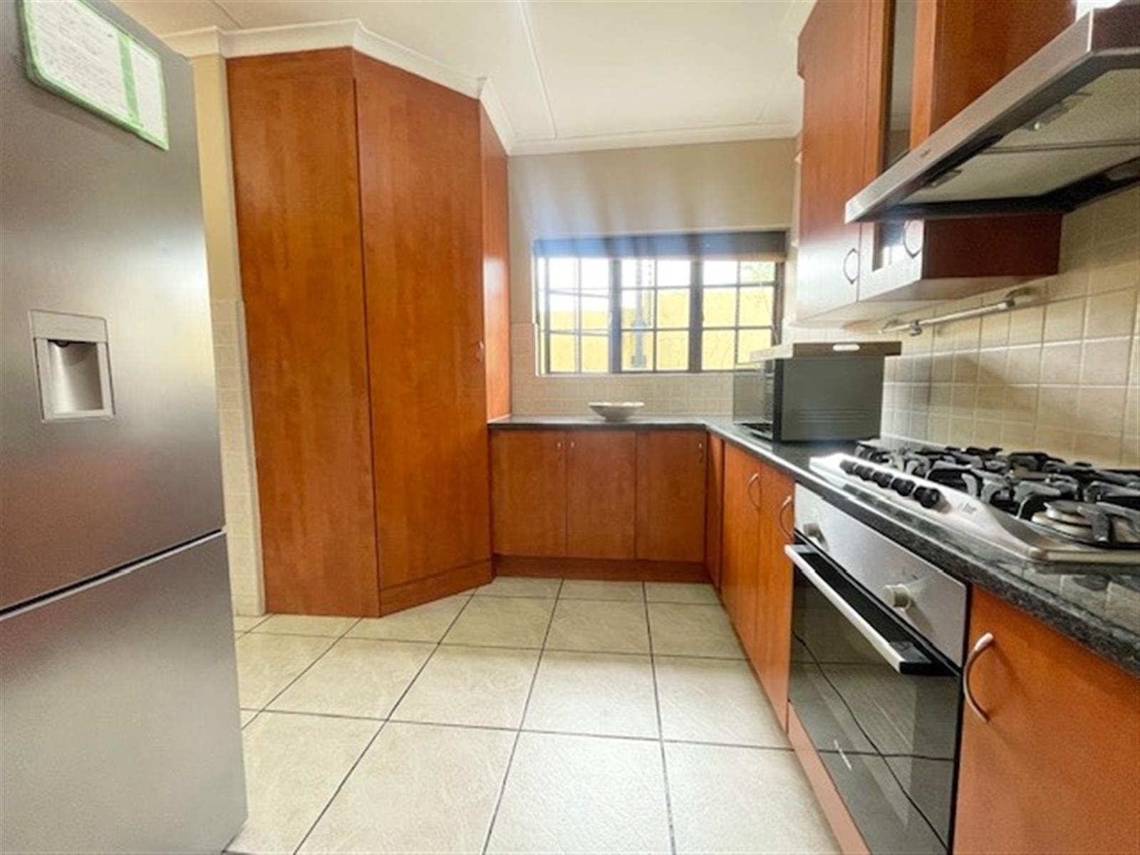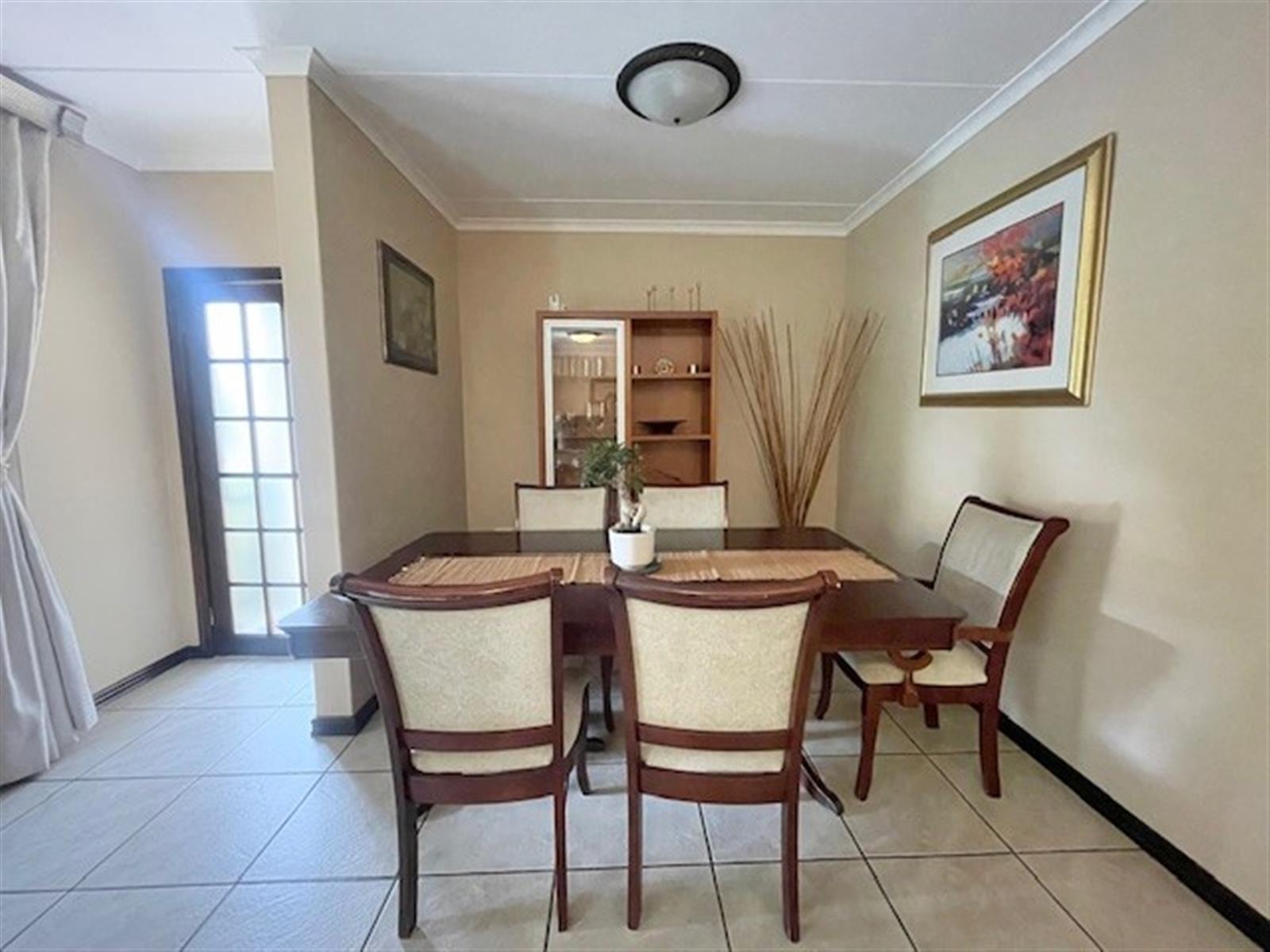 This charming 3-bedroom, 2.5-bathroom cluster home is set within a secure, well-maintained complex, offering comfort, style, and peace of mind. The spacious living area features a cozy wood-burning fireplace—perfect for creating warm and inviting ambience during those cooler months. Sliding doors flow seamlessly onto a covered patio that overlooks a neat, private garden equipped with an automated sprinkler system for effortless upkeep.
