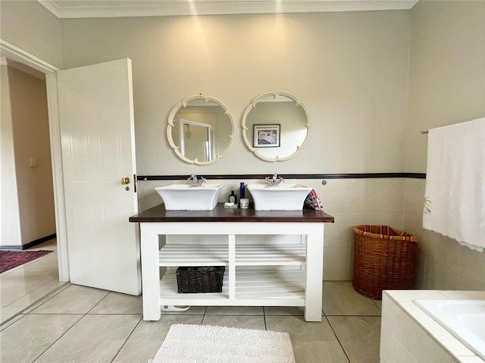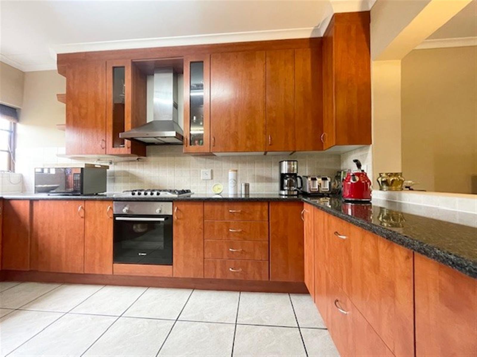 The kitchen is complemented by a generously sized scullery, designed to accommodate three wet undercounter appliances. It also includes a gas stove for efficient cooking and ample space for a double-door fridge/freezer, making it as practical as it is elegant.