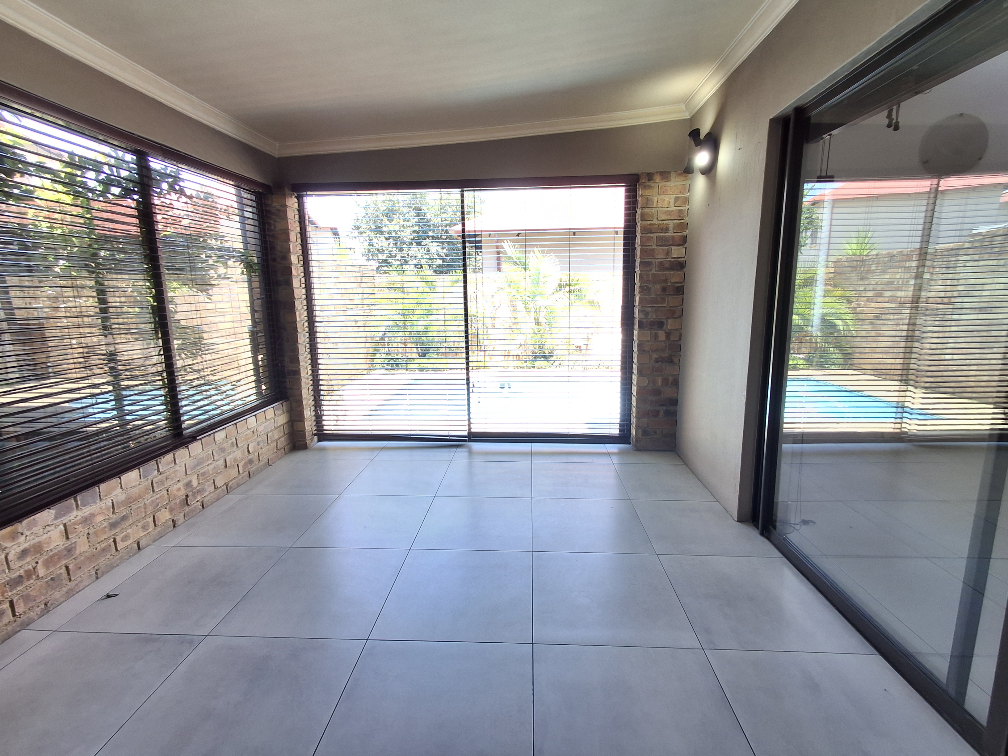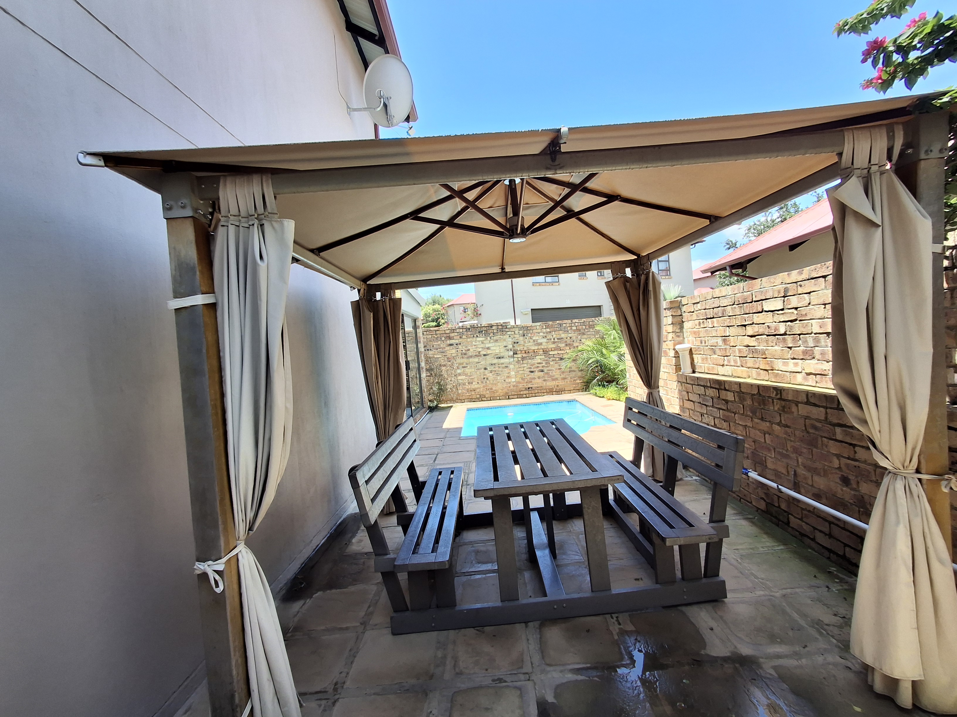 An entertainment room opens out onto the pool area, perfect for hosting guests or enjoying relaxed weekends at home. The outdoor space offers a private setting to unwind and enjoy the estate lifestyle.