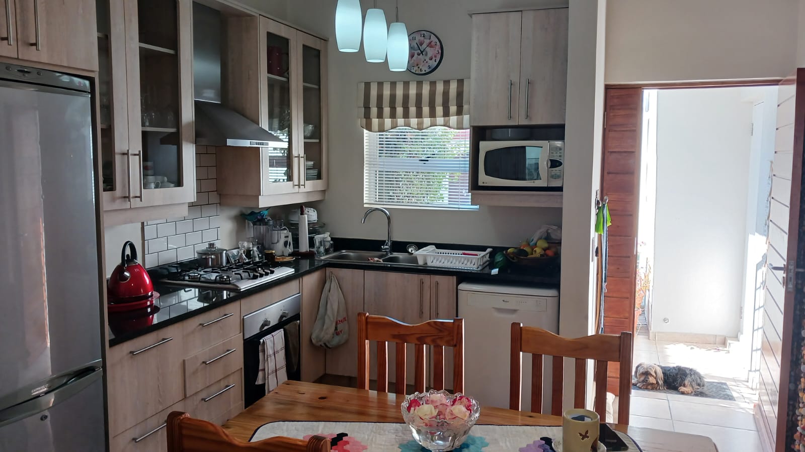 This home is stunning and faces the beautiful Wetland where peace and tranquillity abound. There are more than 100 species of birds on the Wetland, with a lovely hide to watch them from enjoying your sundowners in the evenings. This home has a lovely open plan living space that flows seamlessly though from the entrance and kitchen to the lounge and patio.