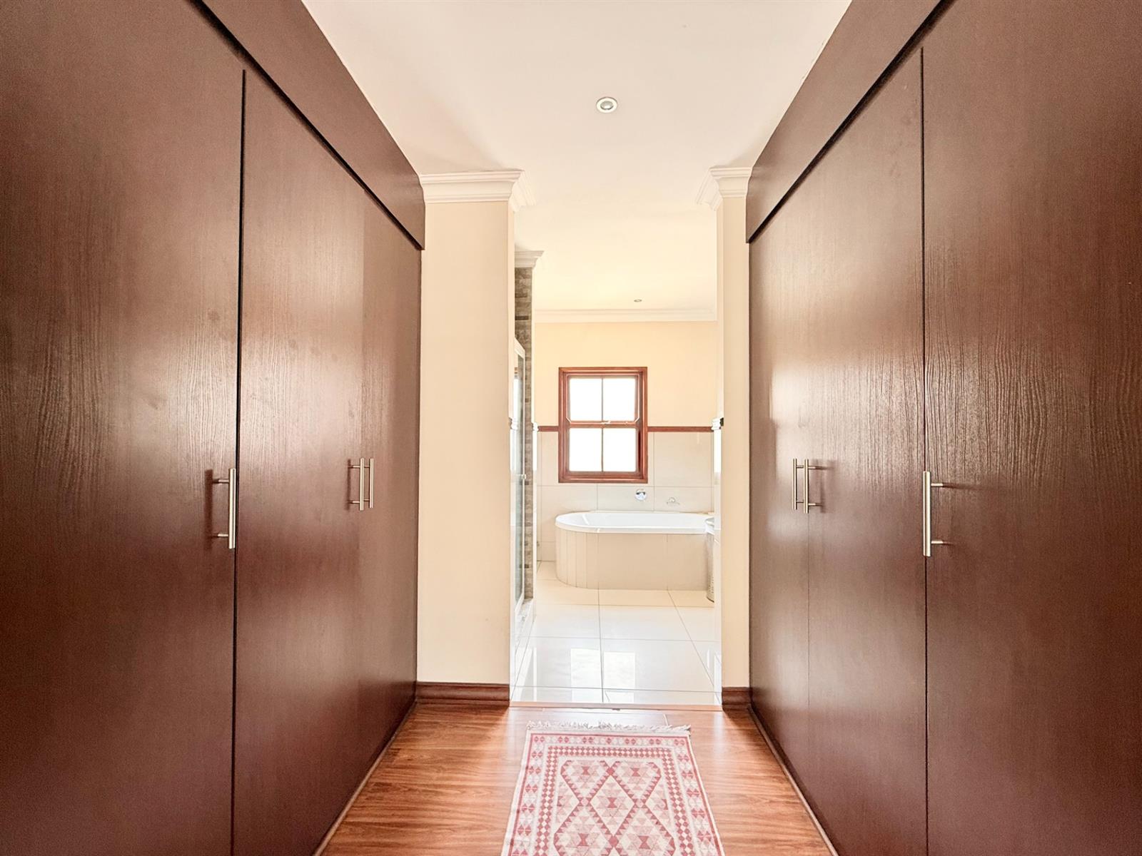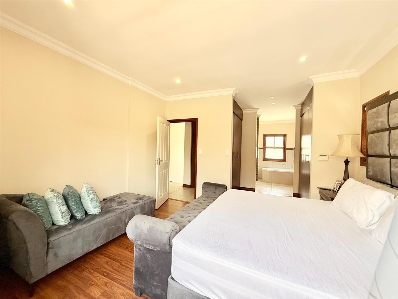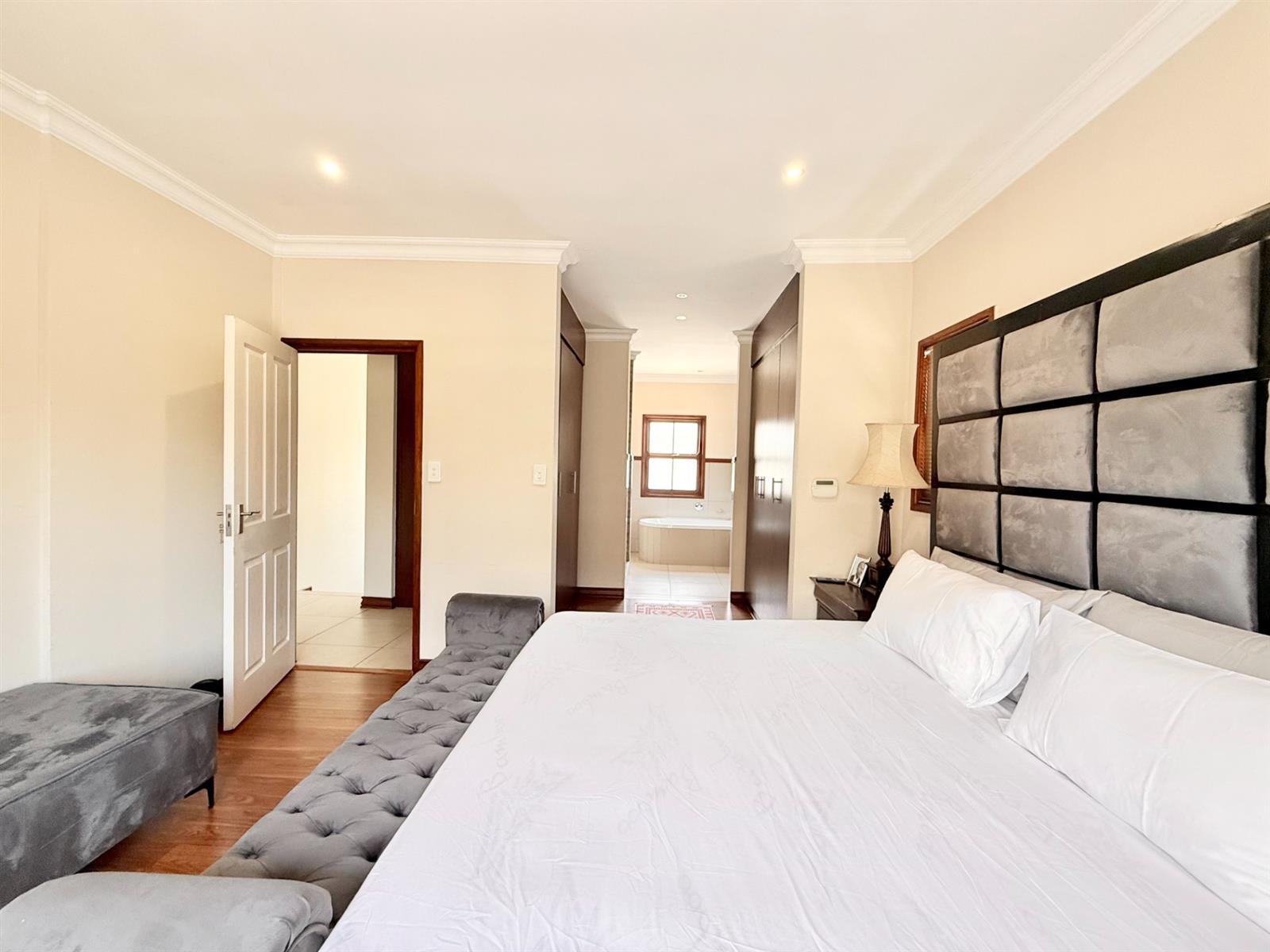 The main bedroom offers a luxurious walk-through wardrobe leading to a full en-suite bathroom.