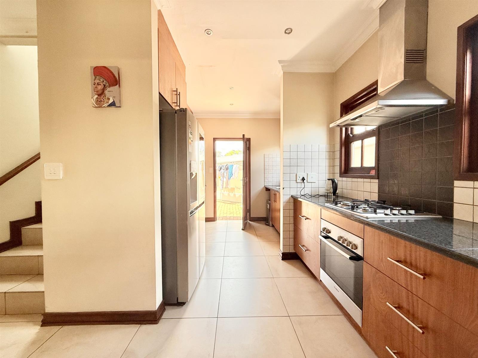 Downstairs, you are welcomed by a spacious open-plan kitchen with a scullery, gas stove, space for two appliances, and a double-door fridge. A cosy breakfast nook adds convenience for everyday living.