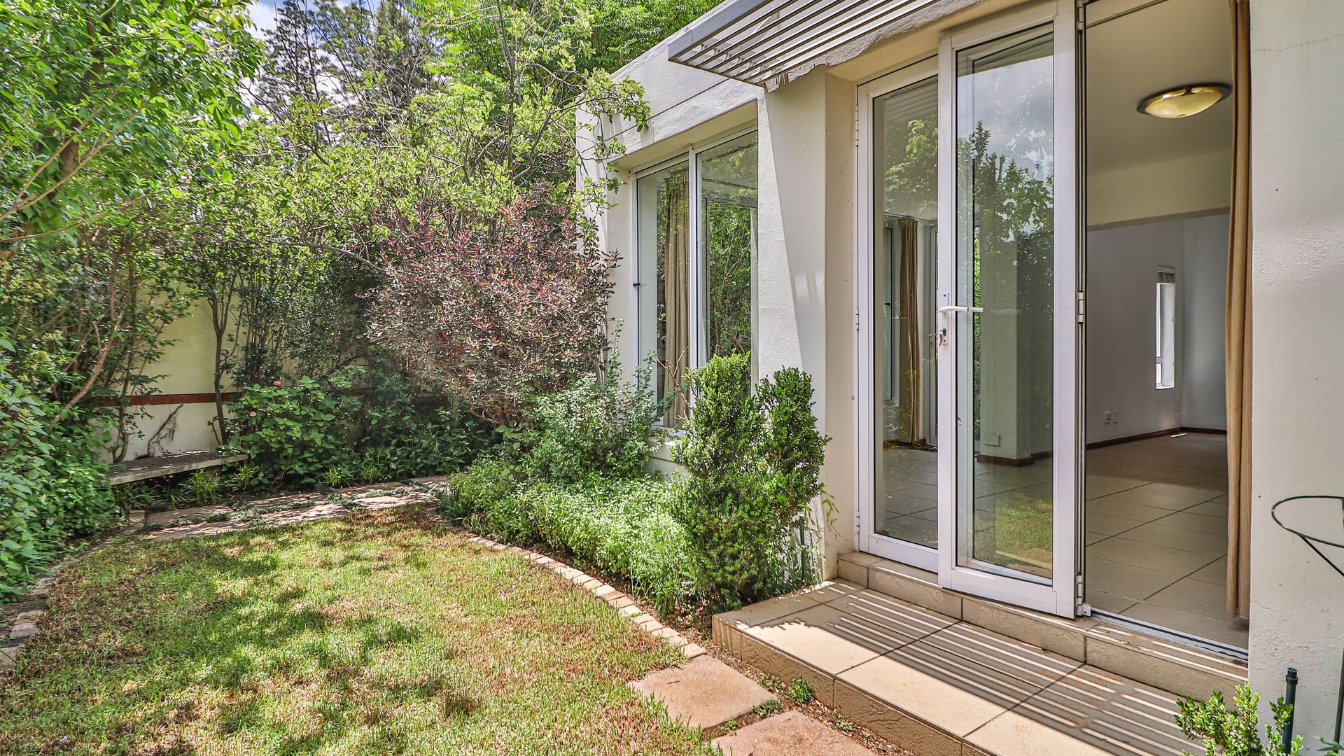 The lounge is super spacious and leads out onto an enclosed patio and lovely garden and swimming pool