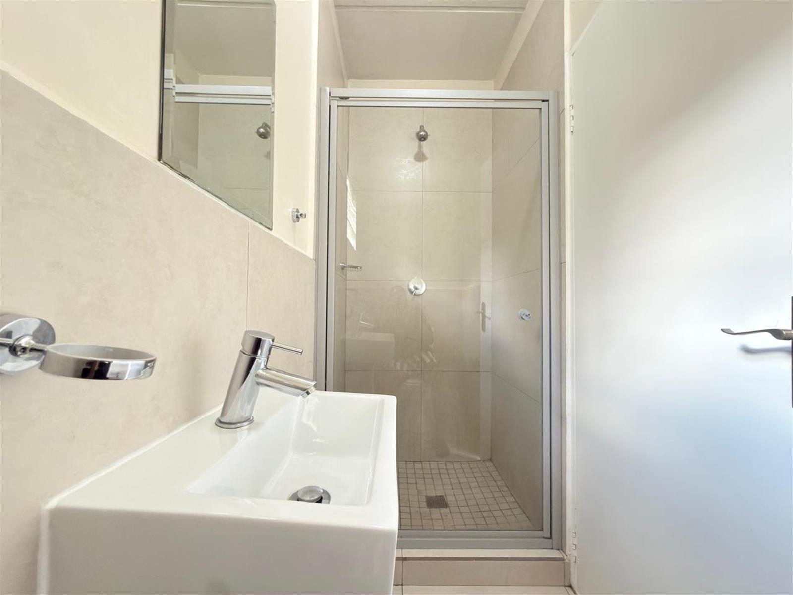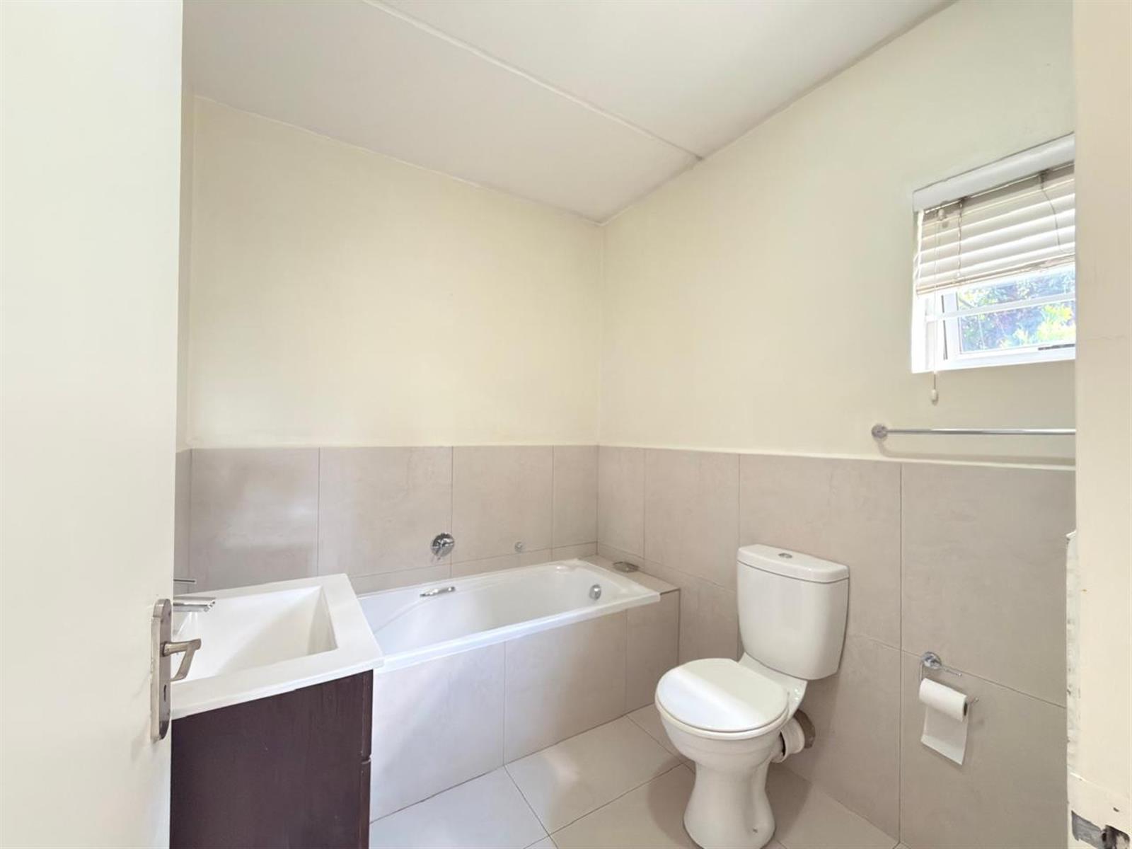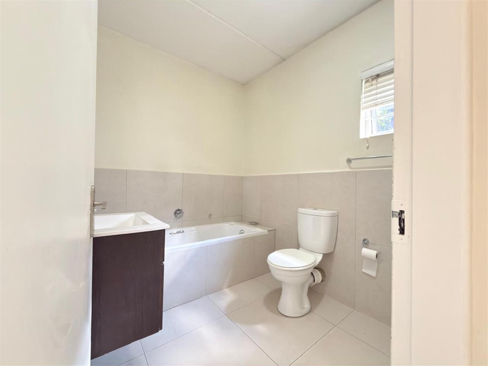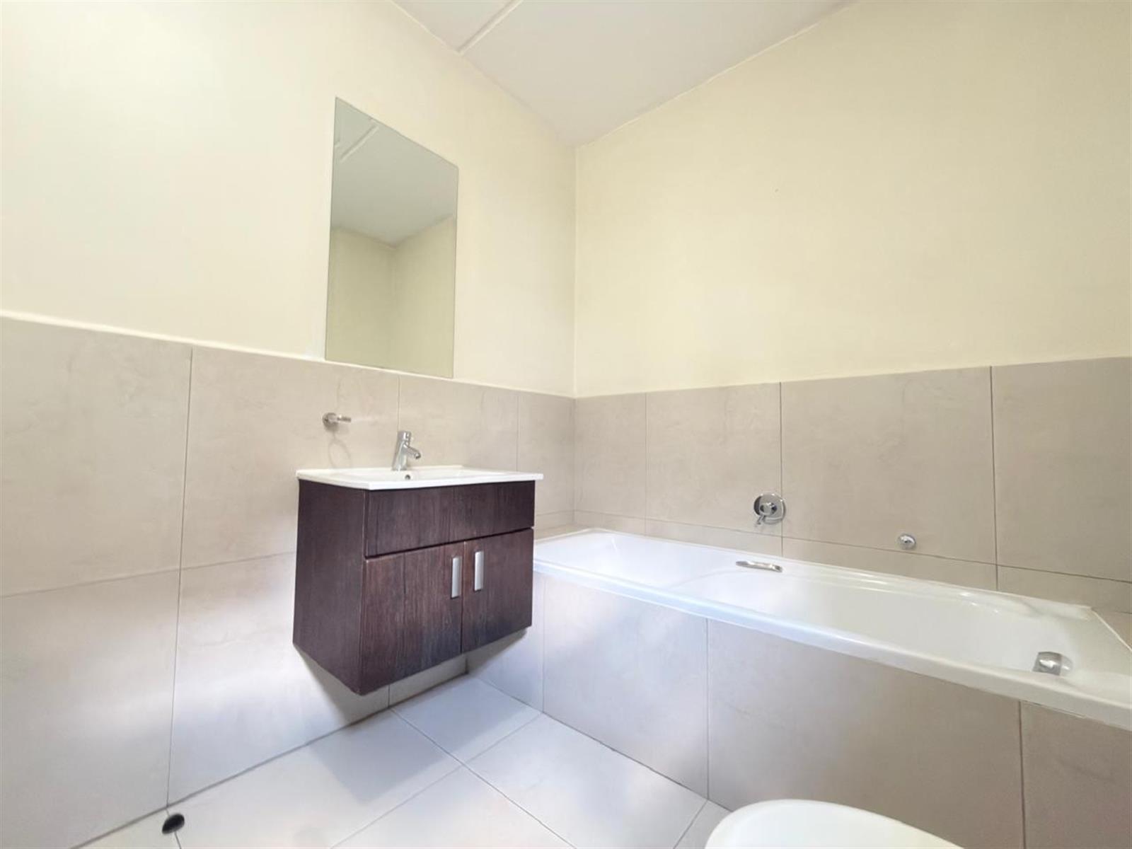 This beautiful home features 2 spacious bedrooms and 2 bathrooms. The main bedroom is generously sized, fully tiled, and fitted with built-in cupboards. It boasts a modern en-suite bathroom with both a bath and a shower. The second bedroom, also tiled with built-in cupboards, is serviced by a second bathroom with a shower.