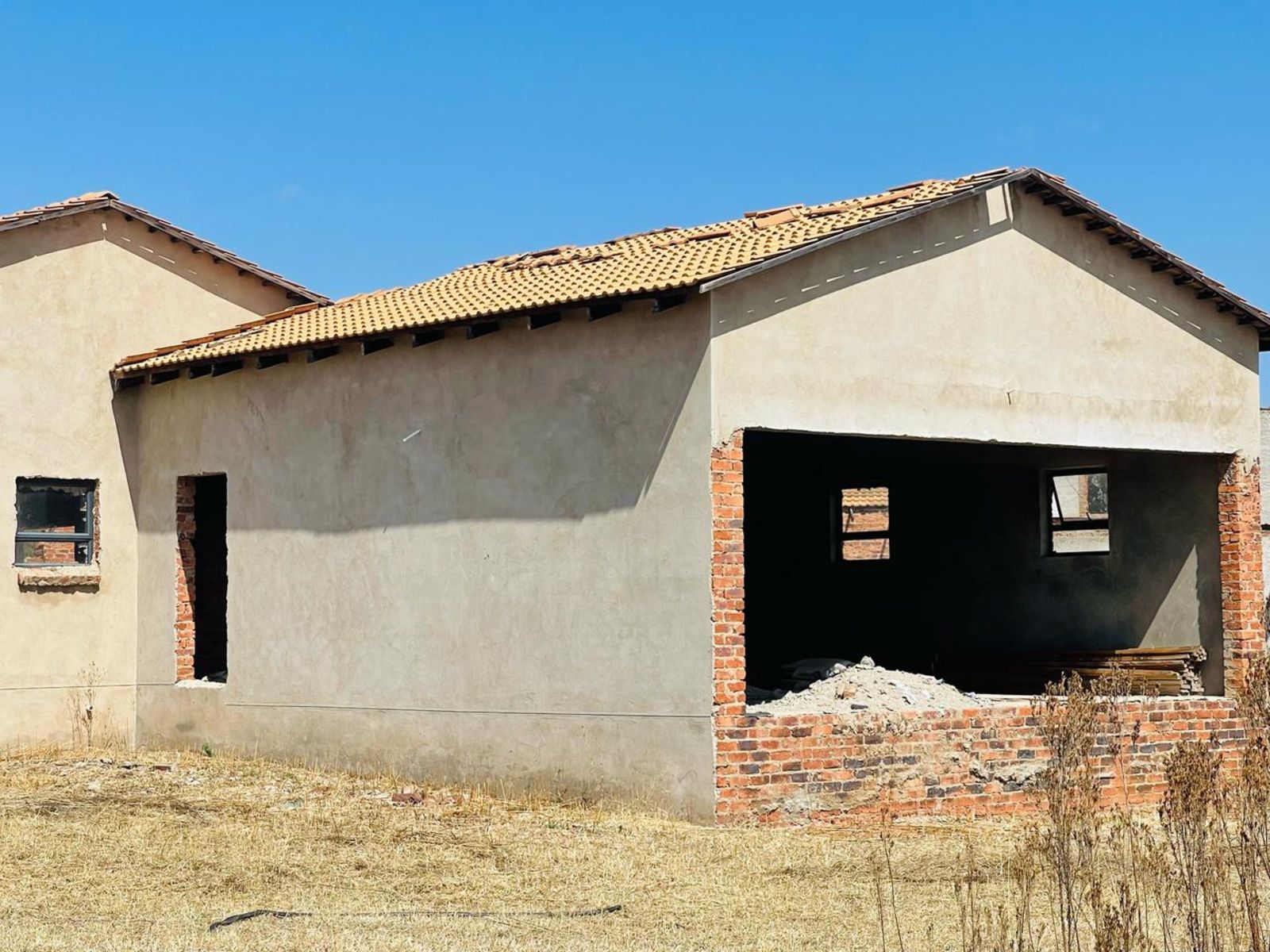 The main residence, spanning approx. 1,820 m2 under roof, is partially completed and designed with grandeur in mind. Featuring 6 spacious bedrooms, 4 en-suite bathrooms, multiple reception areas, and high ceilings, this home was planned for both luxury and comfort. Additional features include a formal lounge, dining room, TV/family room, gourmet kitchen layout, indoor swimming pool, gym space, laundry, storerooms, 3-car garage, and 3 domestic quarters. Strong borehole water supply and estate-level security ensure both independence and peace of mind.