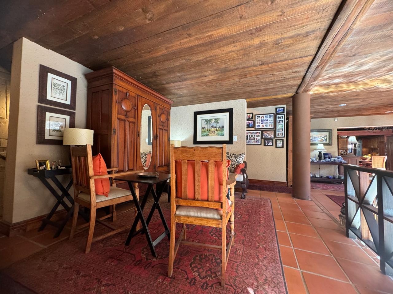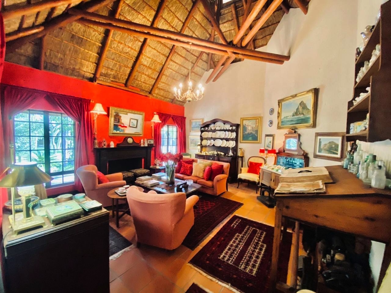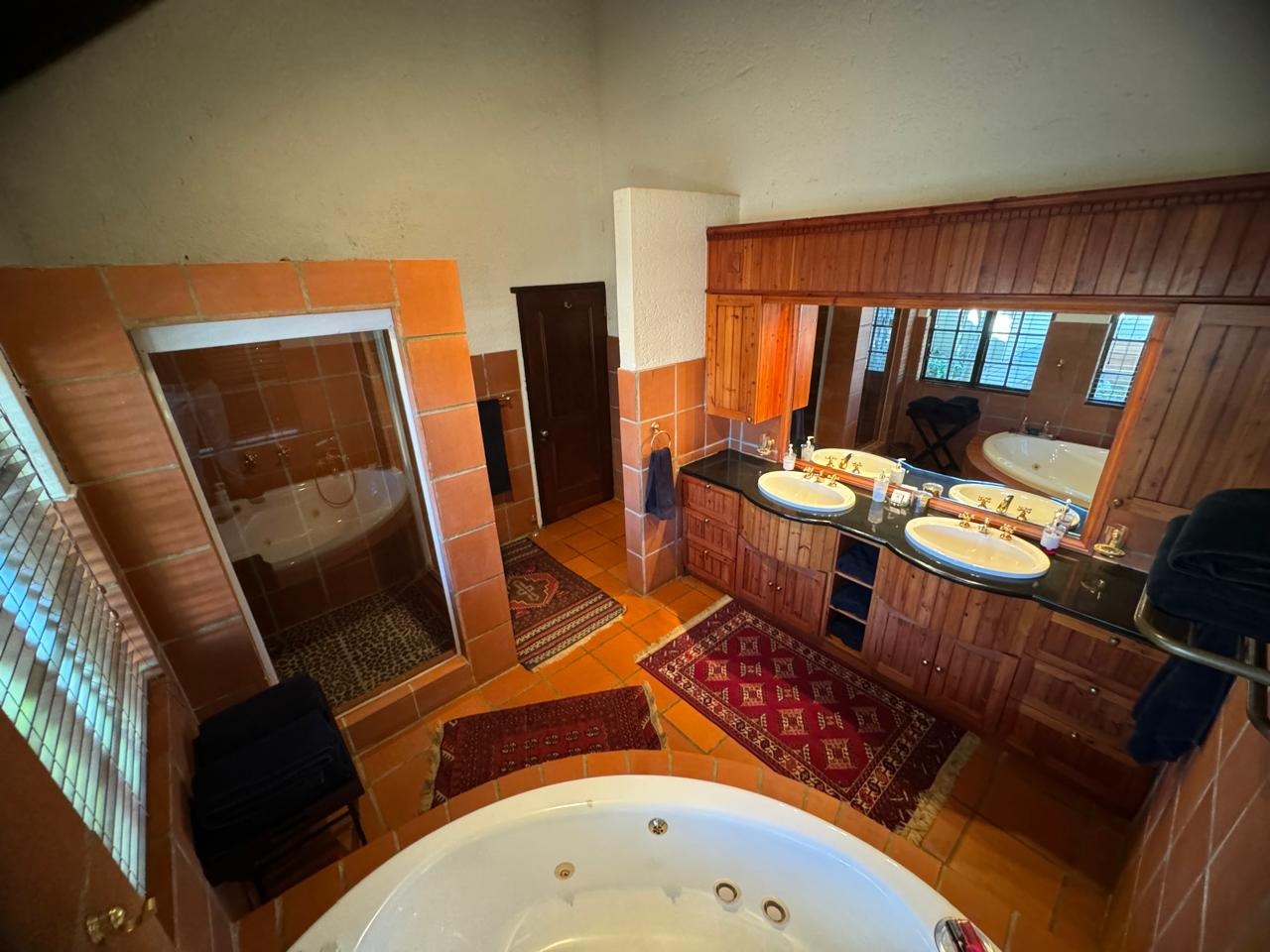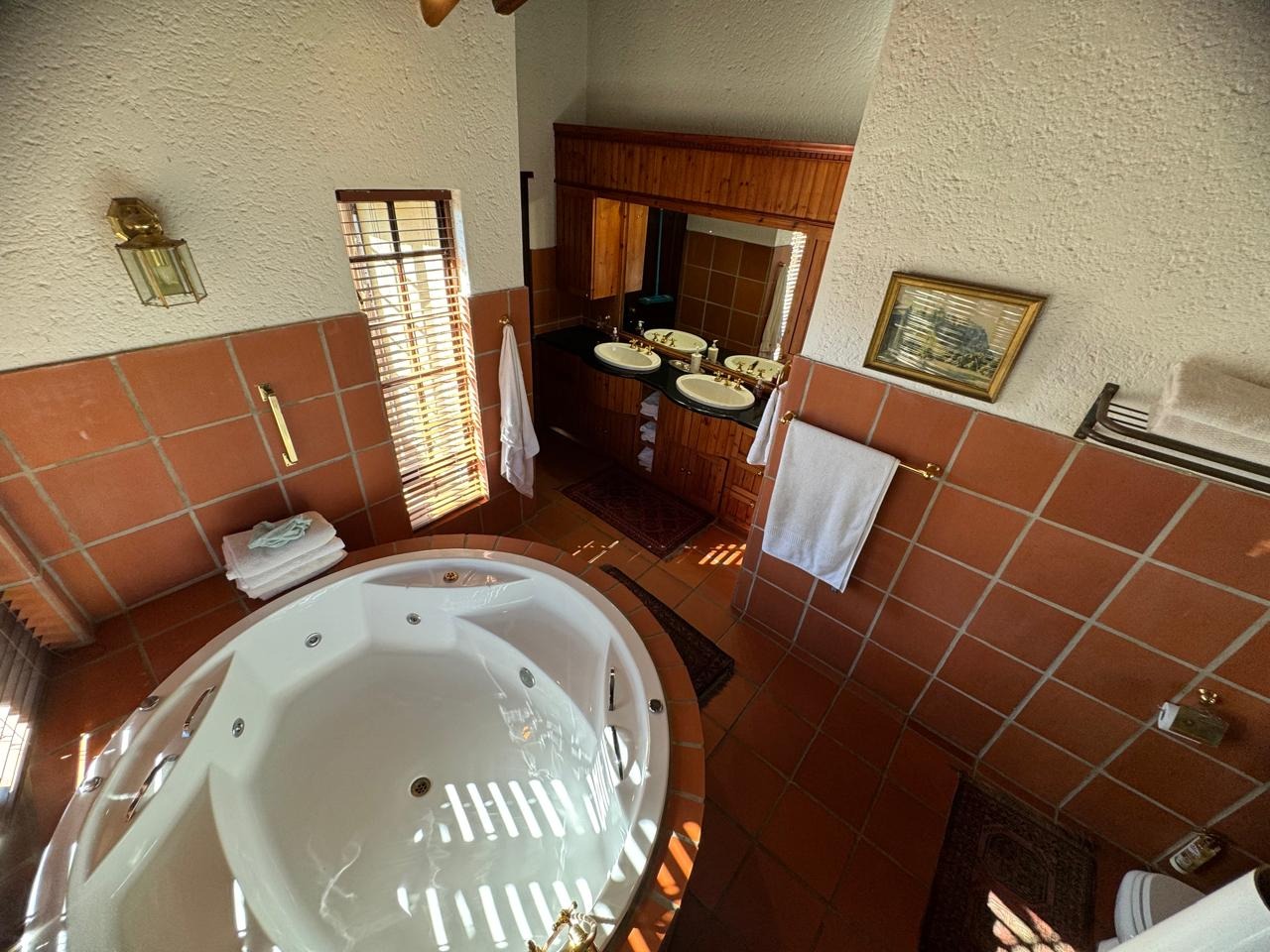 Entertainment is a focal point, with a thatched-roof lapa featuring a bar and dining area, overlooking a large swimming pool, perfect for hosting gatherings or relaxing under the African sun. A wine cellar adds to the allure, providing a sophisticated space to store and enjoy your collection.